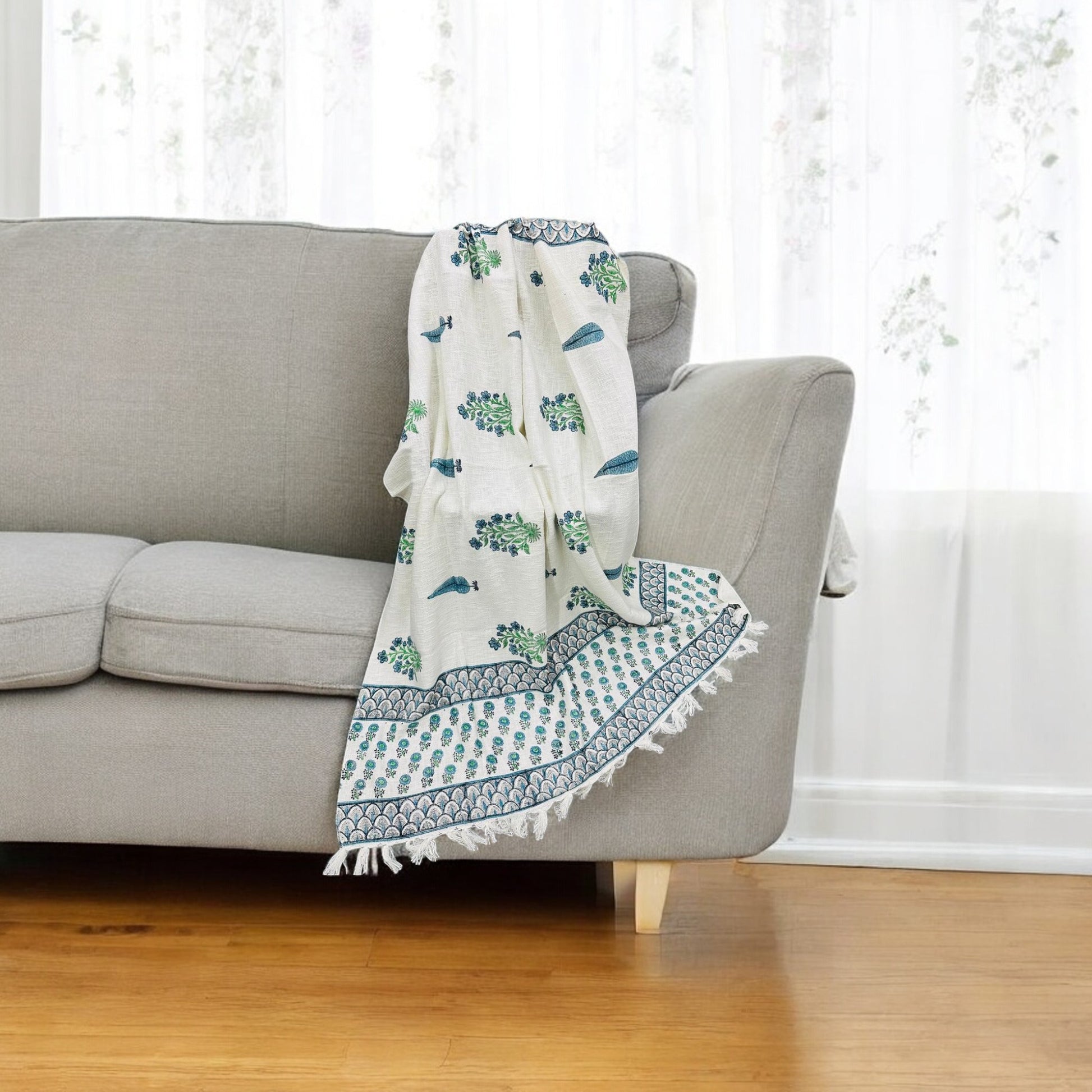 Add some elite touches to your home with Premium White Sofa Throws-Studded beautiful blue floral handblock prints. Because of handblock printing, it is an elegant as well as handcrafted throw. The throwing blanket so soft and luxurious and provides comfort while the blue floral adds taste to your room. This lovely throw can drape over any sofa or chair or be used over any bed because it can add a normal touch to any room with its regular white base and intricate blue floral detailing.