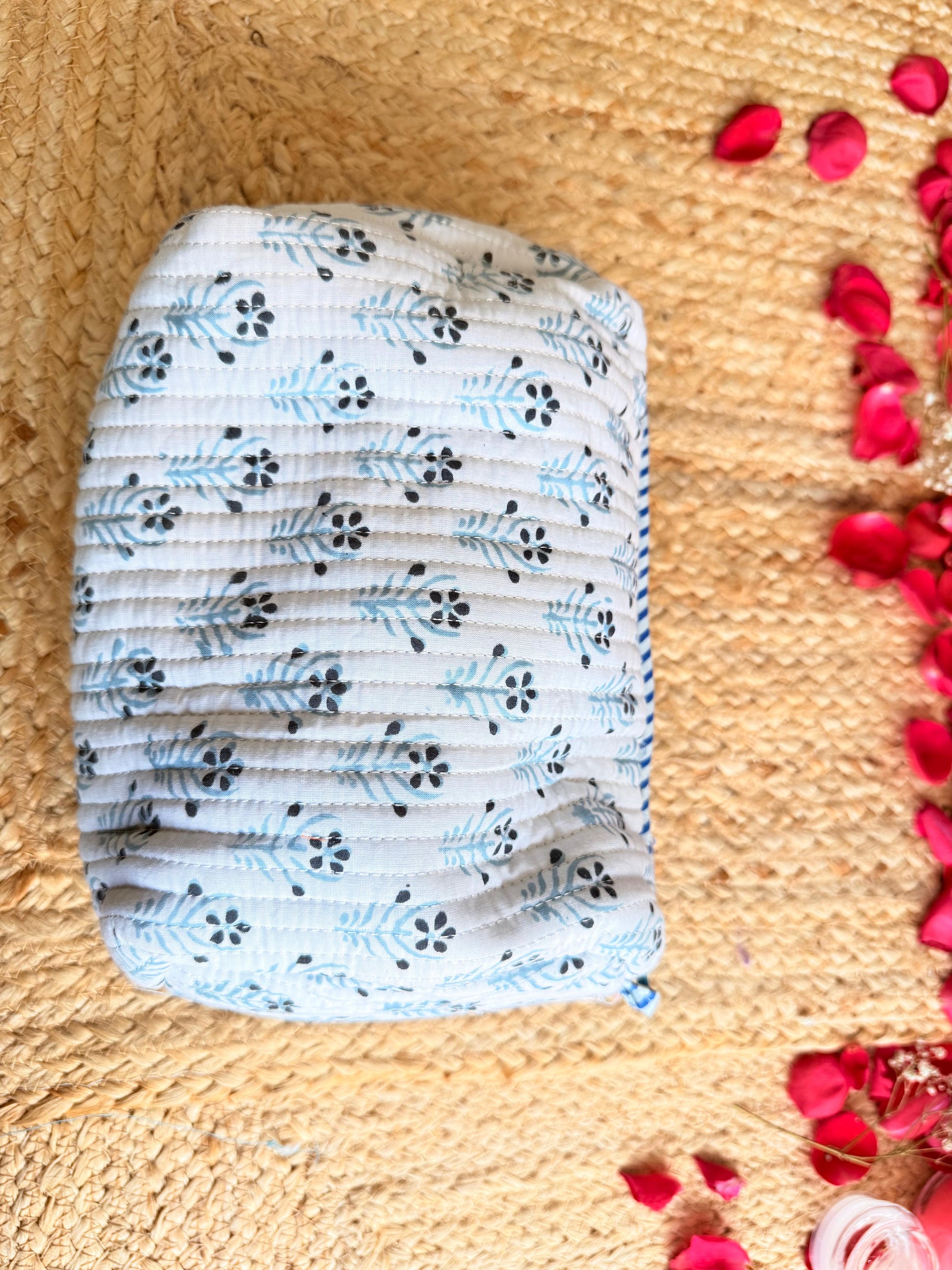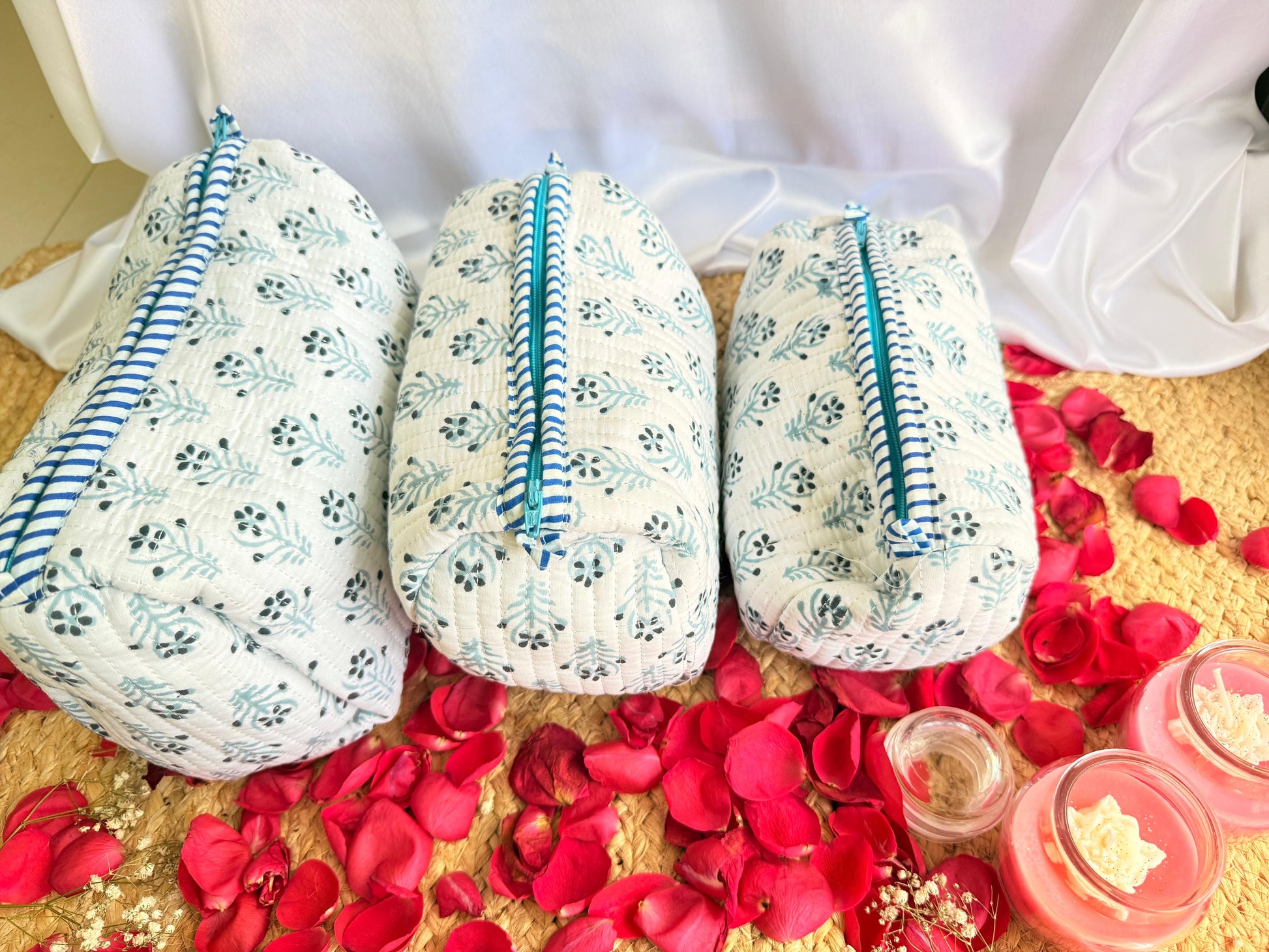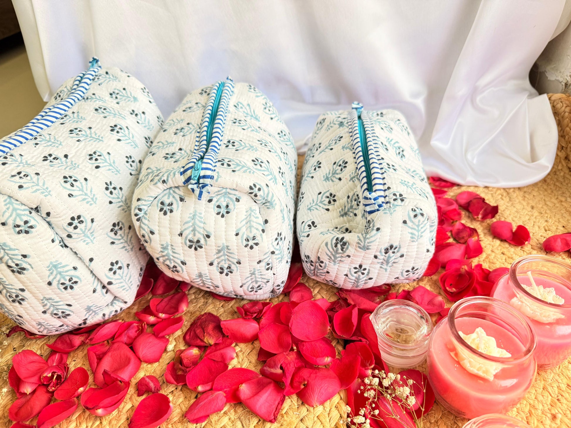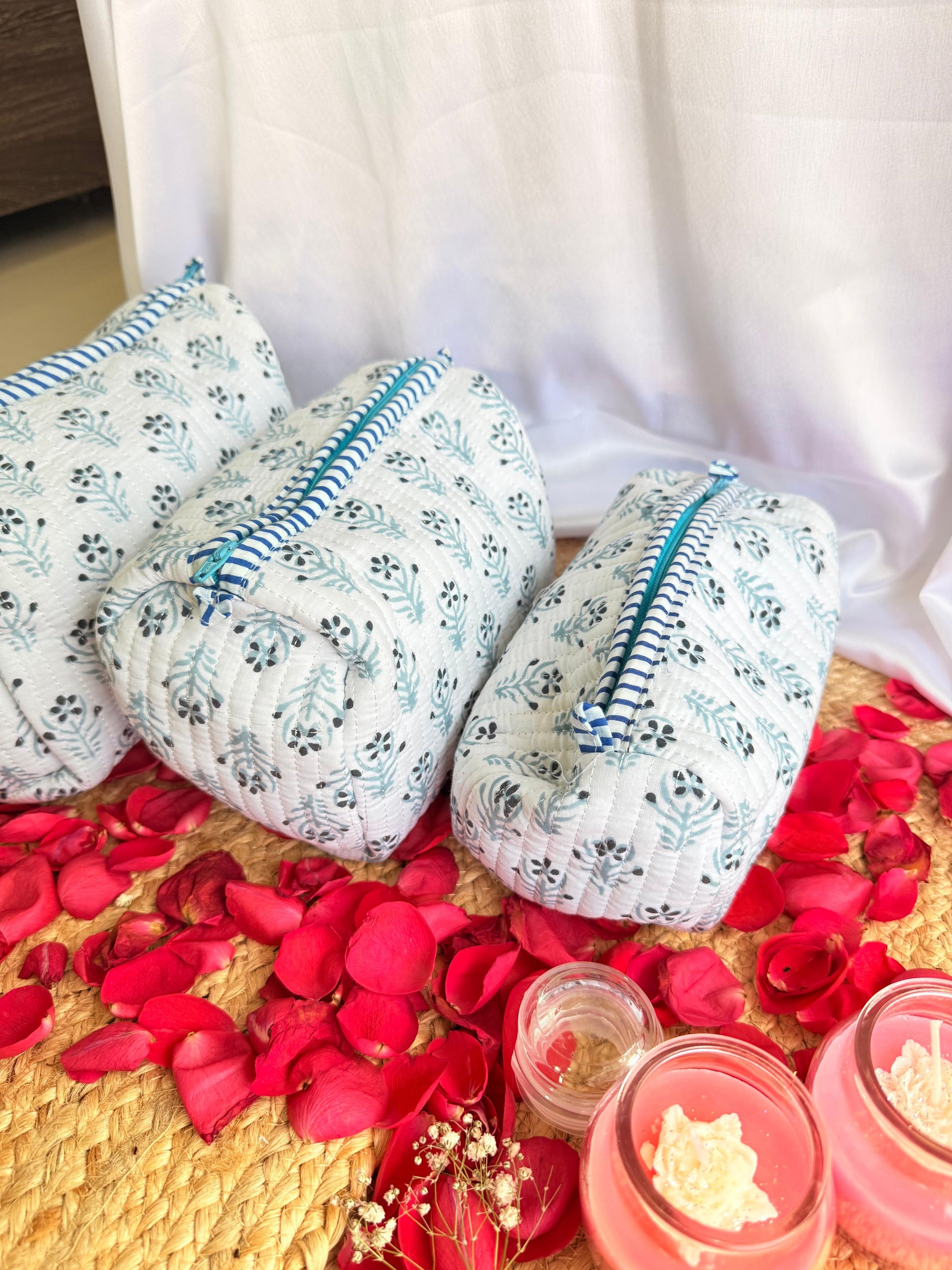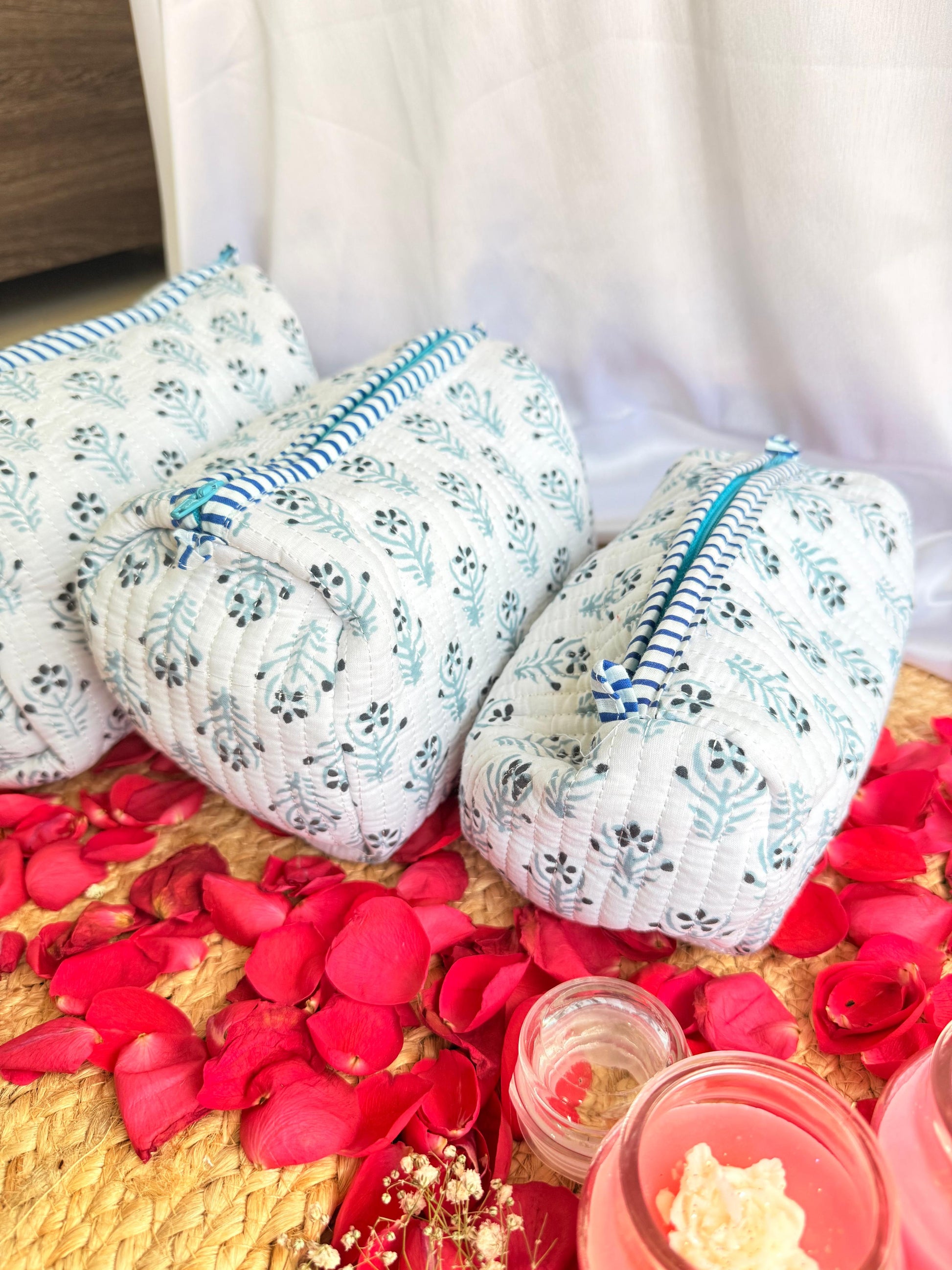 This Blue Floral White Handblock Pouch Set of 3 offers versatile storage and timeless style, with a beautiful blue floral design in sturdy handblock construction. You will love the usage of these practical pouches for organizing your needs. Then, you can make them perfect to store for travel, all your daily essentials, and much more. It's just so lovely that you'd rather not add these pouches to your collection.