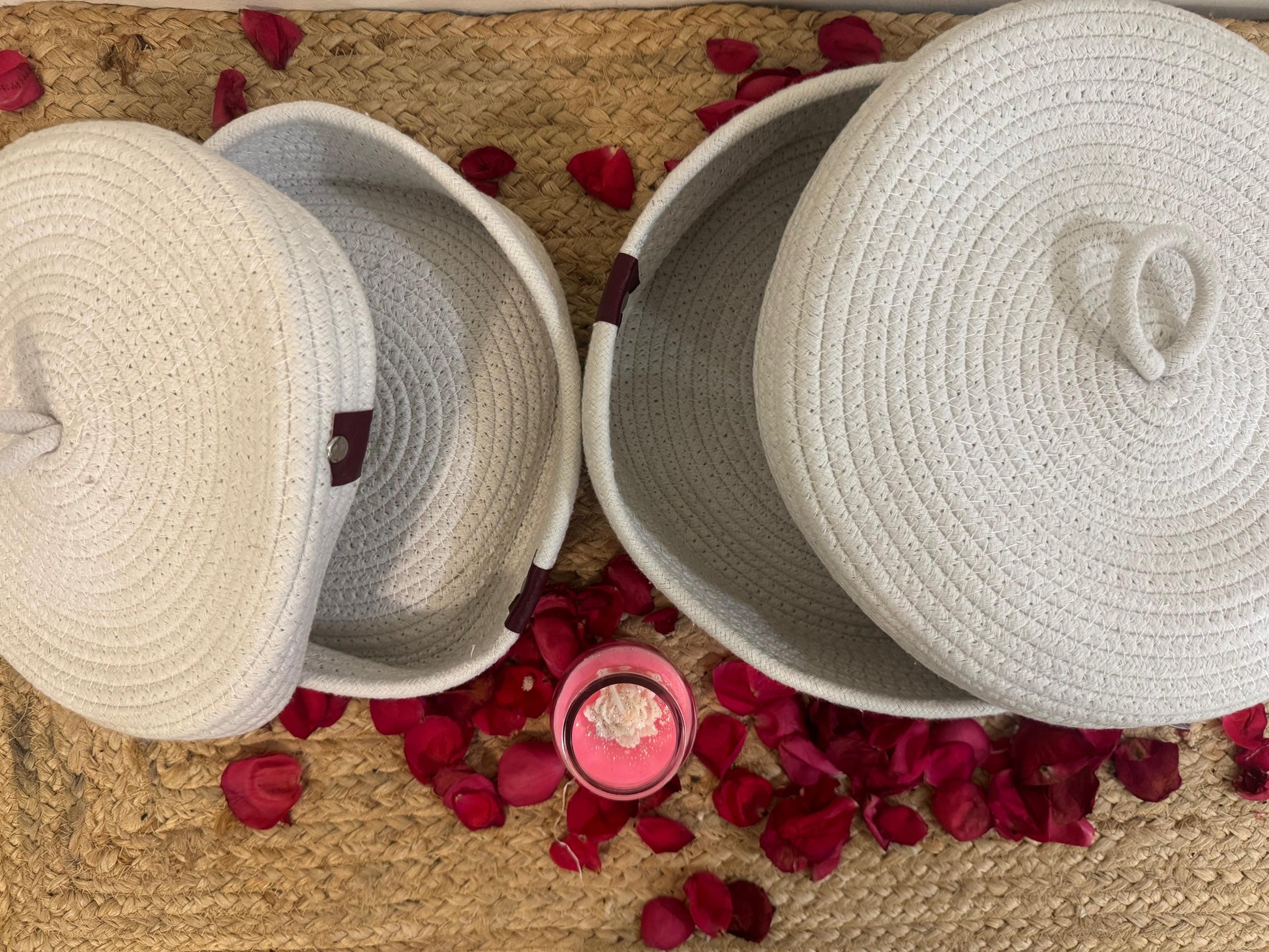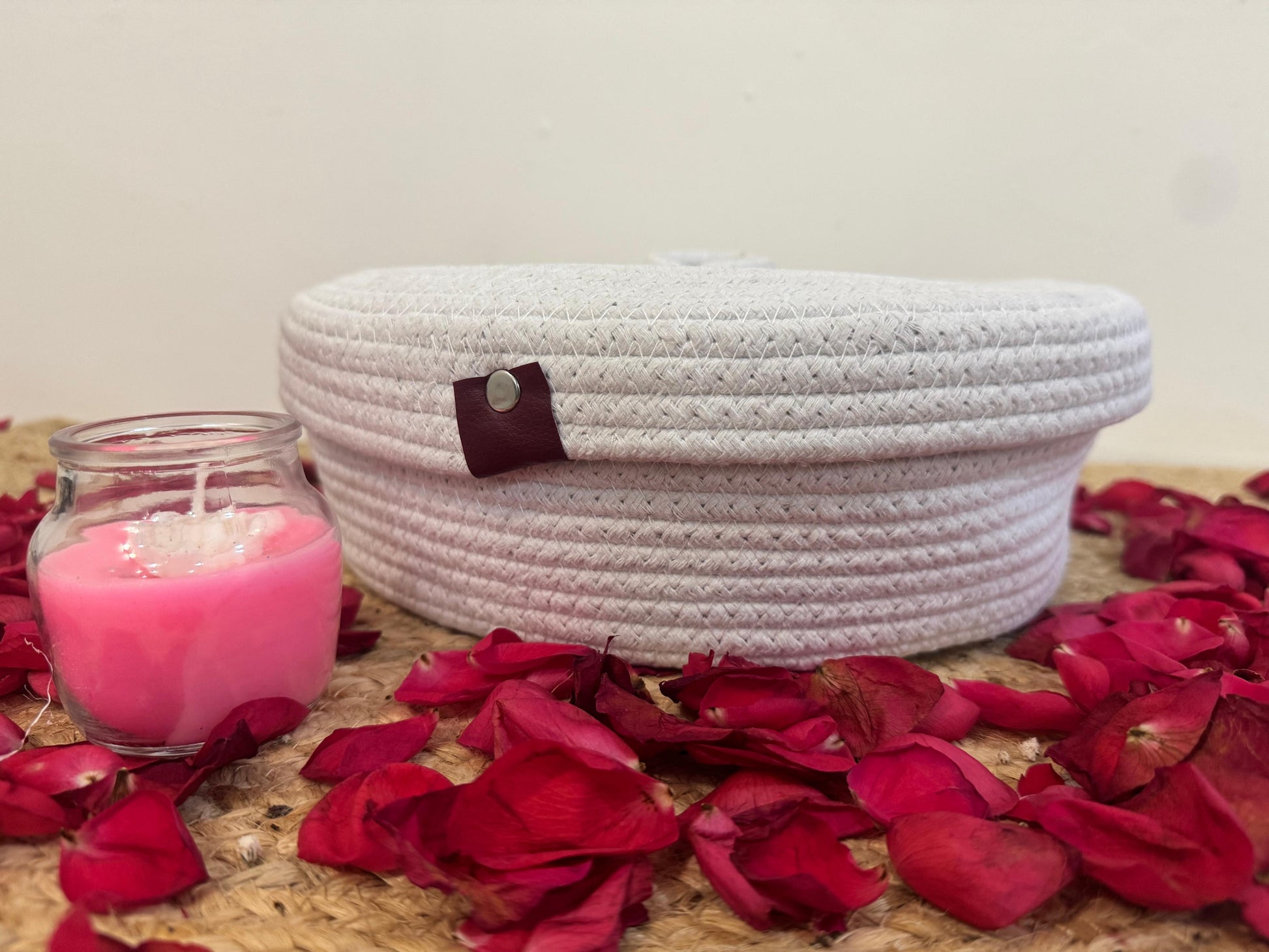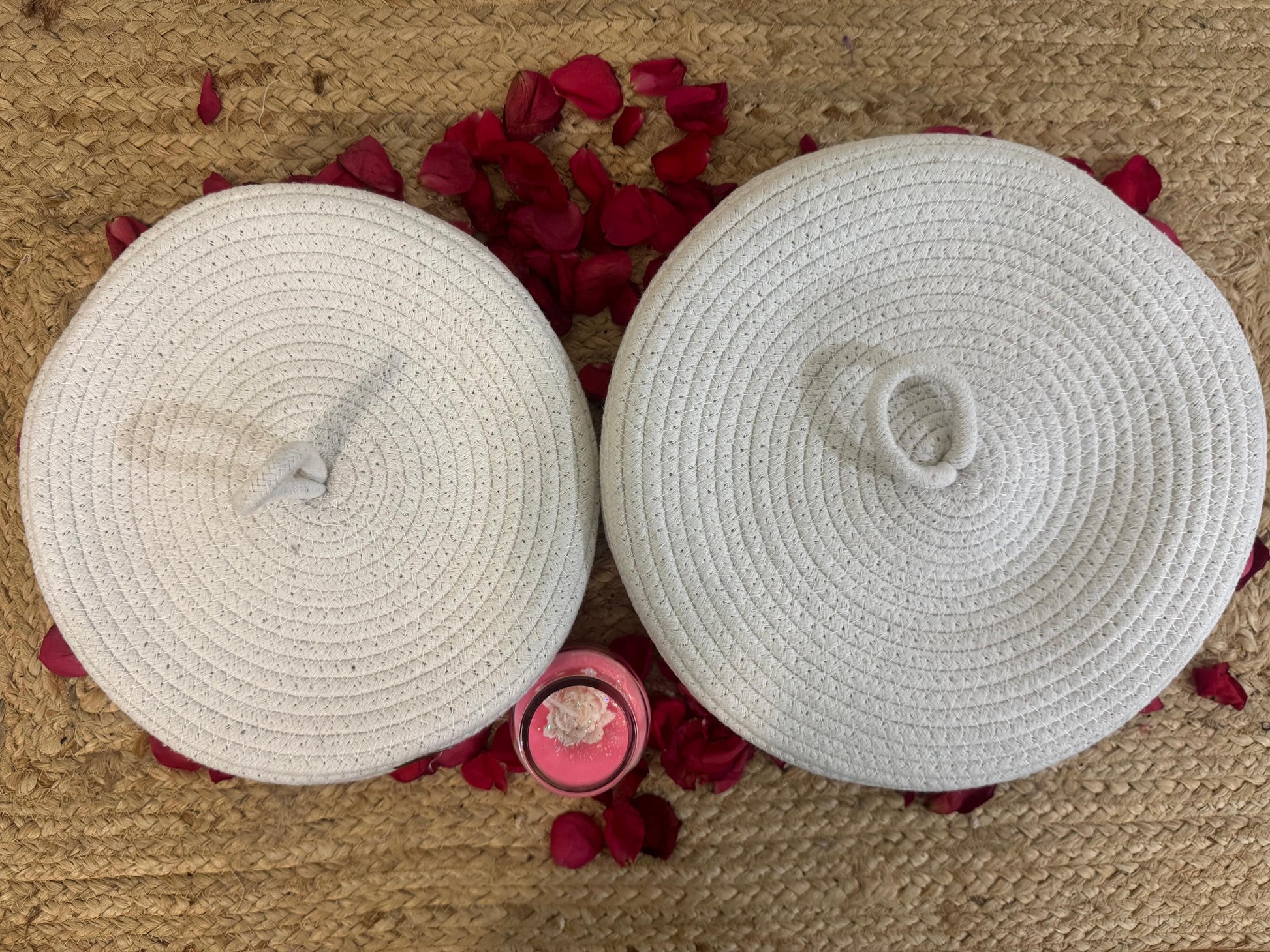 Keep your home neat and elegant with the White Jute Organizer with Cap Set of 2. Handcrafted from eco-friendly jute, these covered storage baskets combine functionality and style. Each basket features a fitted cap to keep your belongings secure and dust-free, making them perfect for storing toiletries, jewelry, cosmetics, or office supplies. The timeless white design effortlessly complements any décor, while their durable and lightweight construction ensures long-lasting use. Ideal for living rooms, bedrooms, or workspaces, this sustainable organizer set offers a modern and practical storage solution.