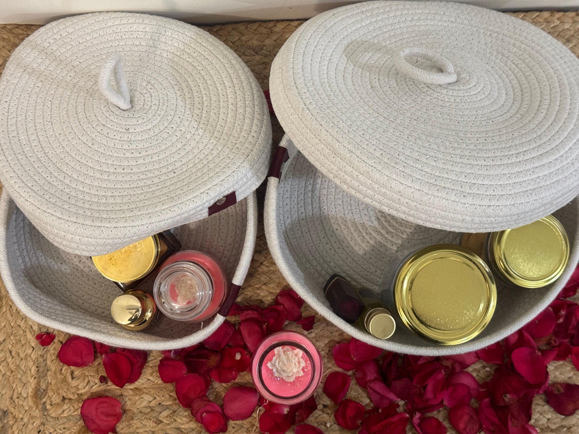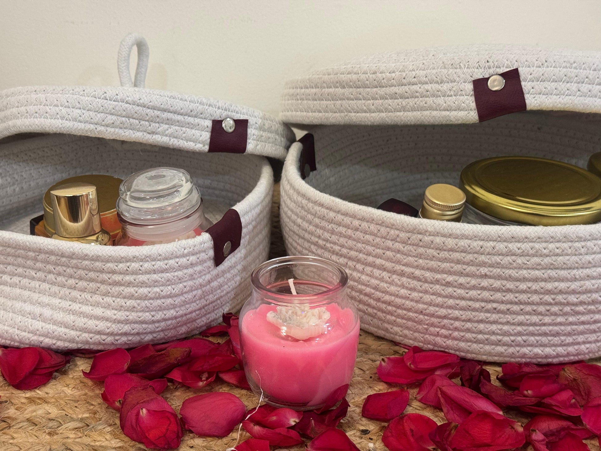 - Design: White jute organizer set with matching caps for a sleek and organized look