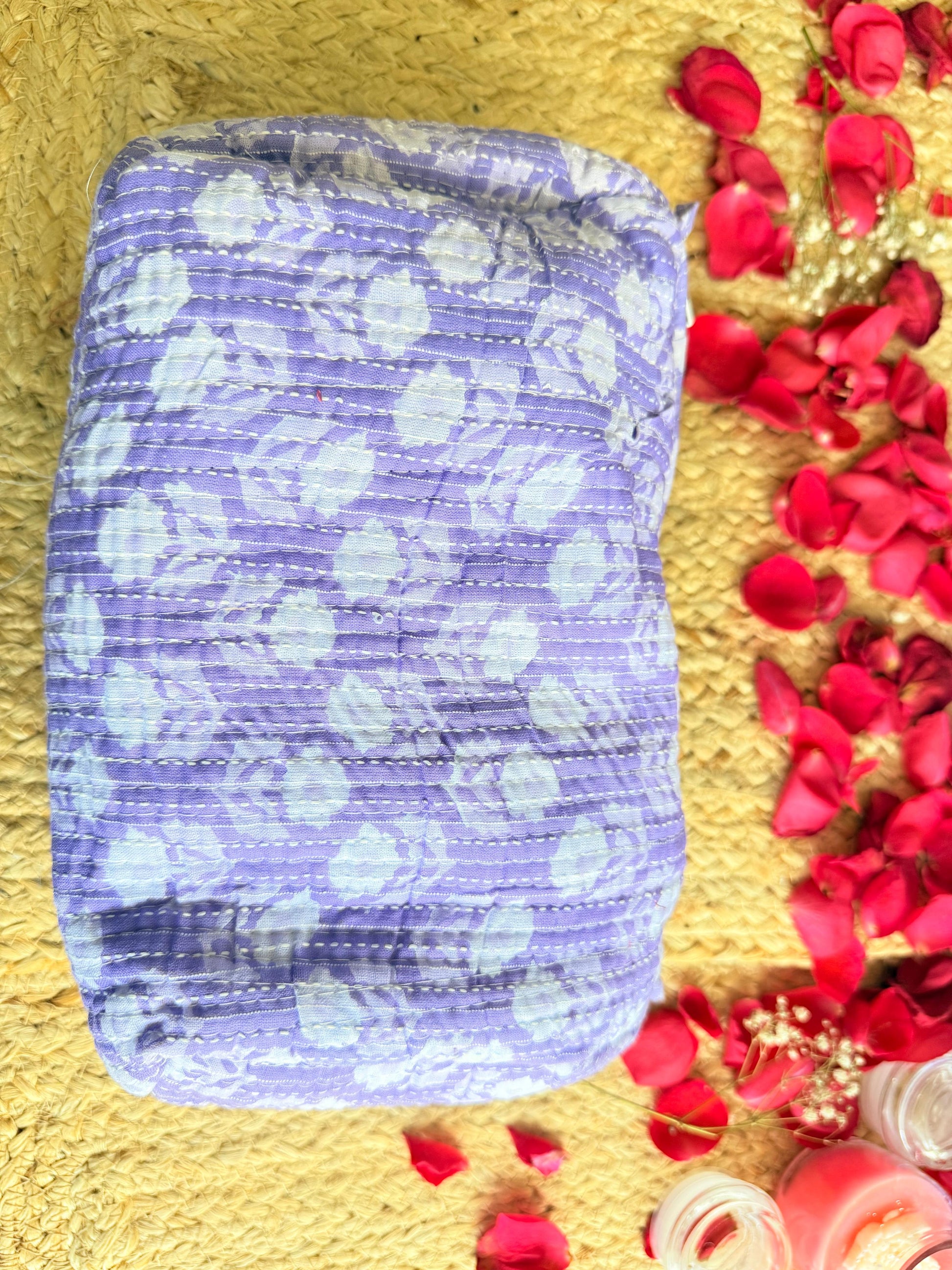 This gorgeous set of 3 handblock pouches features a stunning purple floral design on a crisp white background. Perfect for keeping your essentials organized and easily accessible, these pouches are also a stylish addition to any outfit. Handmade with care, these pouches are both practical and beautiful!