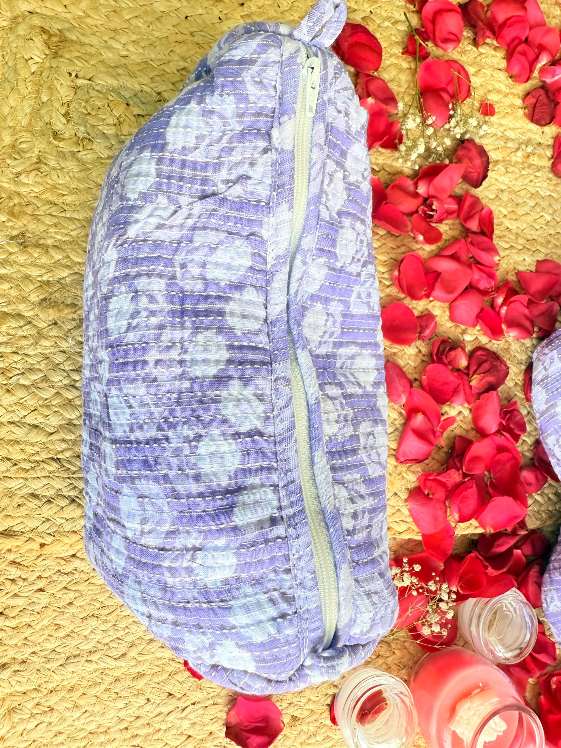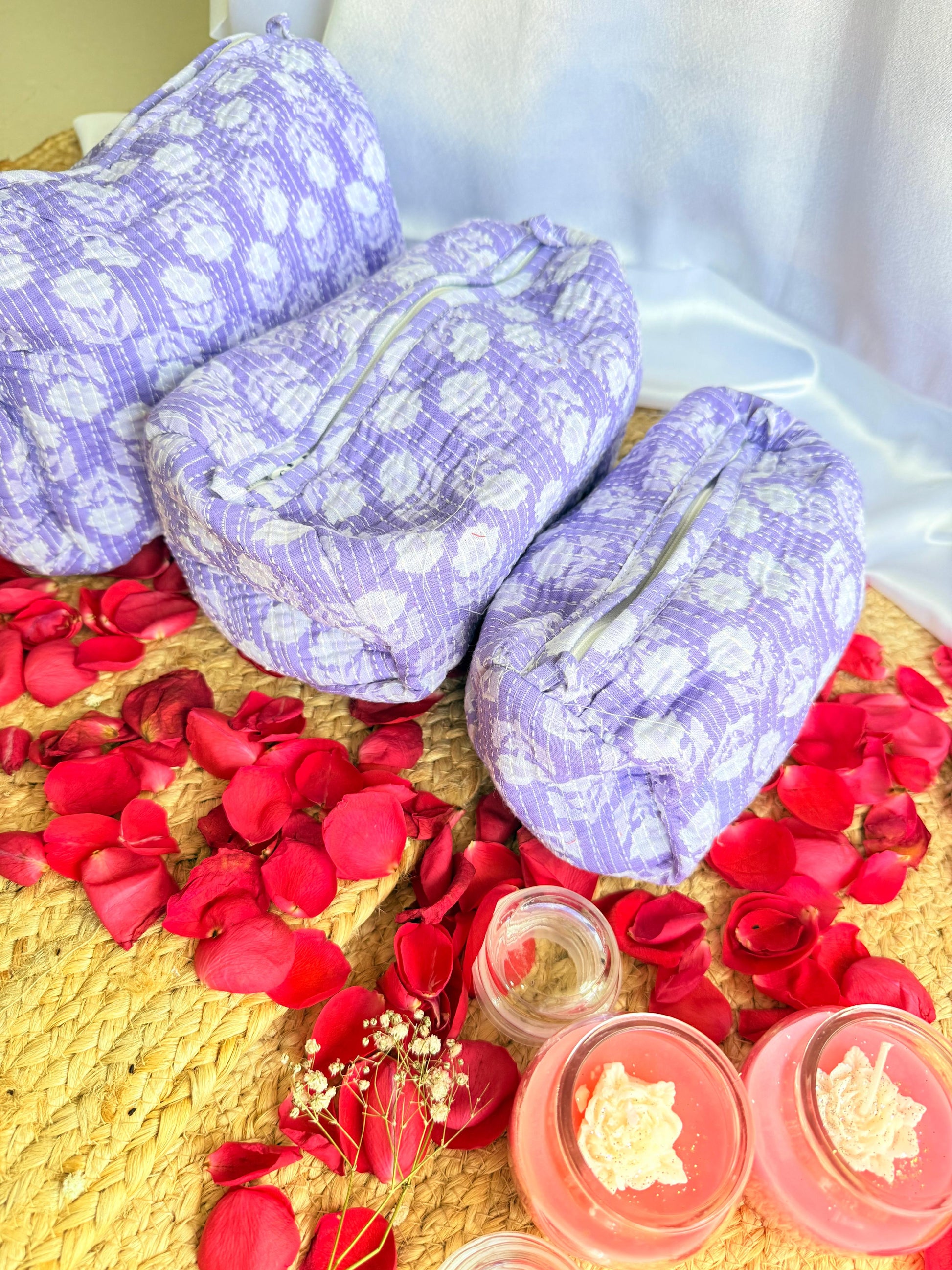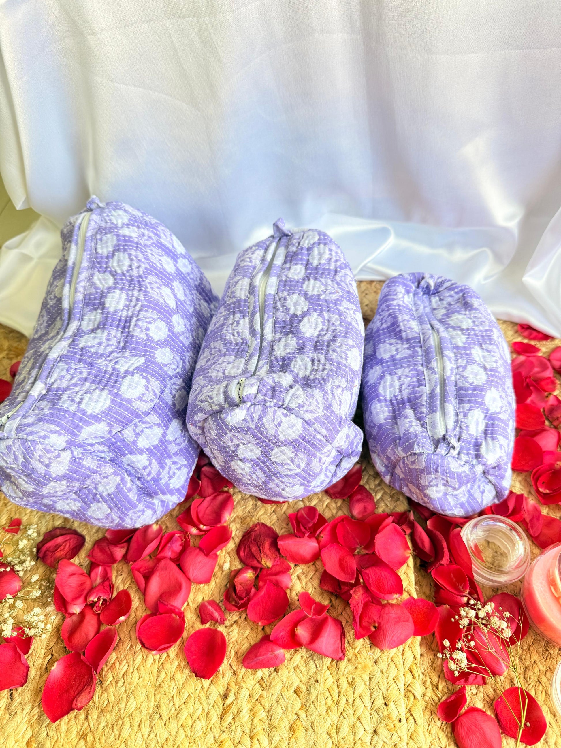 Purple and White Floral Handblock Travel Pouch Organizer Set of 3