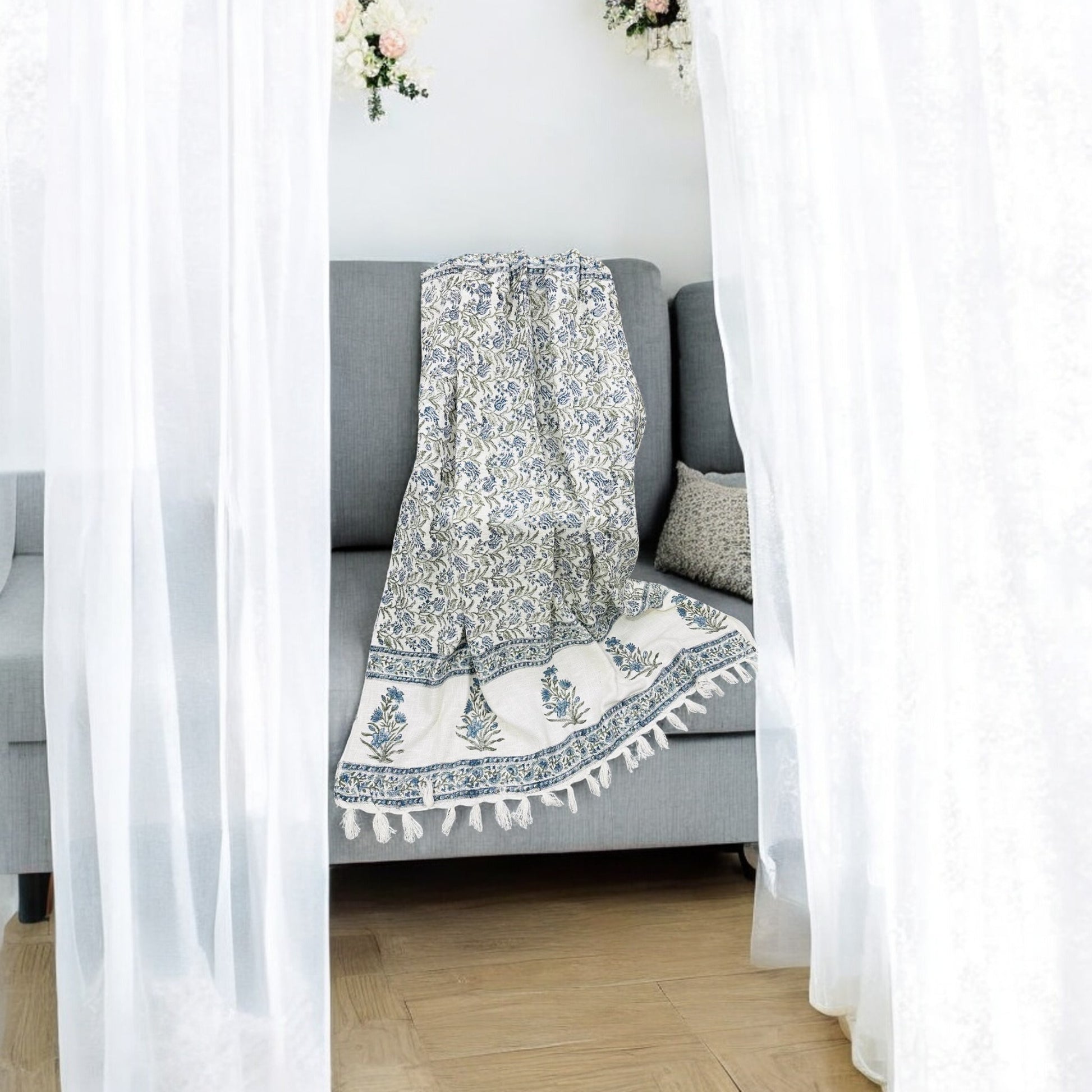 Elegance and comfort made easy with these beautiful blue-green floral pattern on white Premium Handblock TNT Throws. Made by handblock technique that translates into uniqueness and the finest craftsmanship in every other view of this art piece. Soft, breathable fabric is gentle to the skin while providing a cozy touch to the room. Great for layering on beds, sofas, or lounging chairs, this versatile throw will add sweetness to any room's décor through its lovely floral pattern and refreshing color palette.