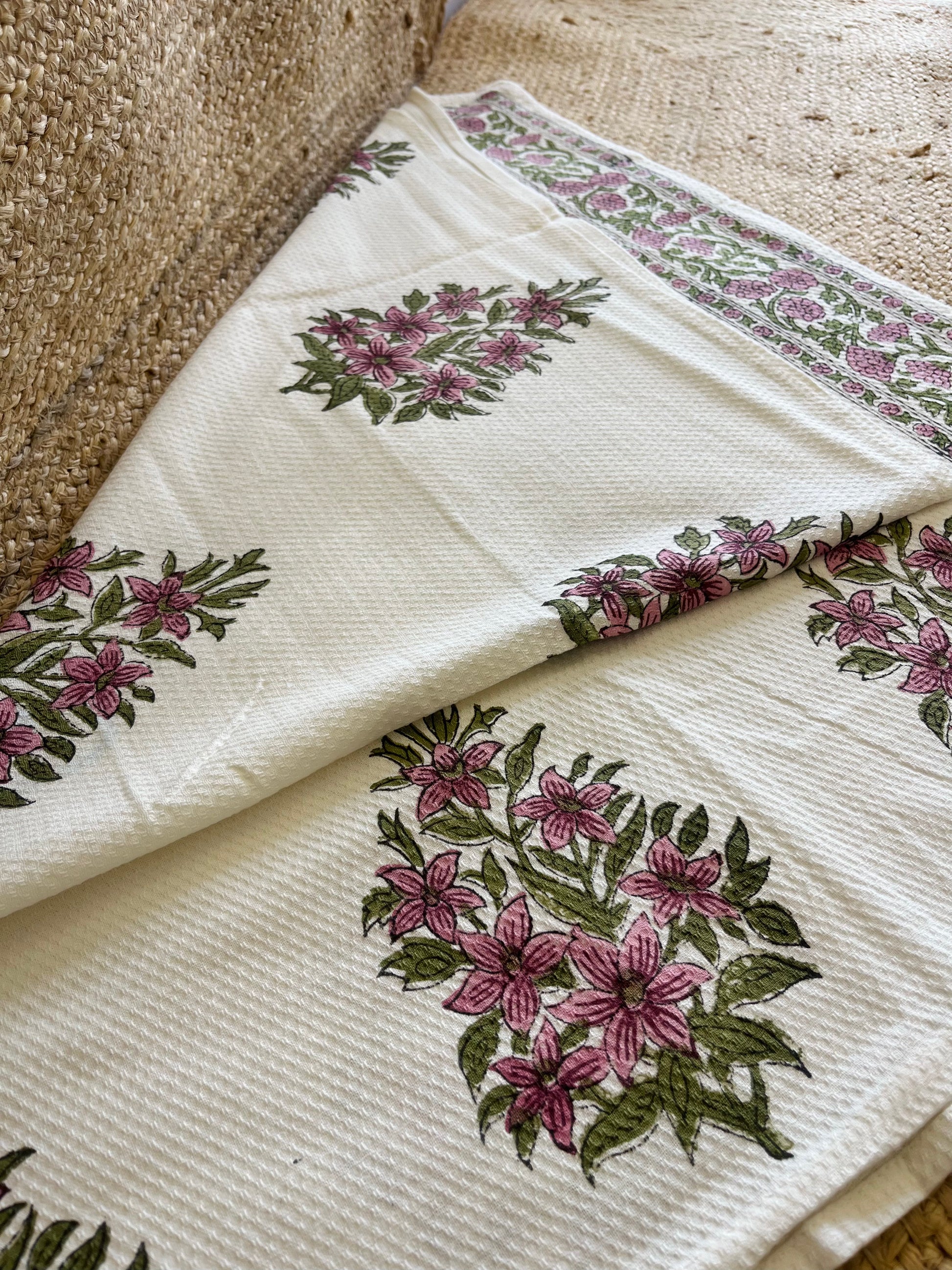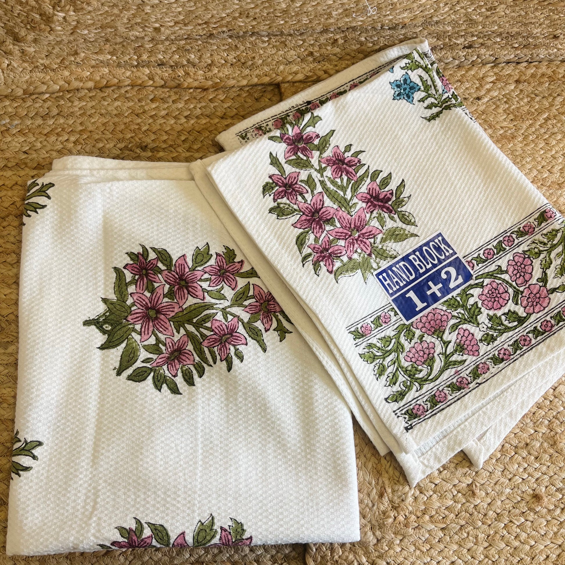 Waffle Cotton Handblock Printed Towel Set – Soft, Absorbent & Artisanal ✨