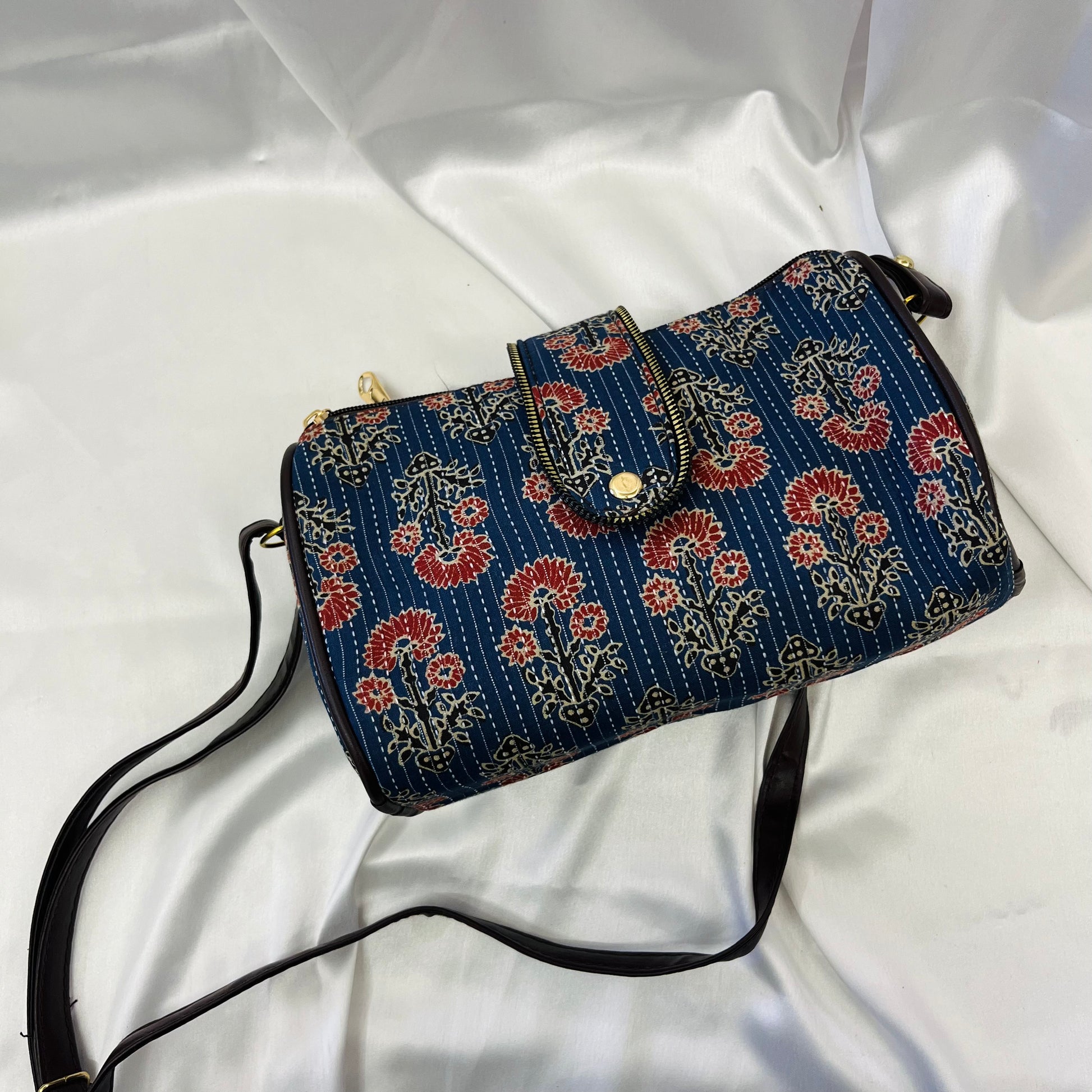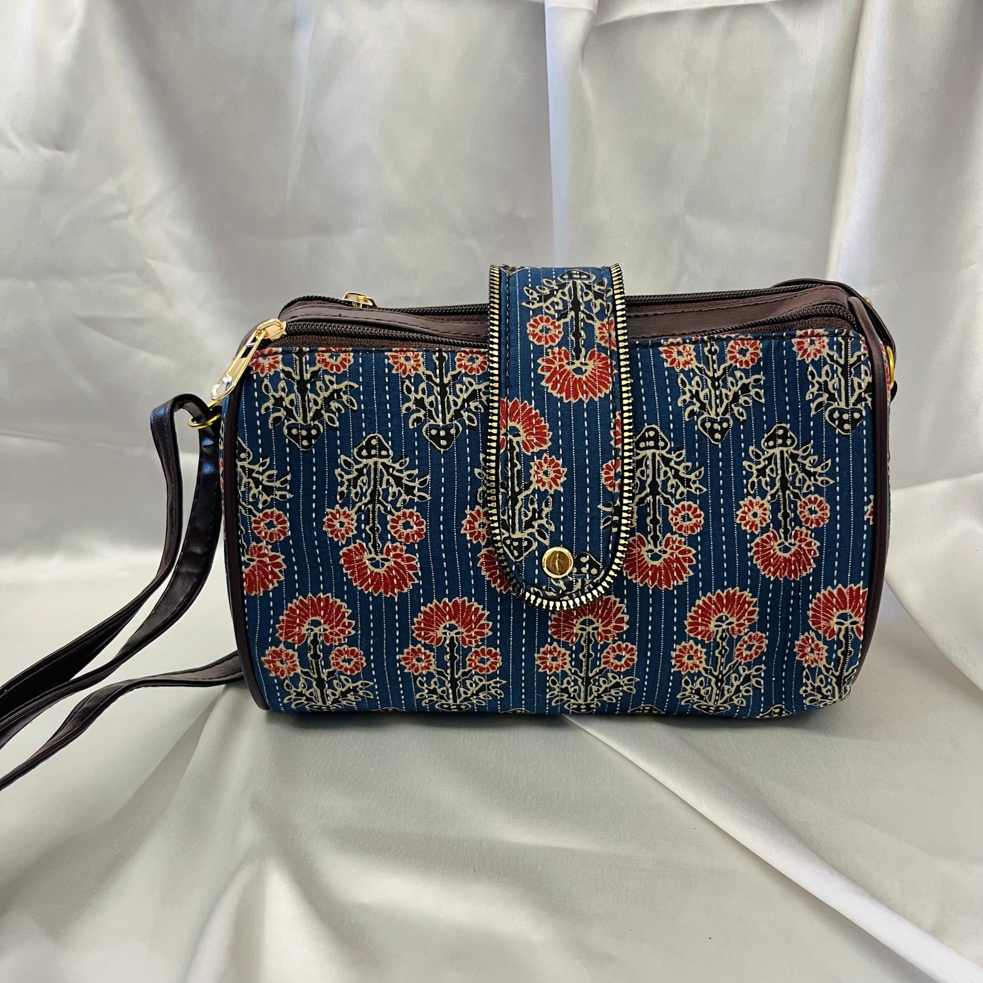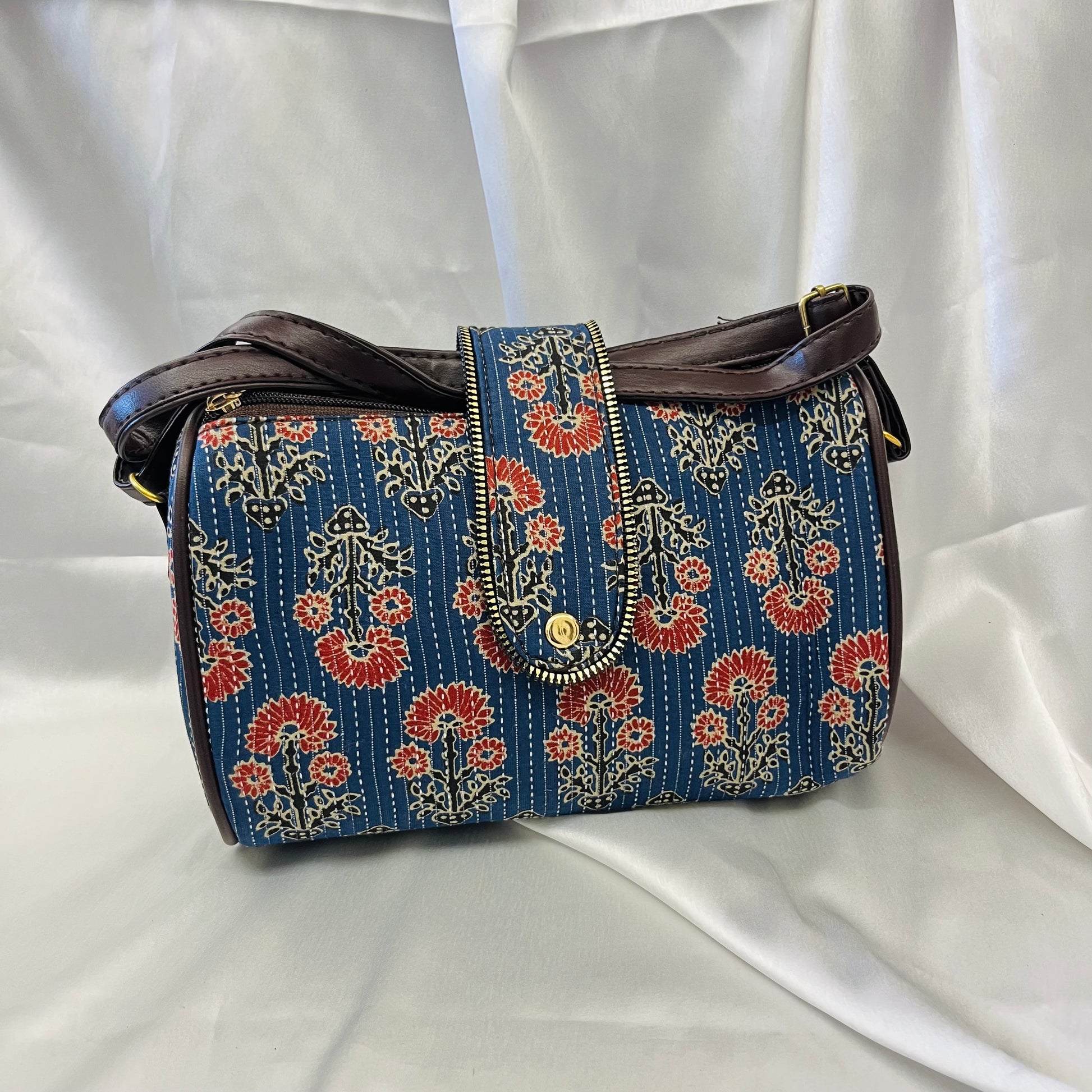 Brighten up your accessory game with this Blue & Red Floral Handblock Sling Bag, a celebration of traditional Indian artistry fused with everyday functionality. Crafted from soft cotton canvas, this bag features delicate red blossoms and vine motifs on a deep blue background, all brought to life through age-old handblock printing techniques.