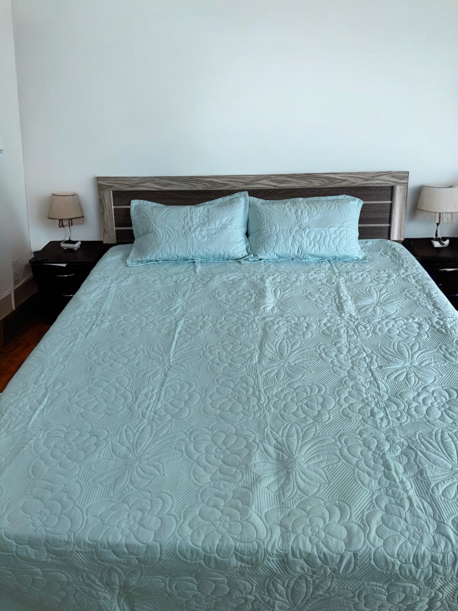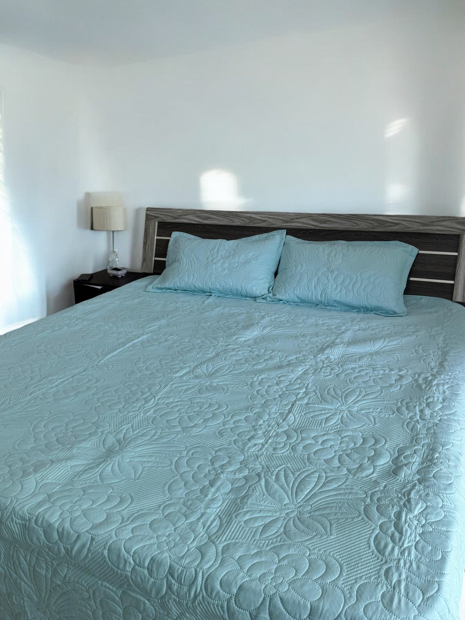 - Design: Solid Blue Quilted Cotton Bedcover with 2 Pillow Covers
