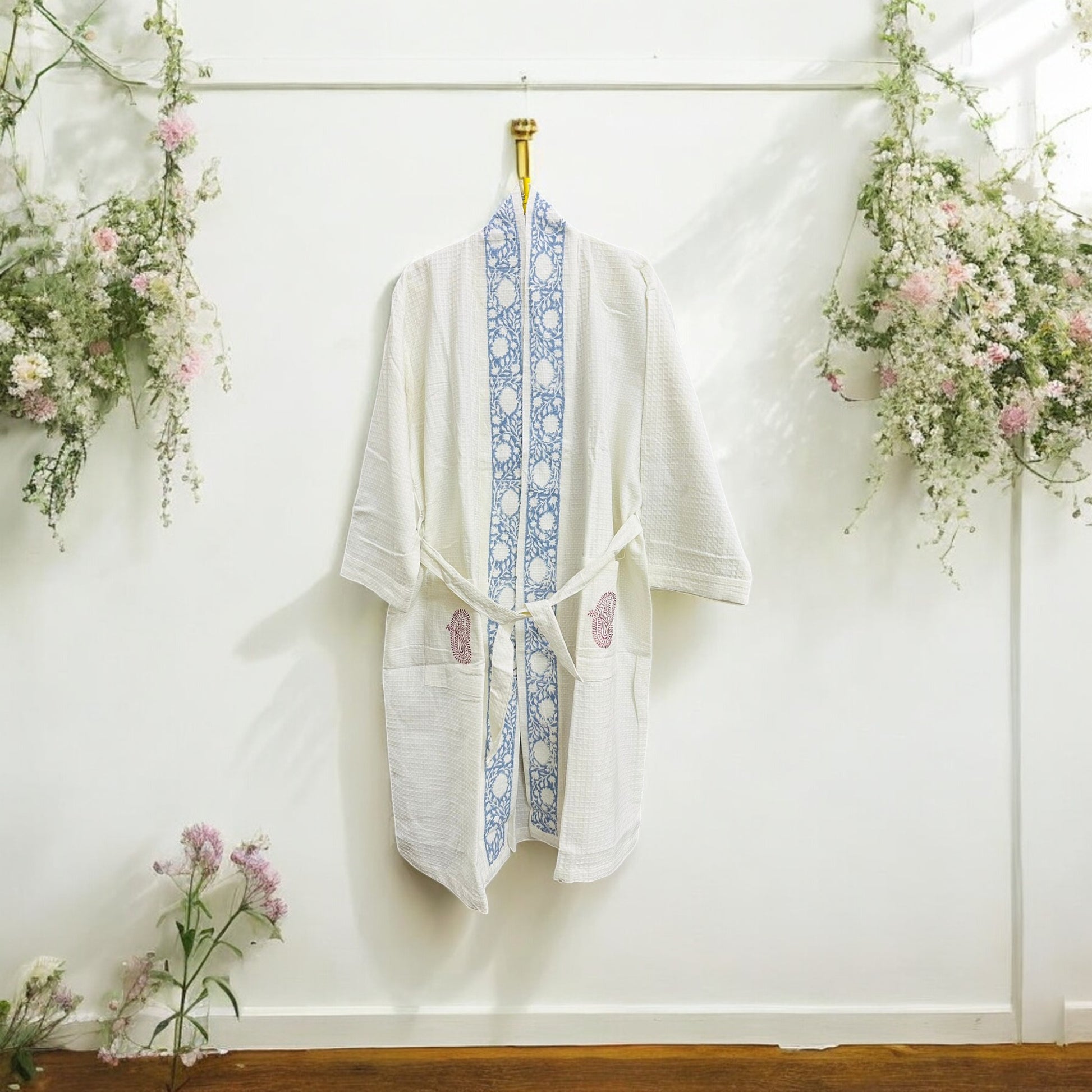 Blue Stripes White Handblock Bathrobe – 100% Cotton, Soft and Stylish