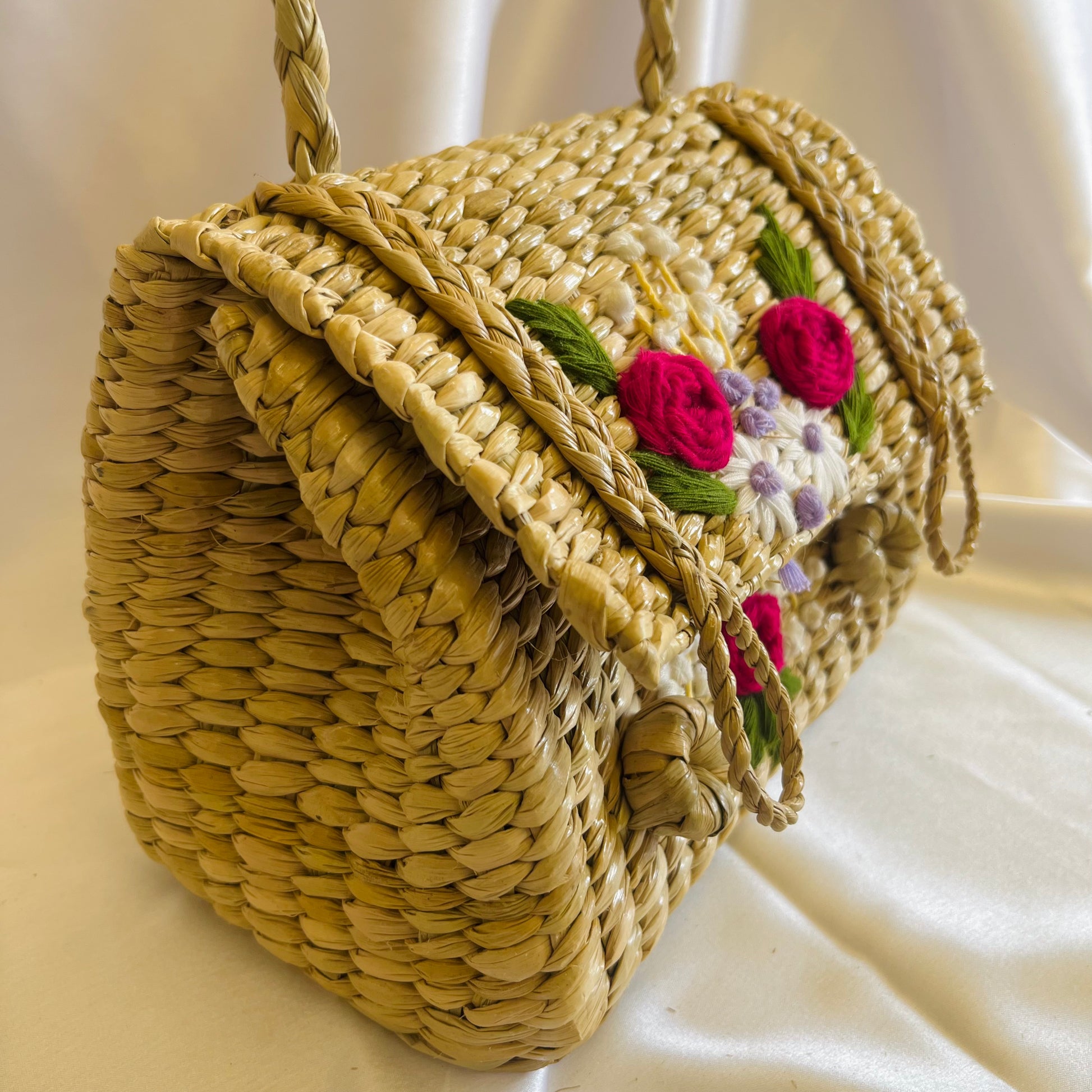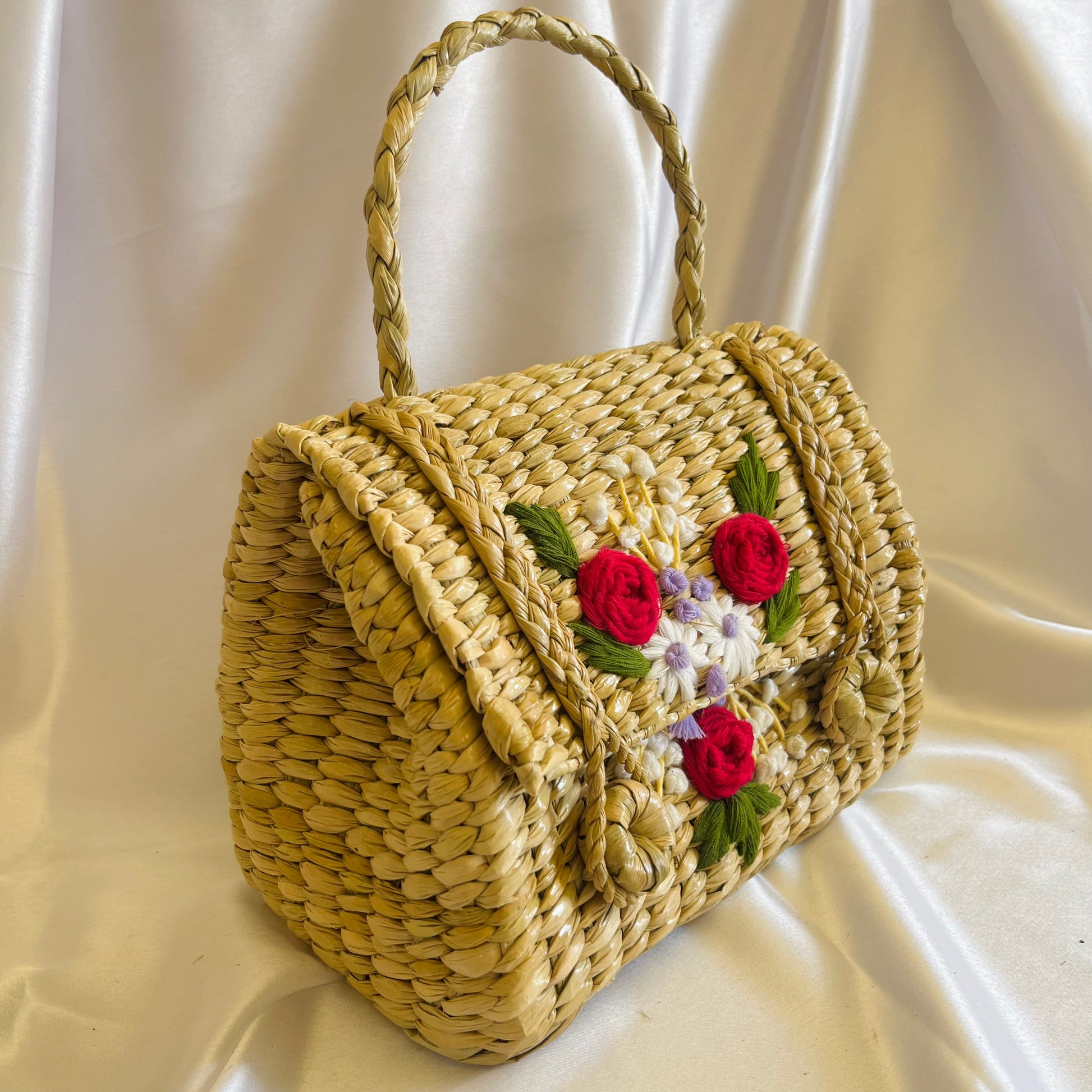 Kauna Grass Handbag with Hand-Embroidered Handle & Sabai Grass Button πΏβ¨
