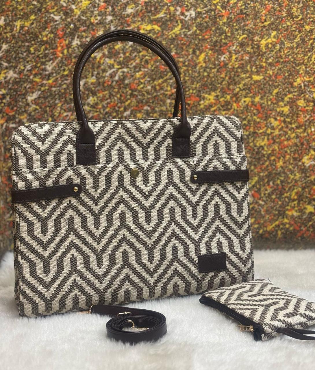 Brown and White geometric tote bag