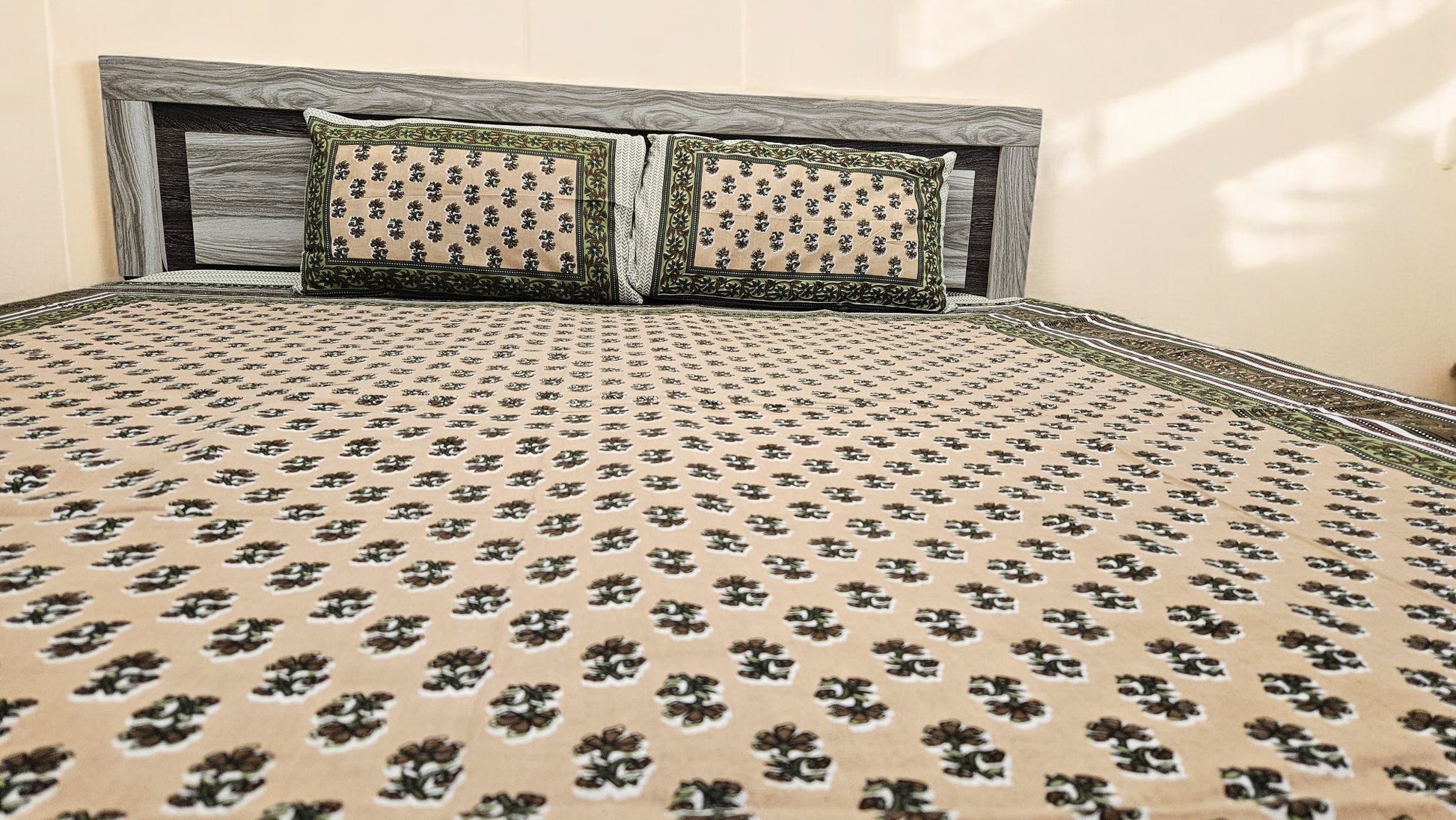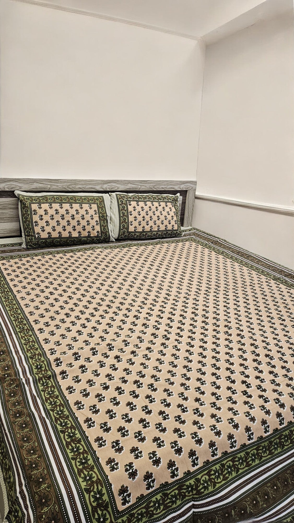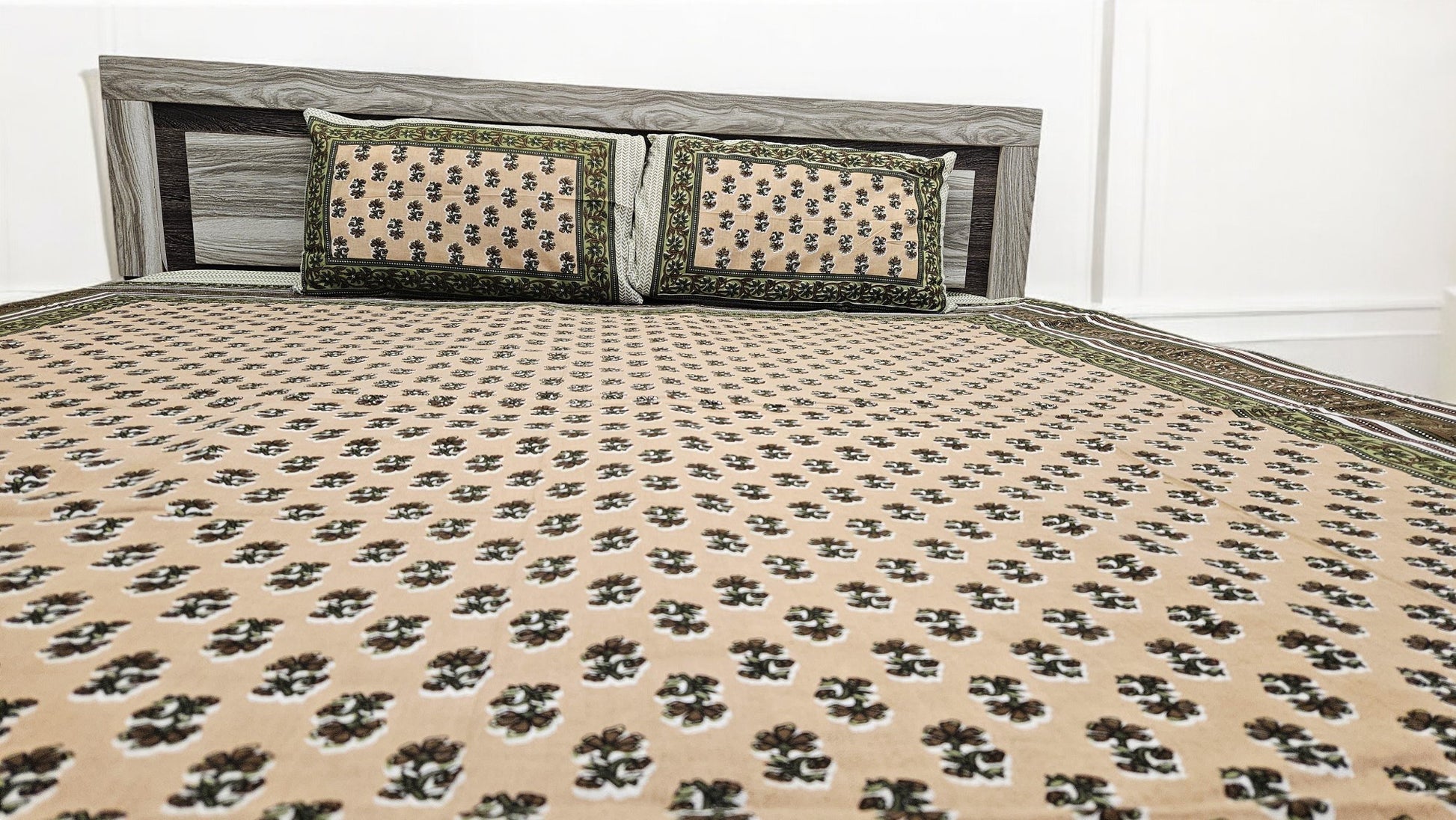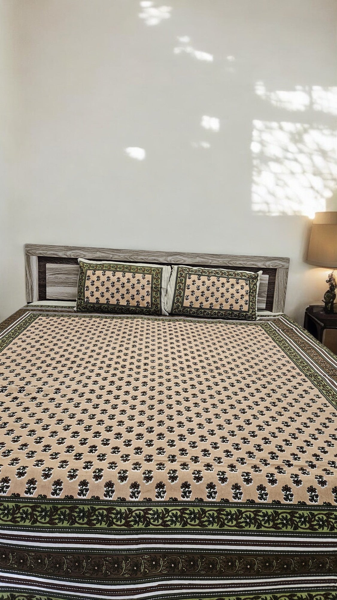 Brown Floral Double Bedsheet with 2 Pillow Cover
