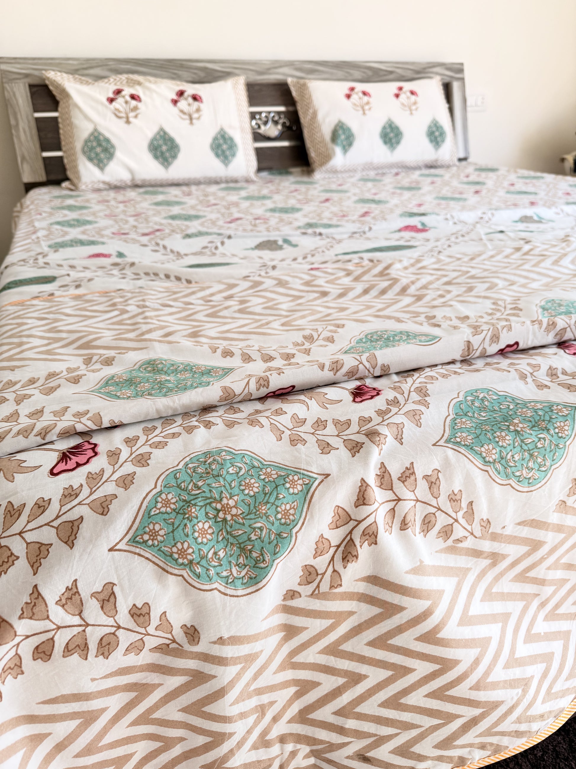 Brown wave Handblock Cotton Double Dohar with Double Bedsheet