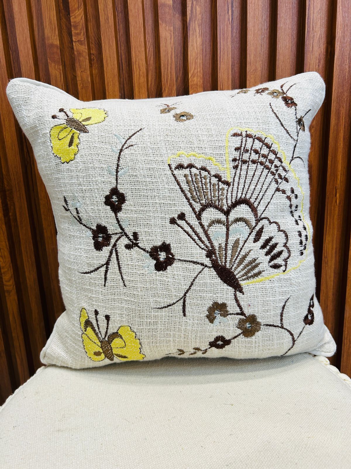 Butterfly embroidery jute cotton cushion cover