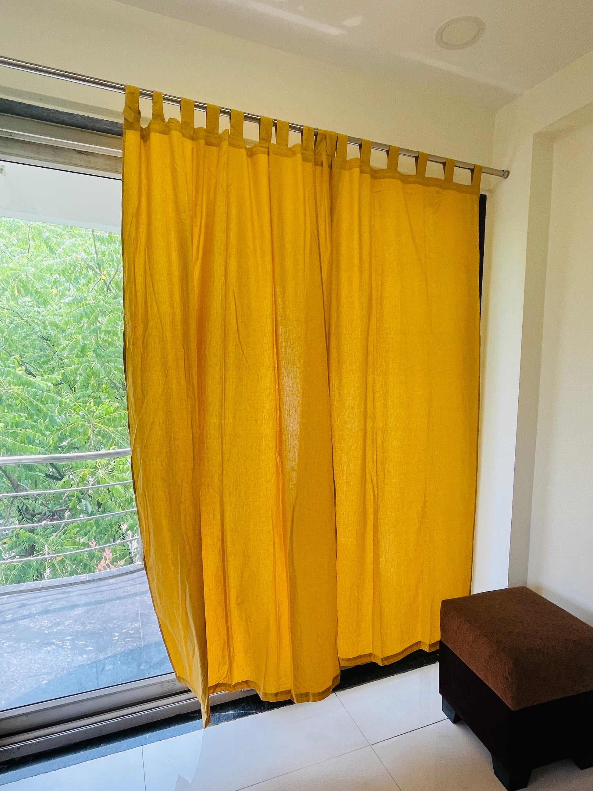 Brighten up your space with the Cotton Solid Yellow Curtains, designed to bring a cheerful and elegant touch to your home. Made from 100% high-quality cotton, these curtains offer a soft and breathable fabric that enhances both comfort and style. The vibrant yellow color adds warmth and freshness, making it perfect for living rooms, bedrooms, kitchens, or dining areas. This set includes two 7-foot curtains that provide complete window coverage and are perfect for any home décor theme, from contemporary to traditional.