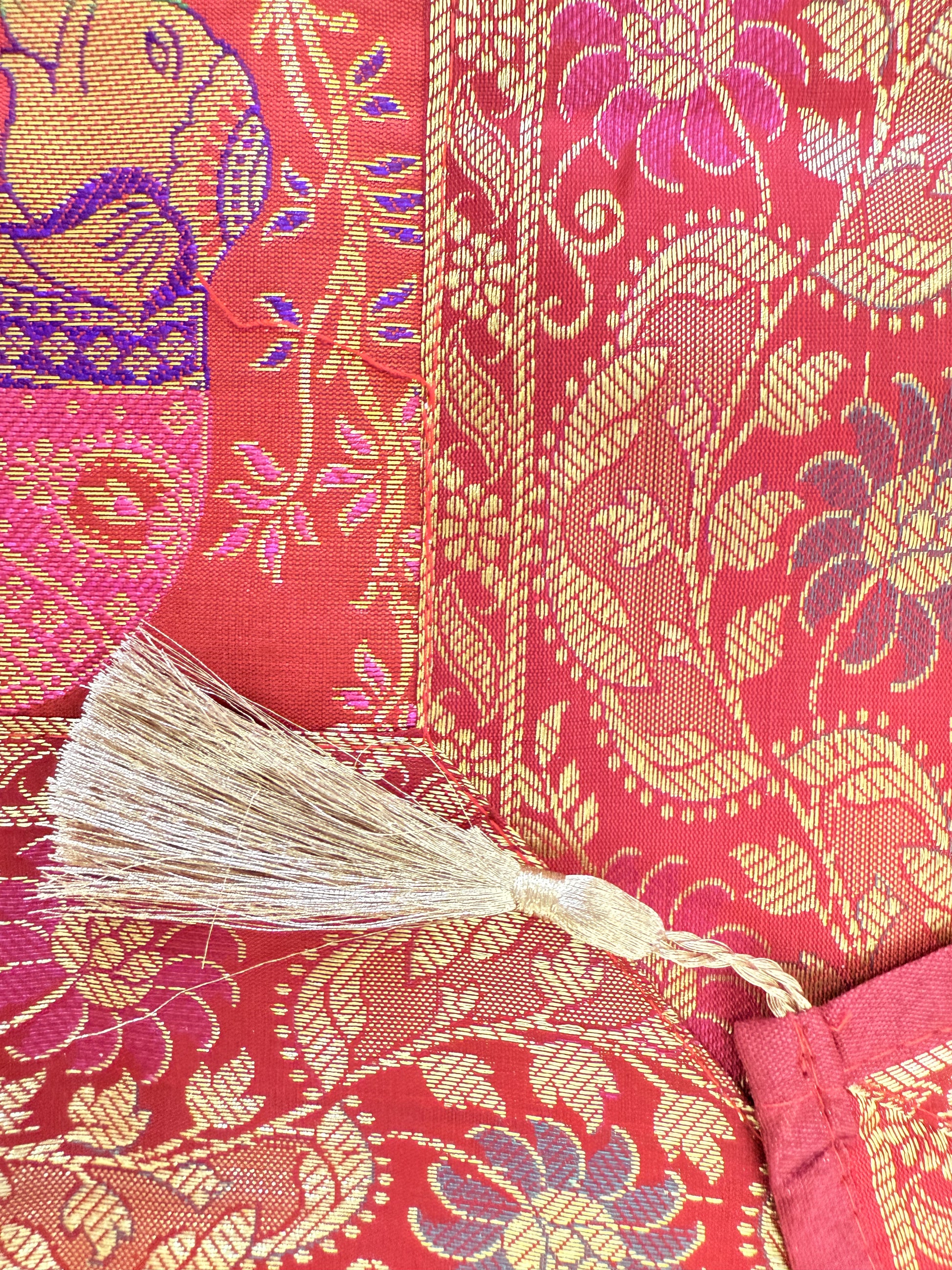 - Handmade Tassels: Adorned with golden beads and threads for added elegance