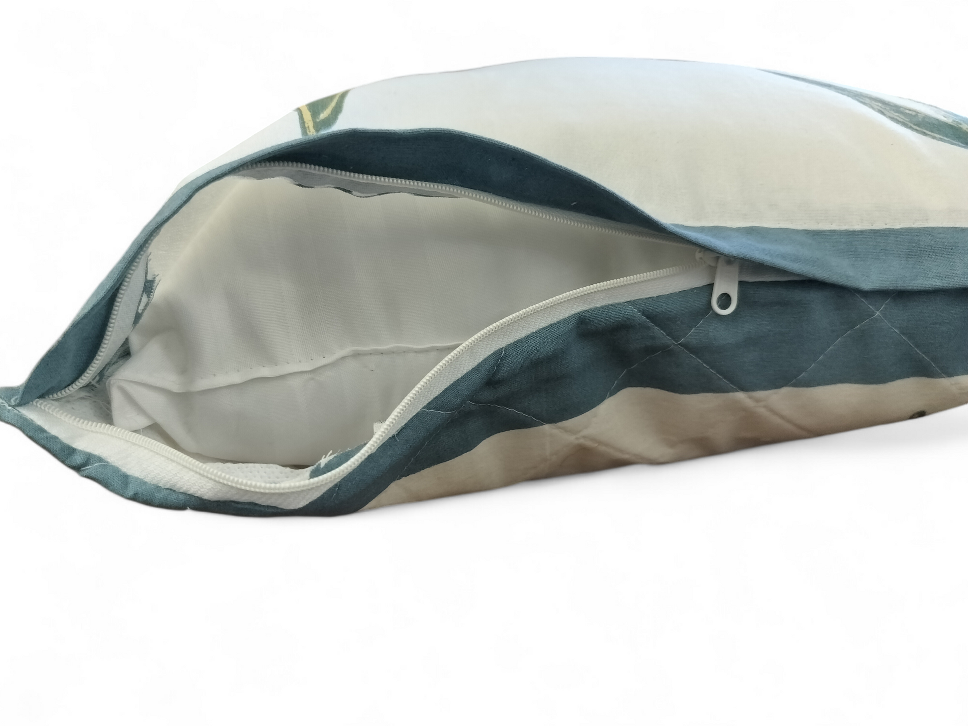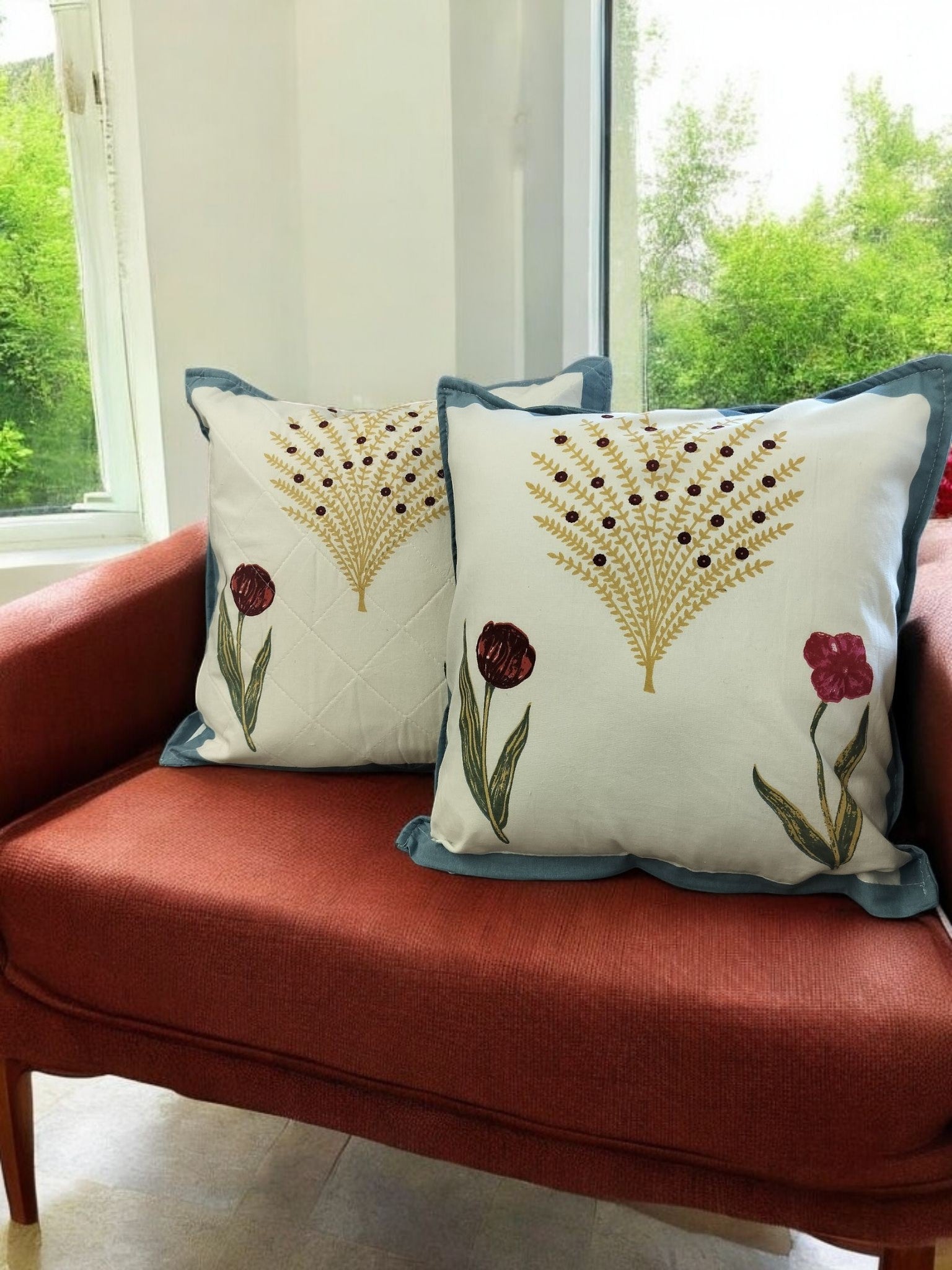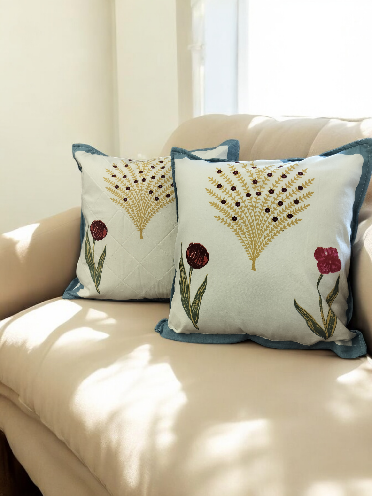 Achieve elegance and give a touch of sophistication to your home interiors with Quilted Handblock Cushion Cover Set of 2 in blue and white. The enhancement of exquisite handblock prints in individual homes spaces, precision-crafted just as it has been done ages ago, adds richness in texture and coziness to make them a great enhancement for sofas, beds, or chairs. Made from the finest fabric, this set of two cushion covers is designed to be strong and fashionable at the same time.