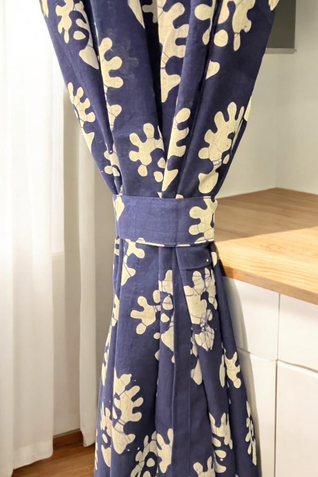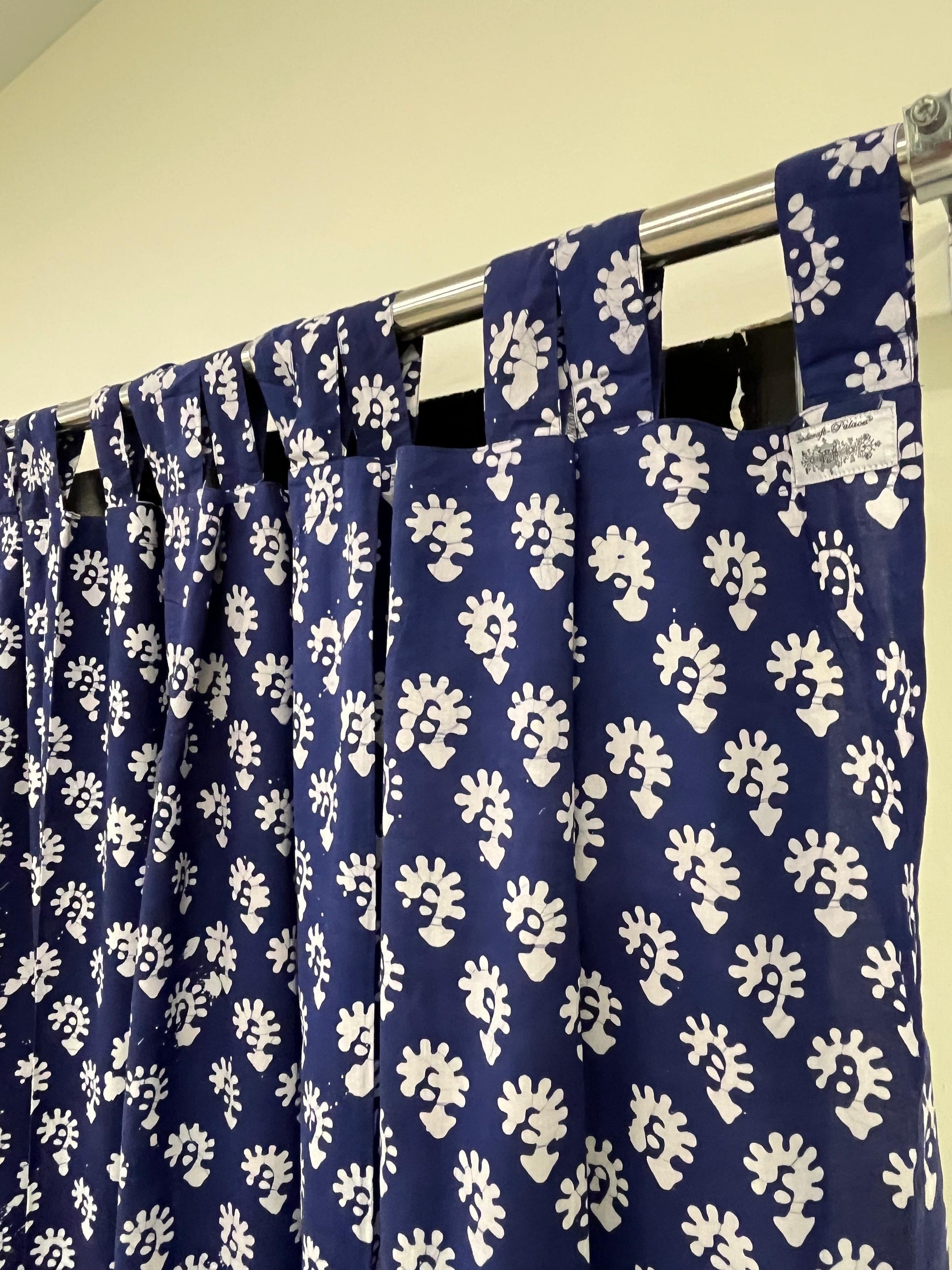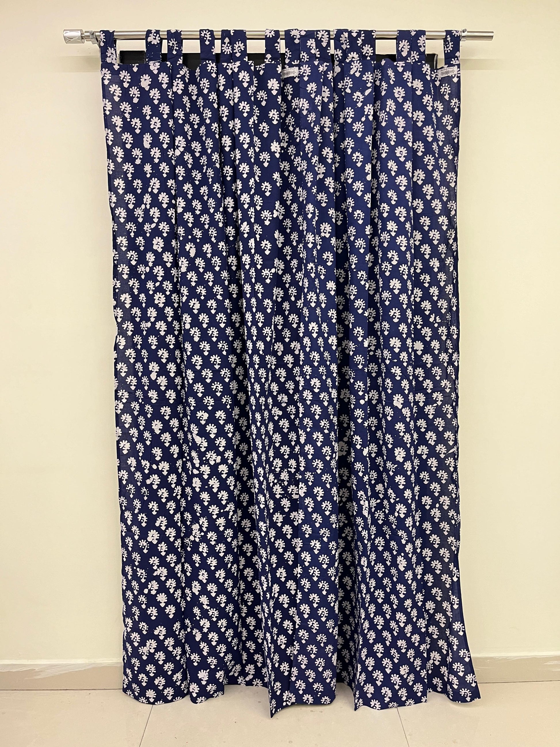 Dark Blue Floral Handblock Print Curtain