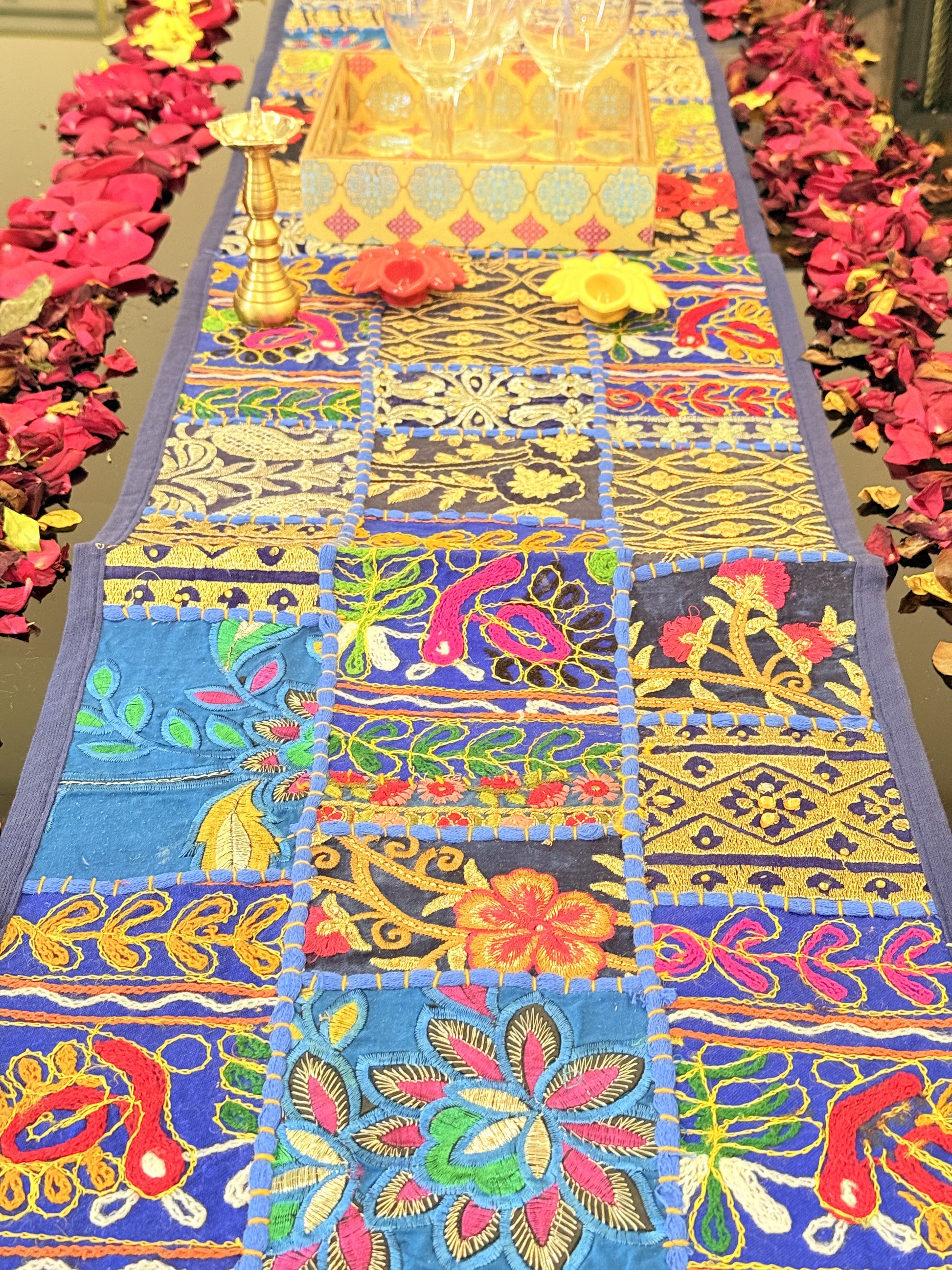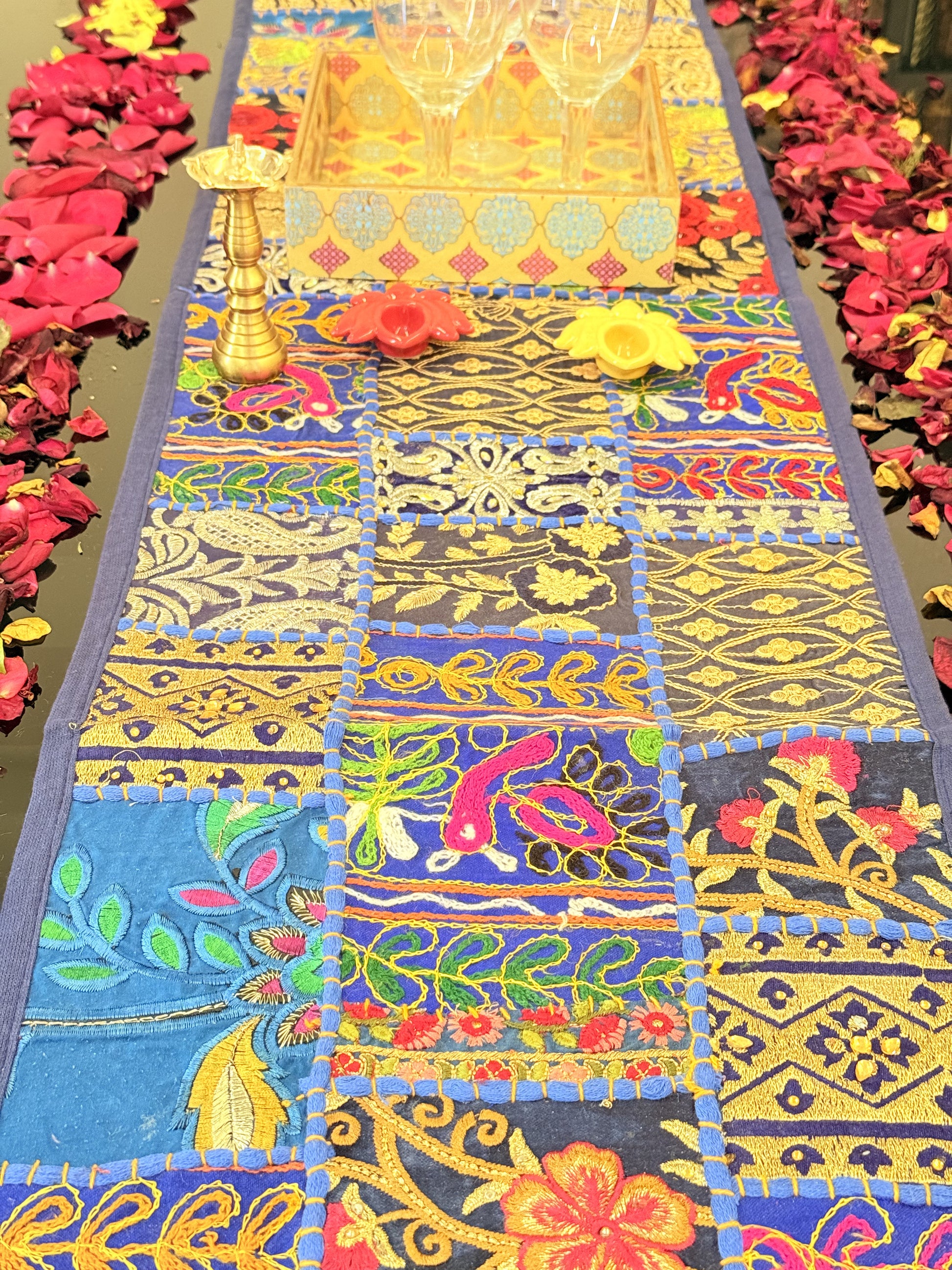 Dark Blue Kambadiya Patchwork Table Runner