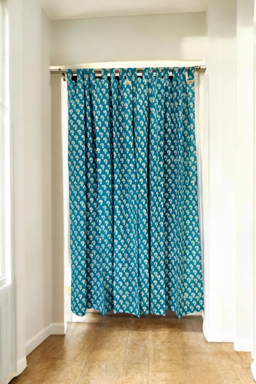 Infuse your space with elegance and color with the Floral Handblock Print Curtains in Cerulean Blue. Made from 100% premium cotton, these curtains feature a stunning floral hand block print that brings timeless beauty and a refreshing vibe to your home. The soothing cerulean blue color creates a calming atmosphere, perfect for your living room, bedroom, or dining area. These curtains combine traditional craftsmanship with modern design, offering a perfect balance of privacy and natural light.