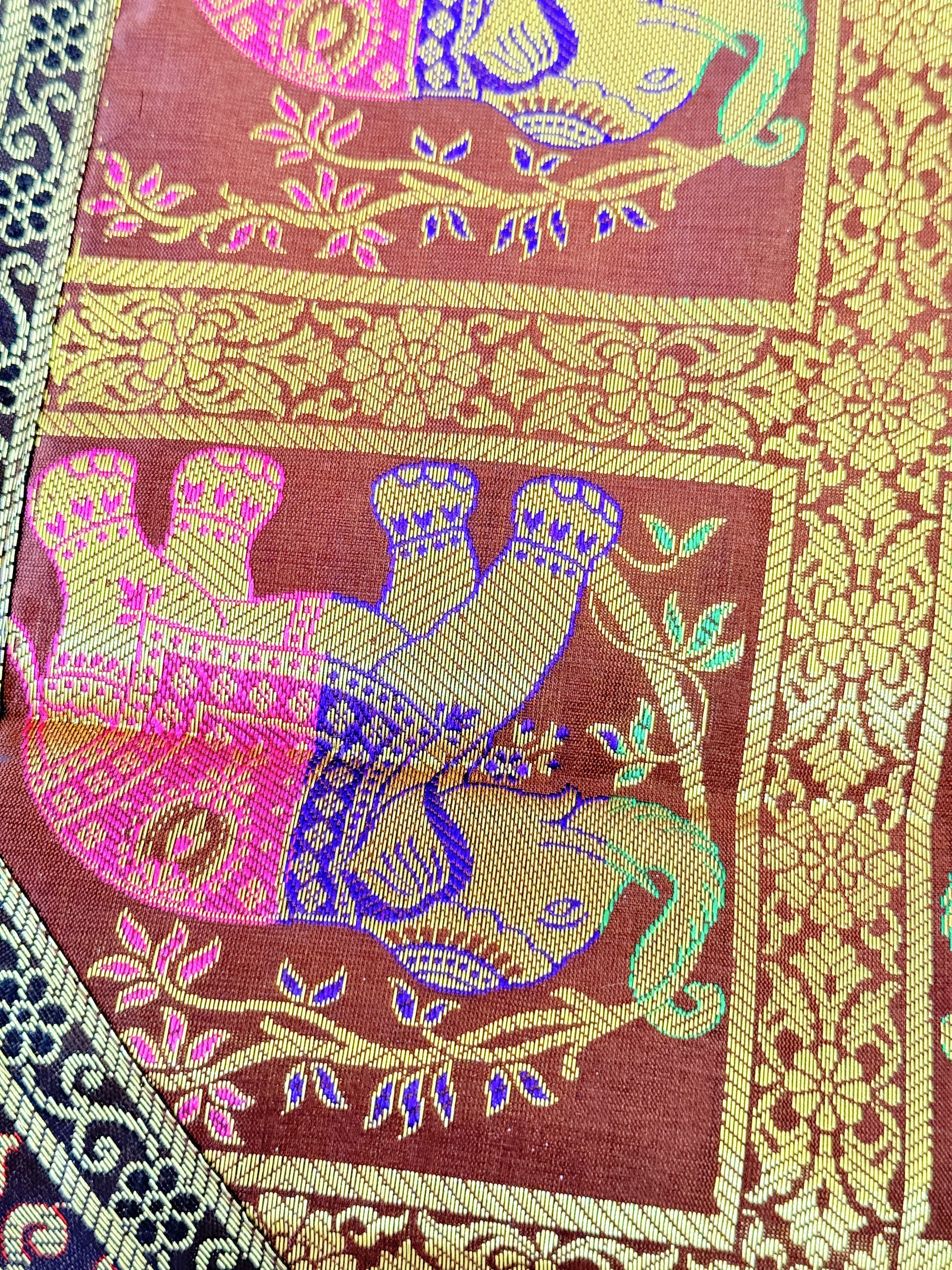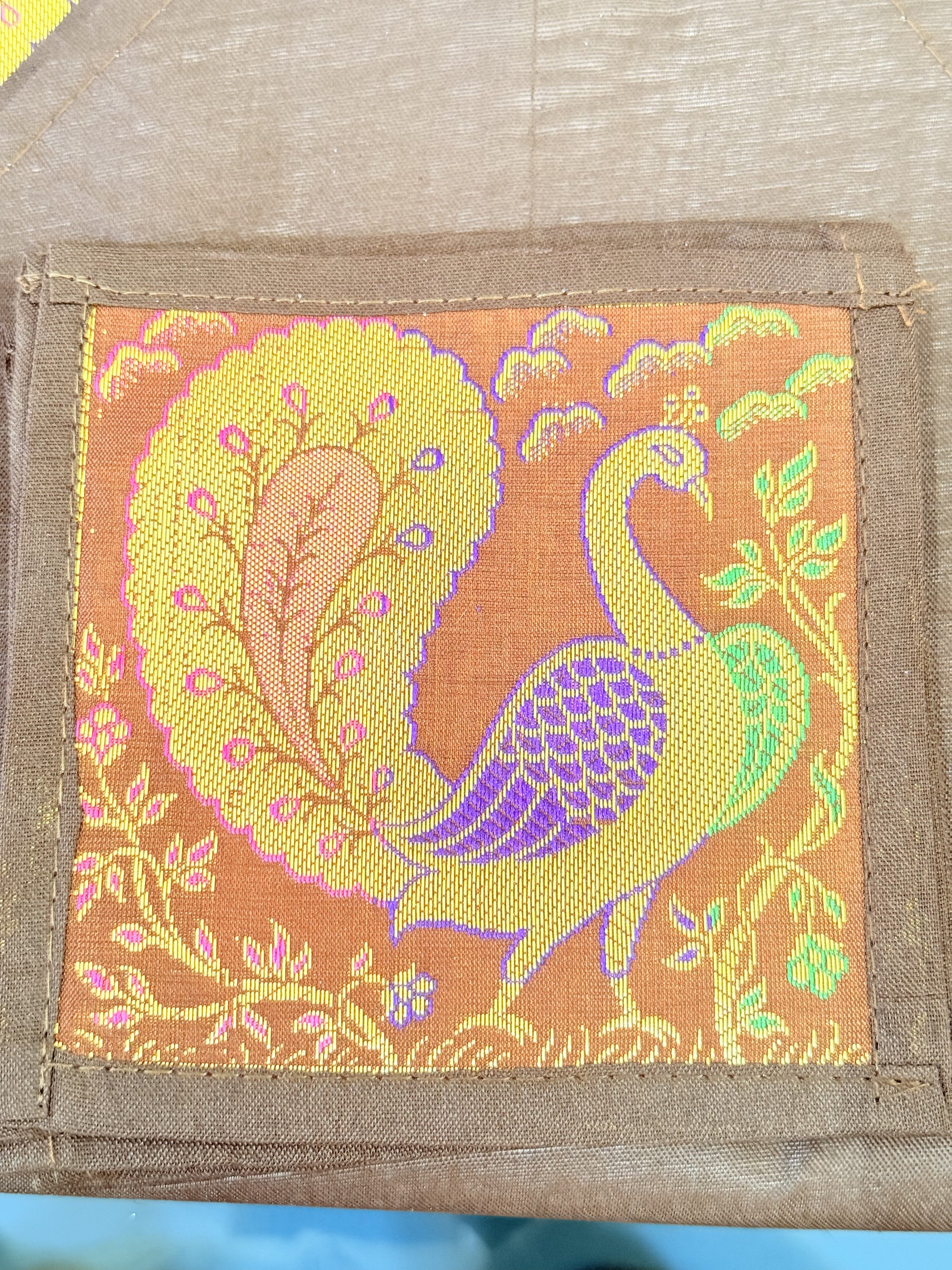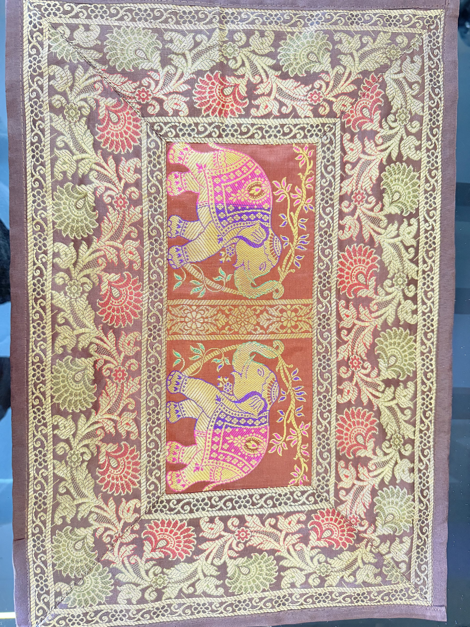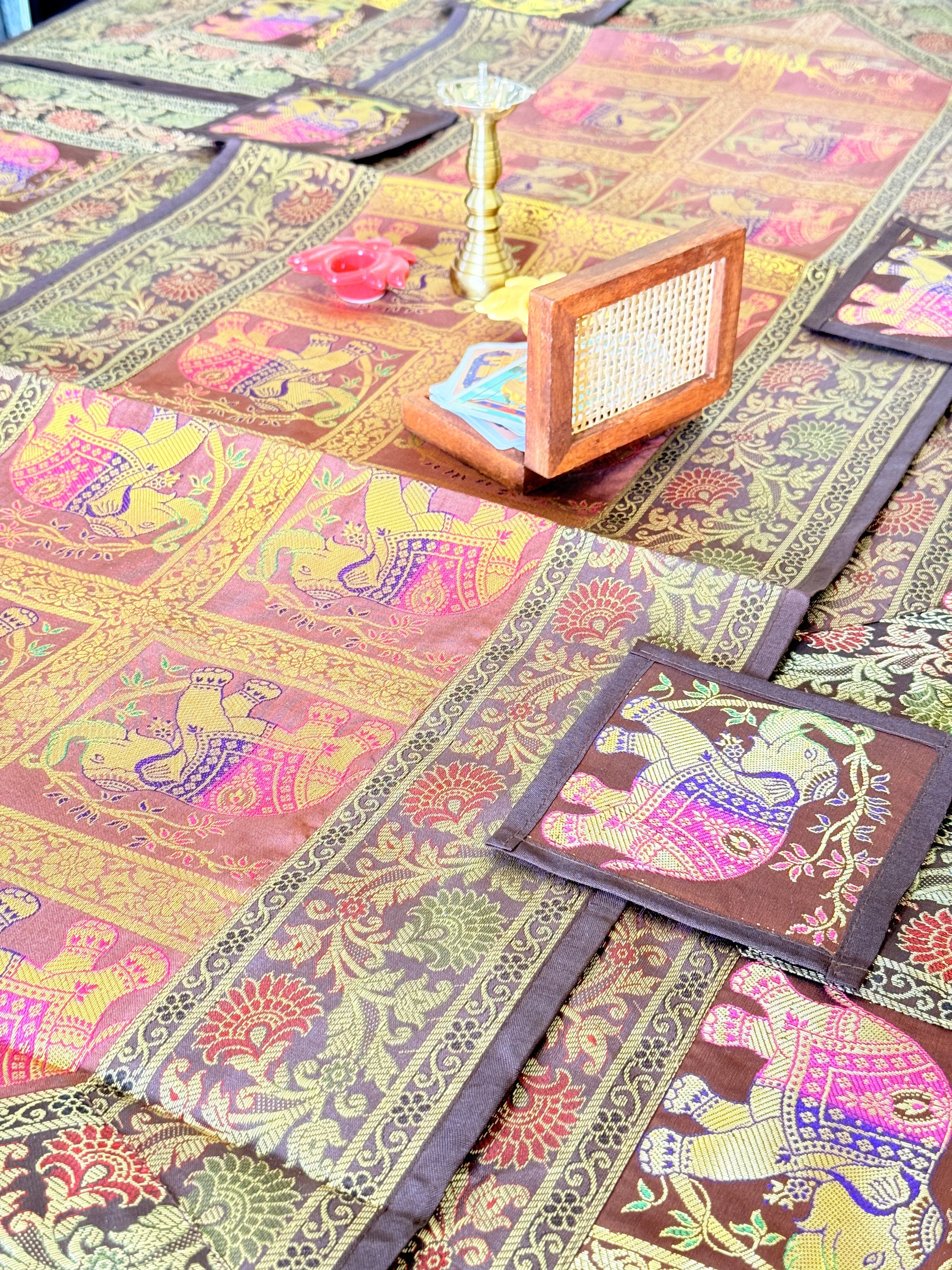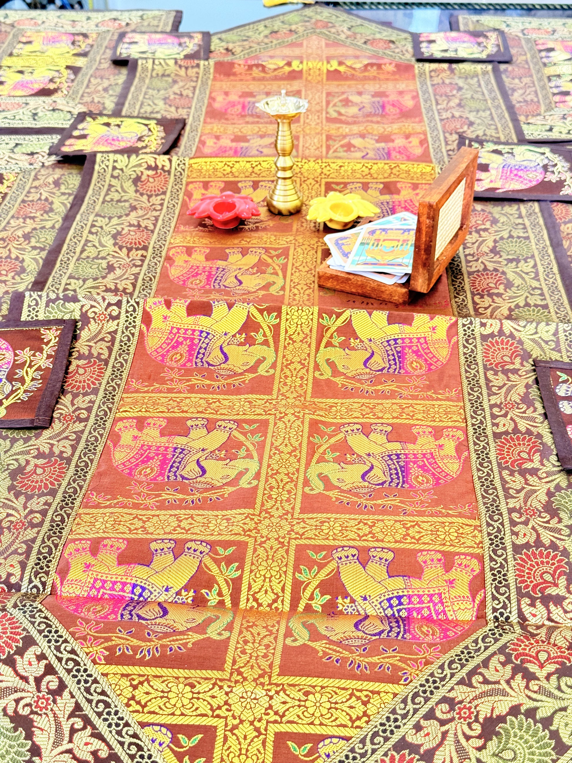 GOLD DECORATIVE FESTIVE BANARASI AILK RUNNER MAT AND COASTER SET