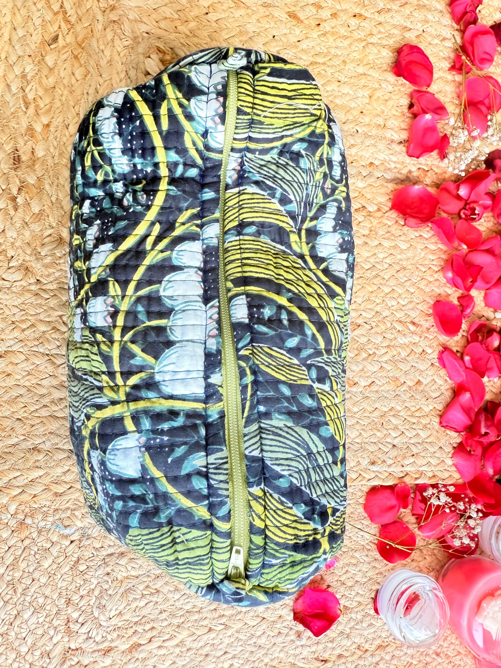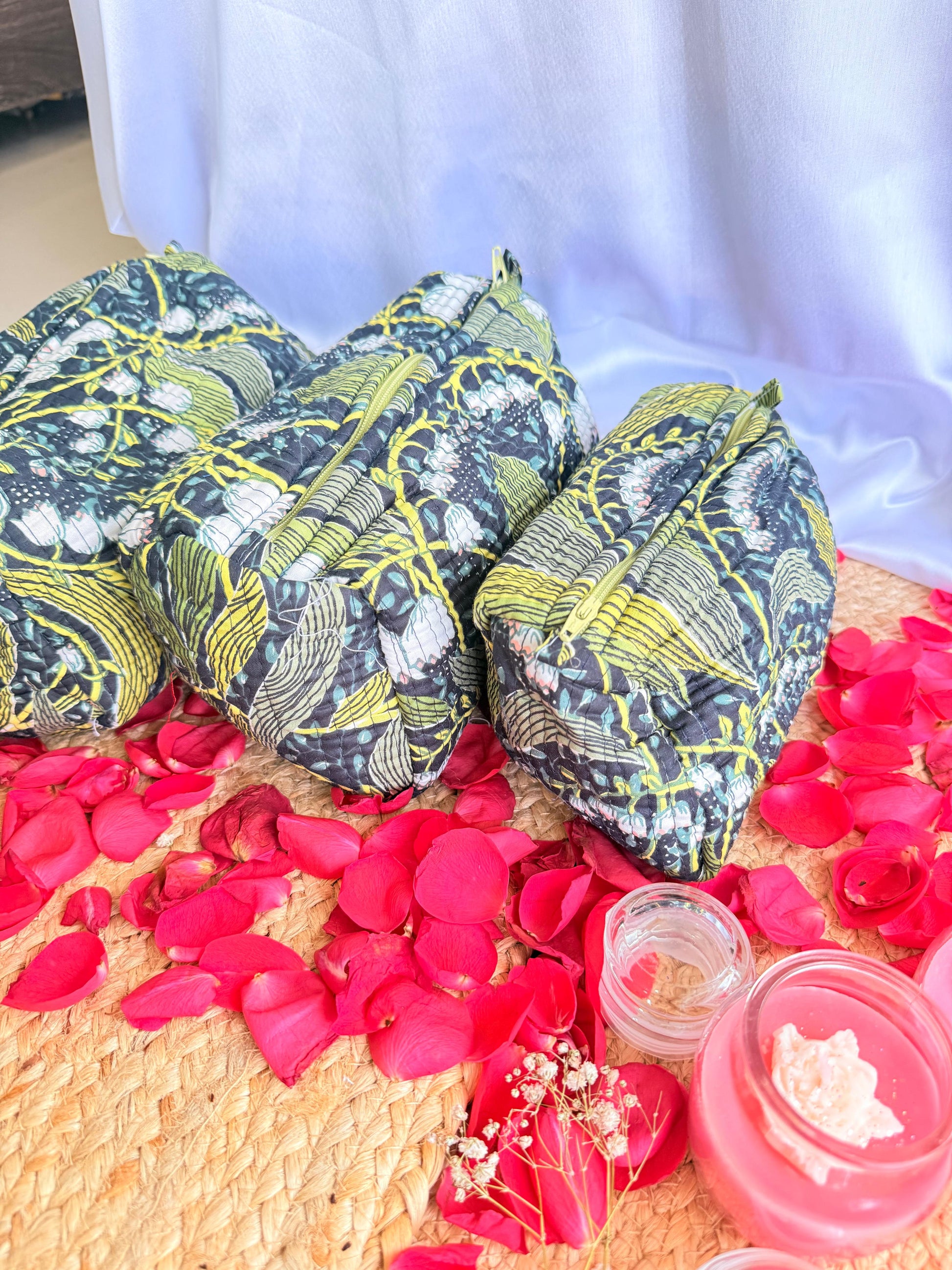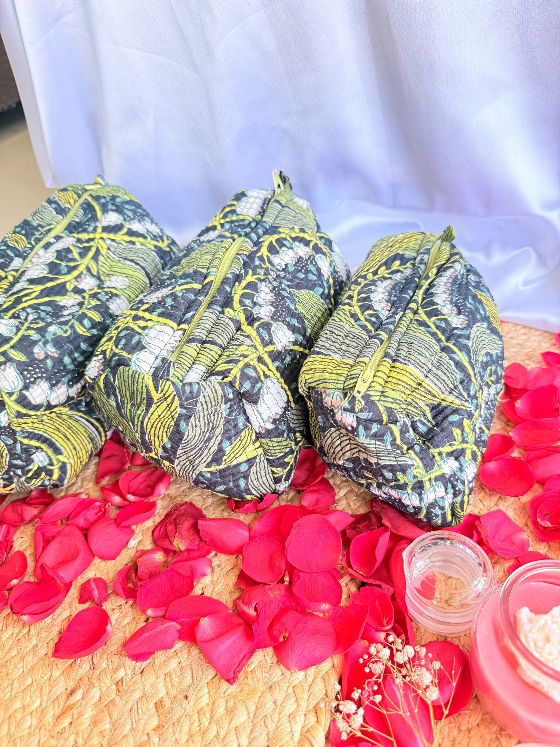 Black Floral Handblock Travel Pouch Organizer Set of 3
