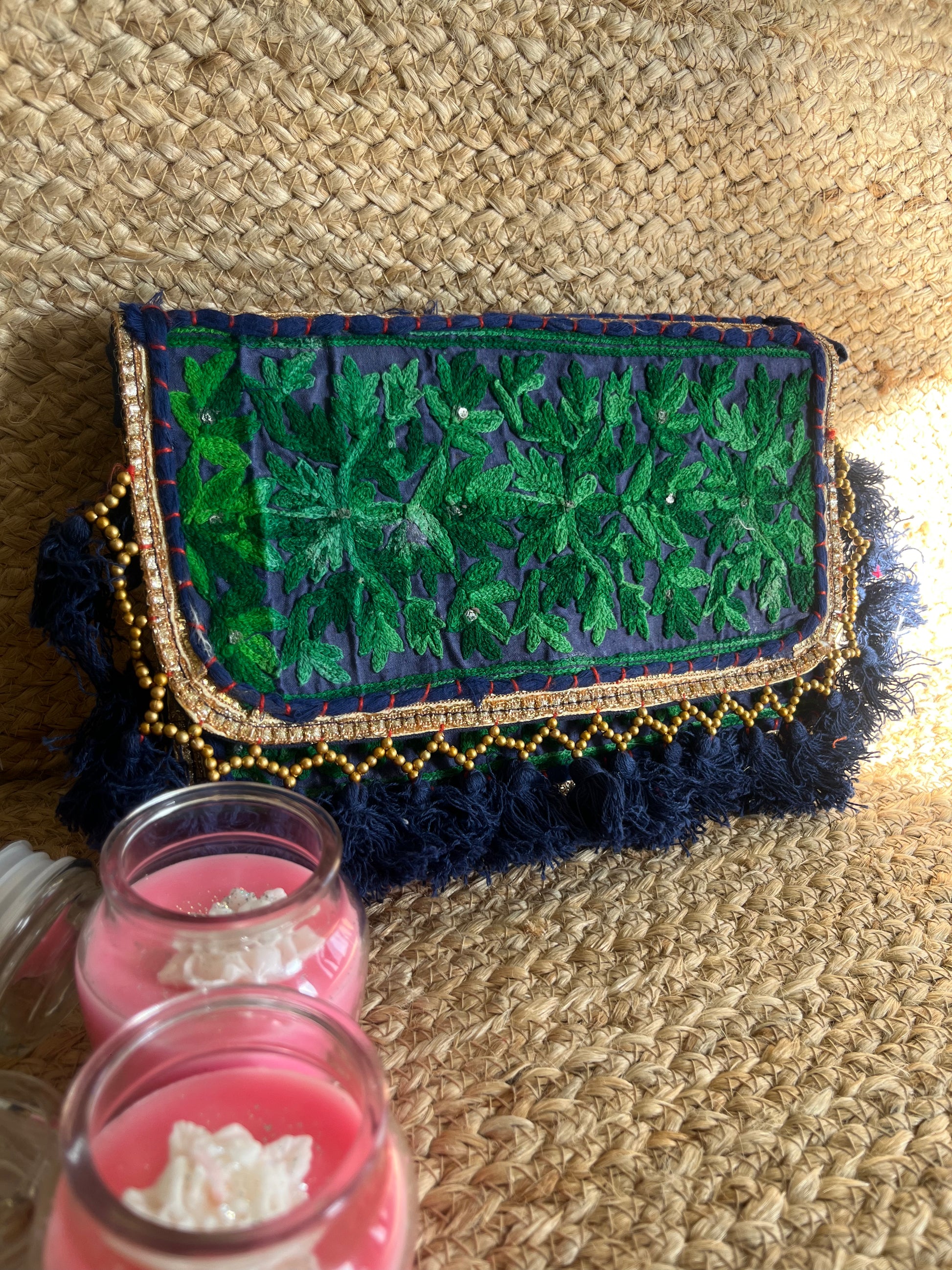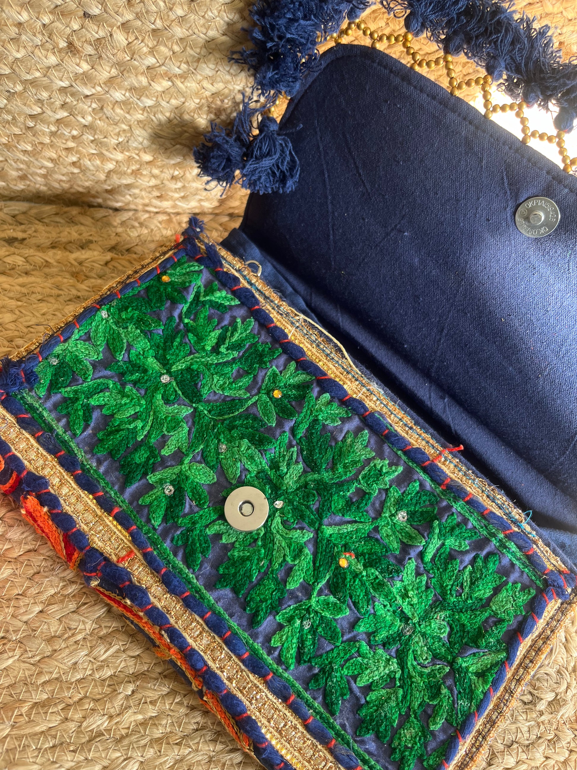 Green Blue Multi-Color Hand Embroidered patchwork Sling Bag