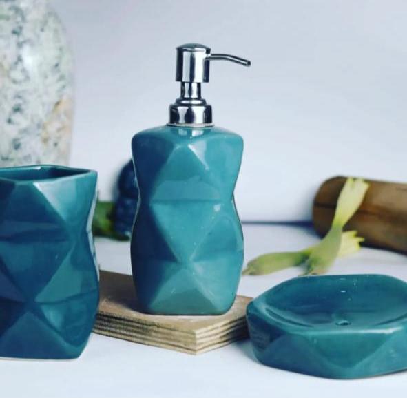 Bring a touch of sophistication and style to your bathroom with our Green Diamond Ceramic Bathroom Set. This 3-piece set includes a soap dispenser, soap bar holder, and toothbrush holder, all designed with a striking green diamond pattern that adds a modern, chic look to your space. Crafted from high-quality ceramic, this set is both durable and stylish, perfect for elevating your bathroom décor while keeping your essentials organized. Enjoy a more refined daily routine with this eye-catching set.