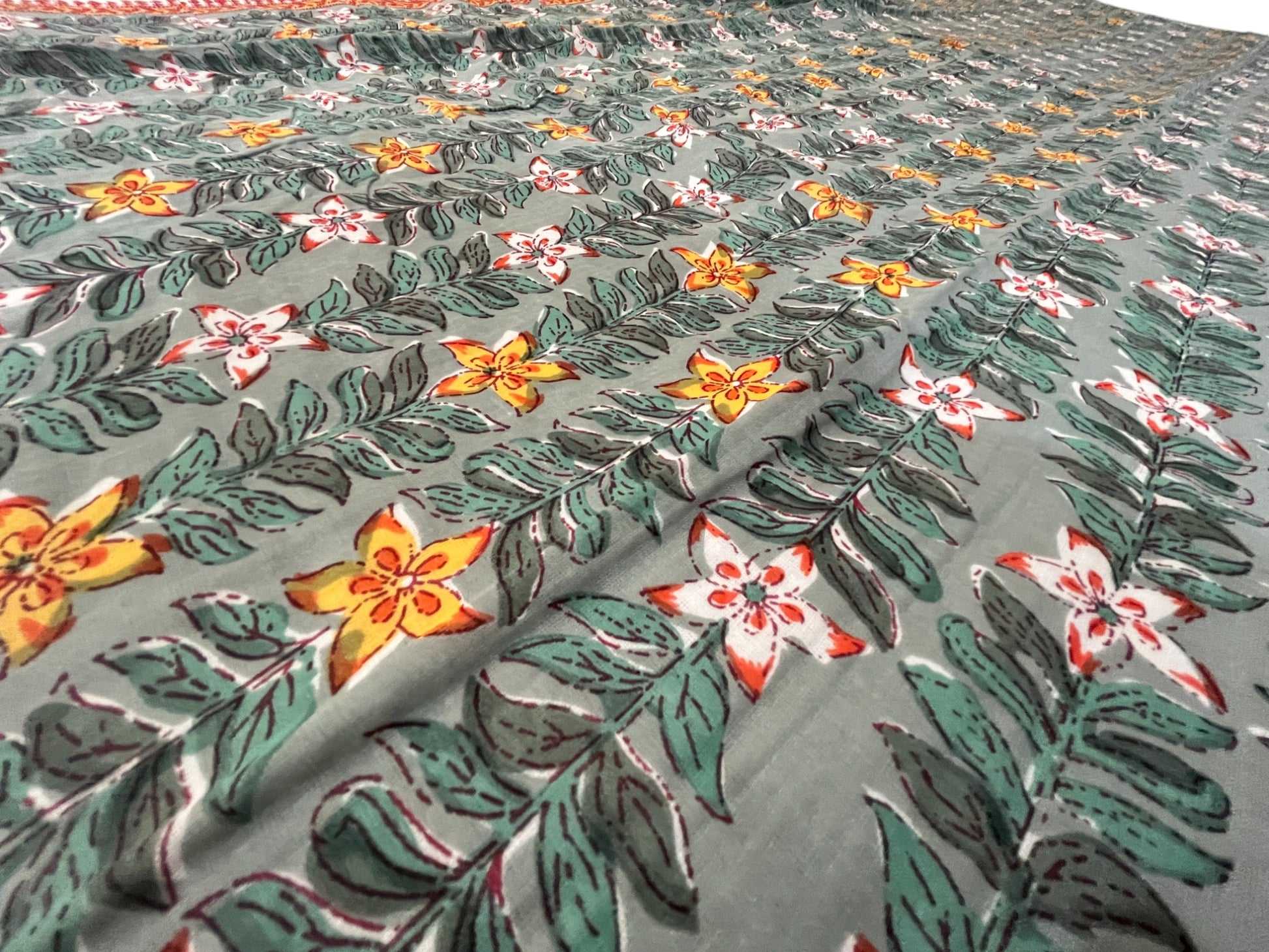 Green Floral Printed Double Bed Dohar
