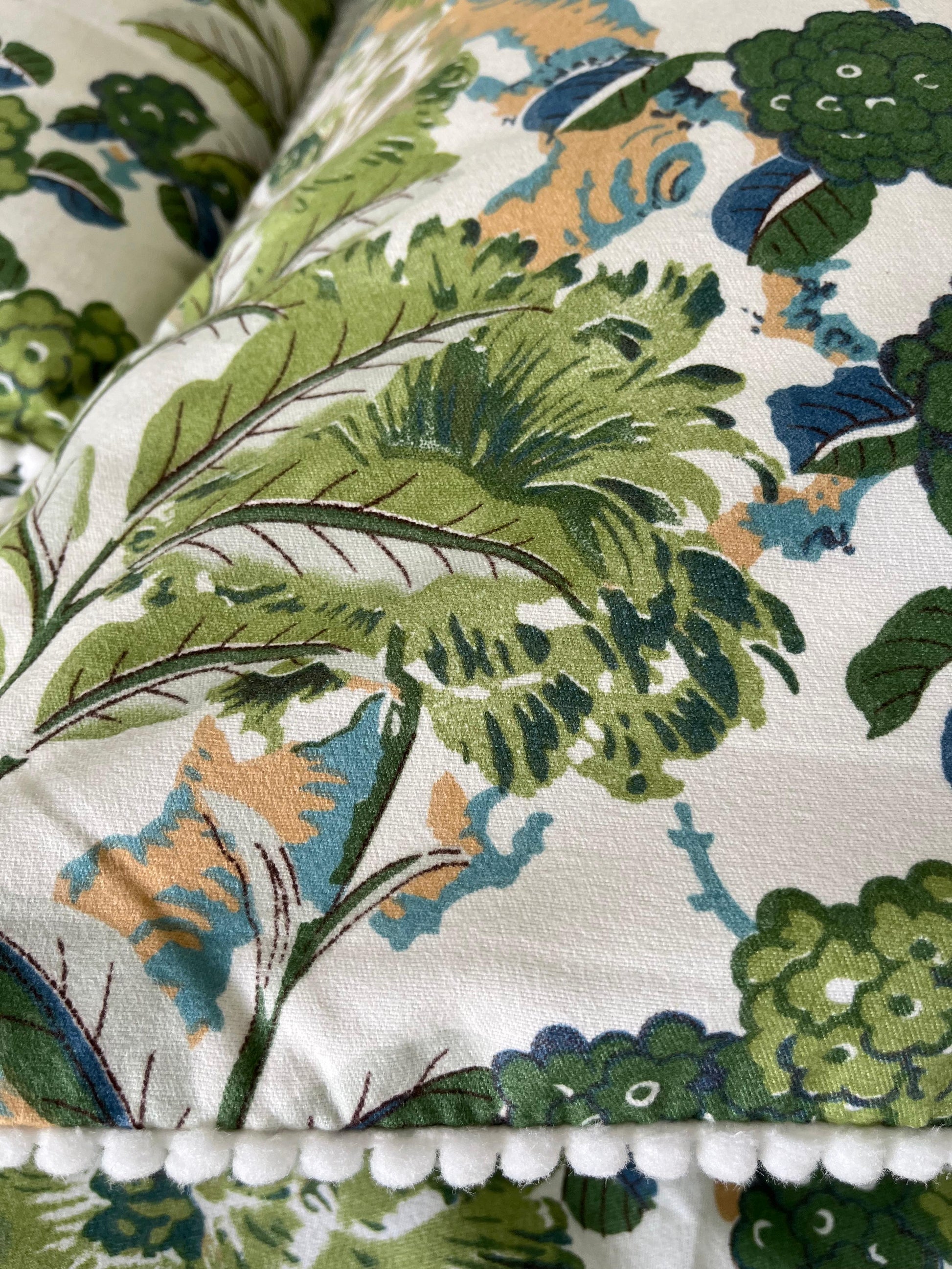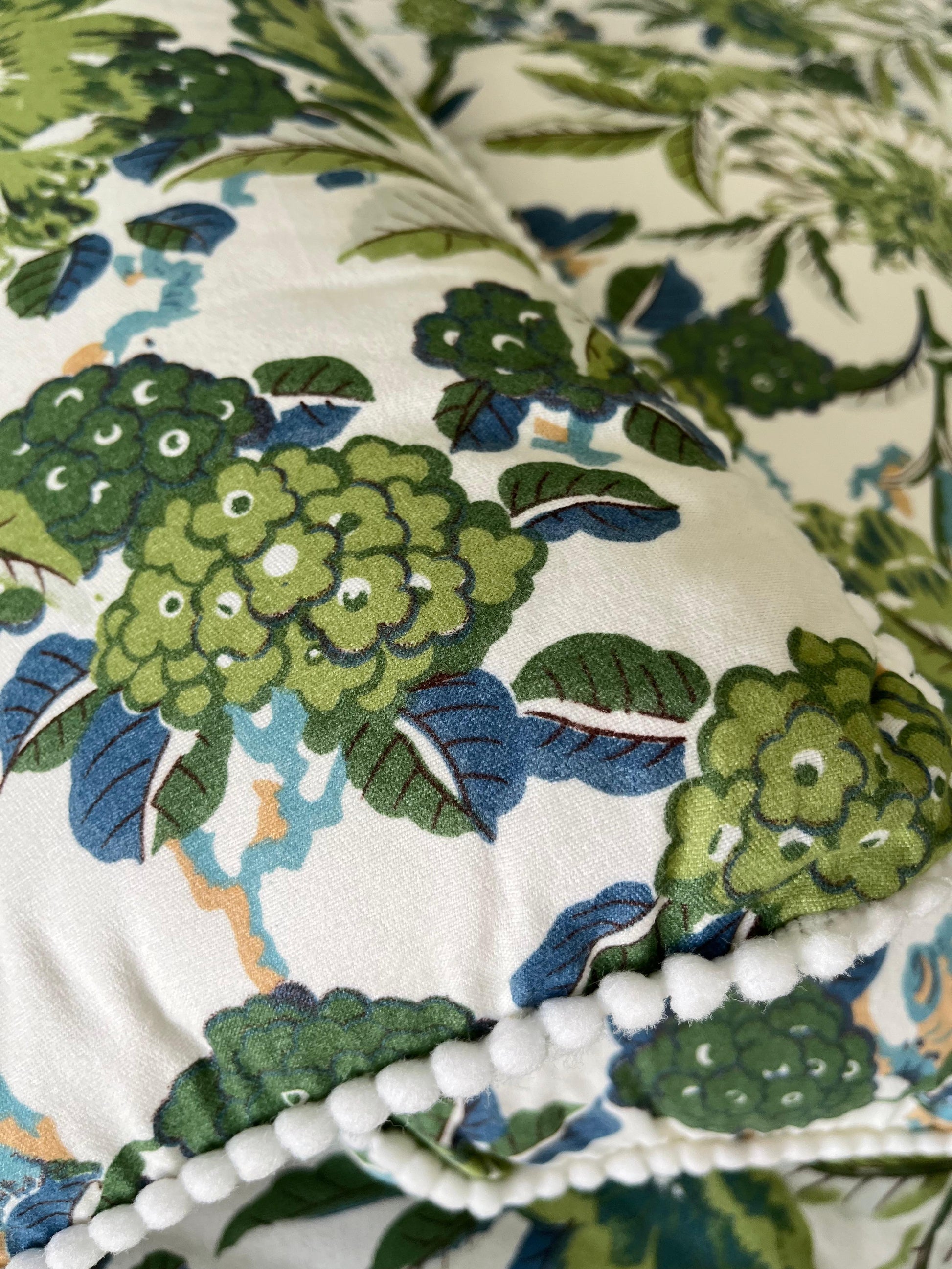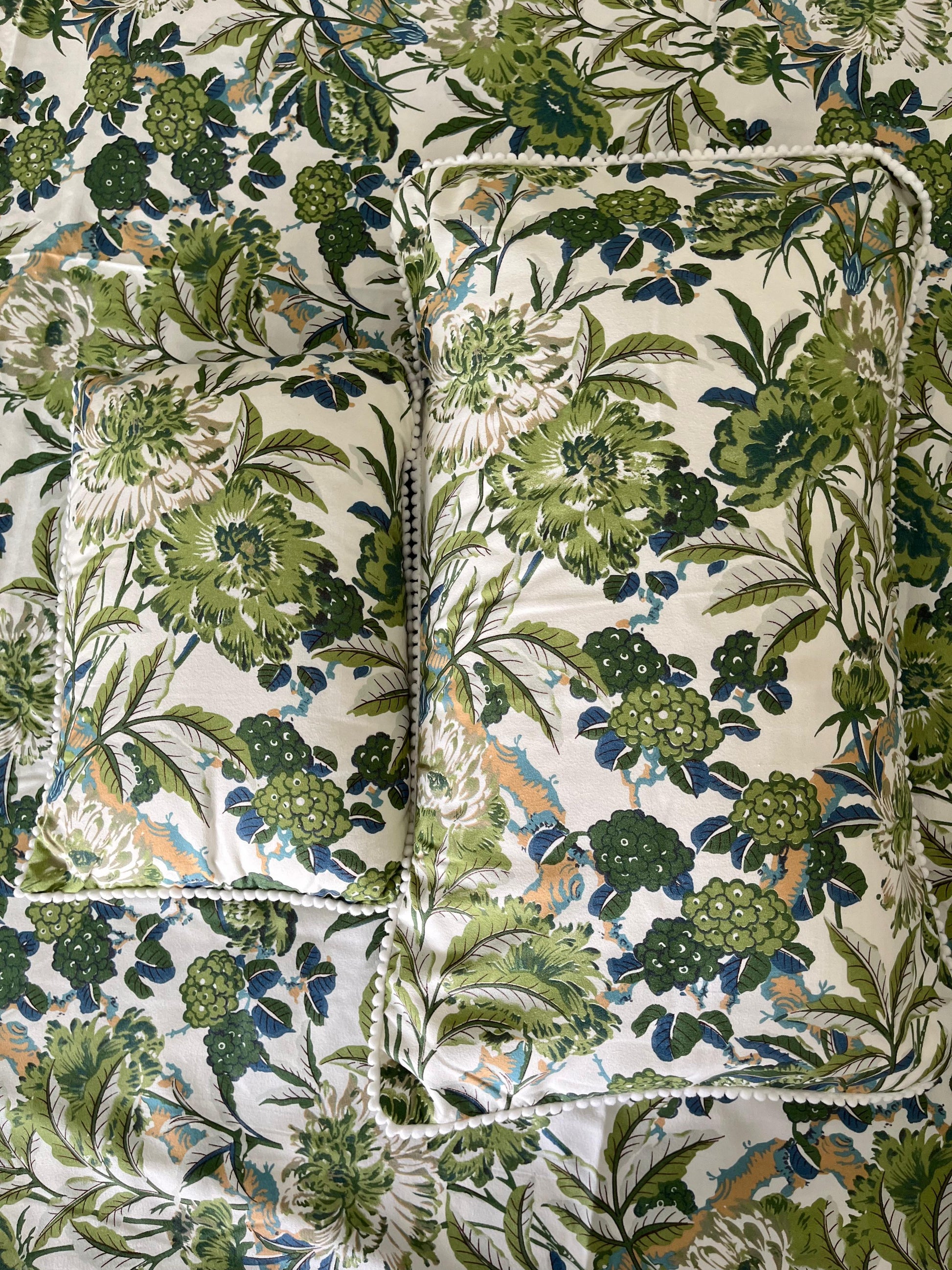 - Design: Green Garden Floral Print with Frill Pillows and Cushion Covers
