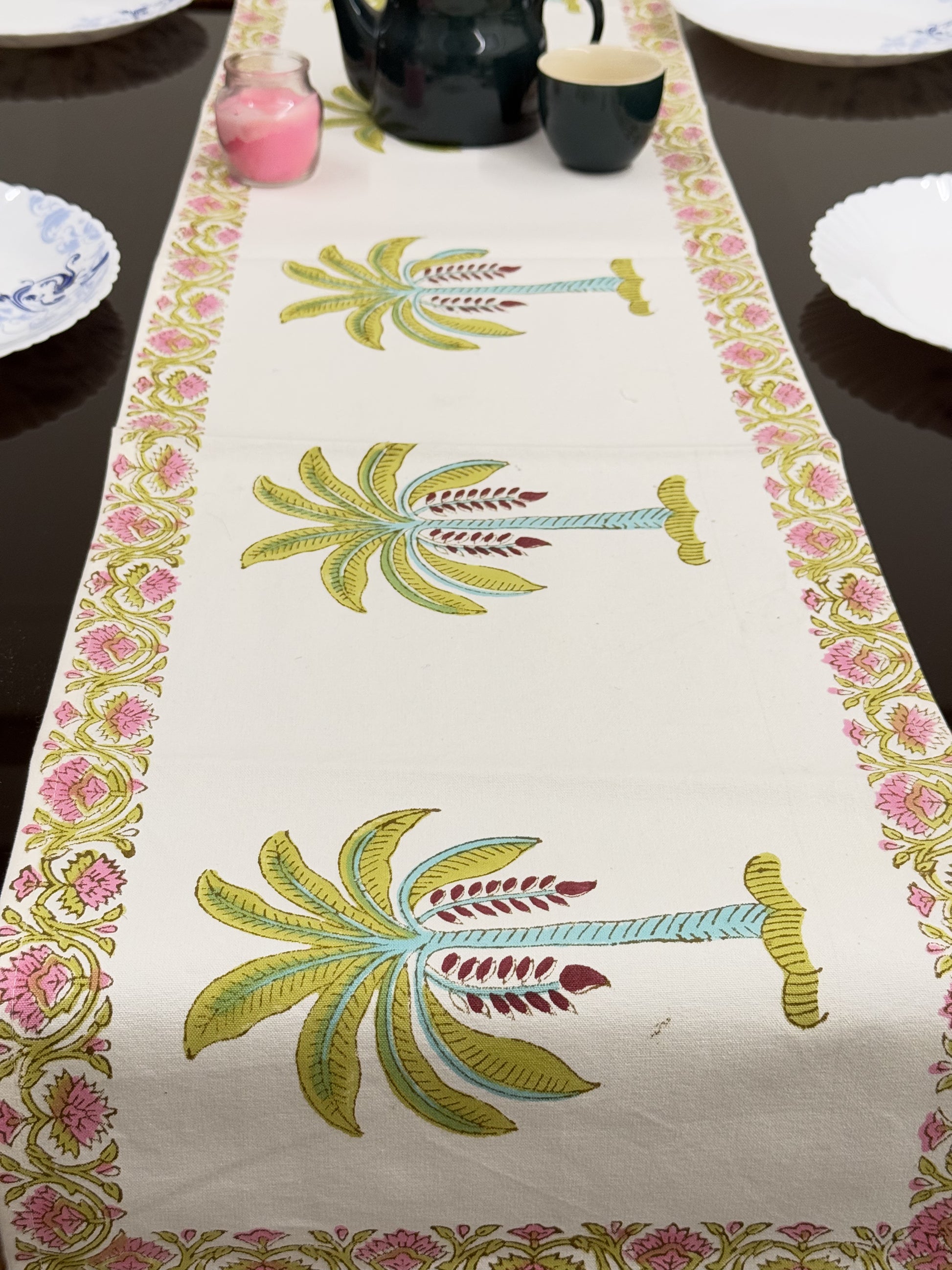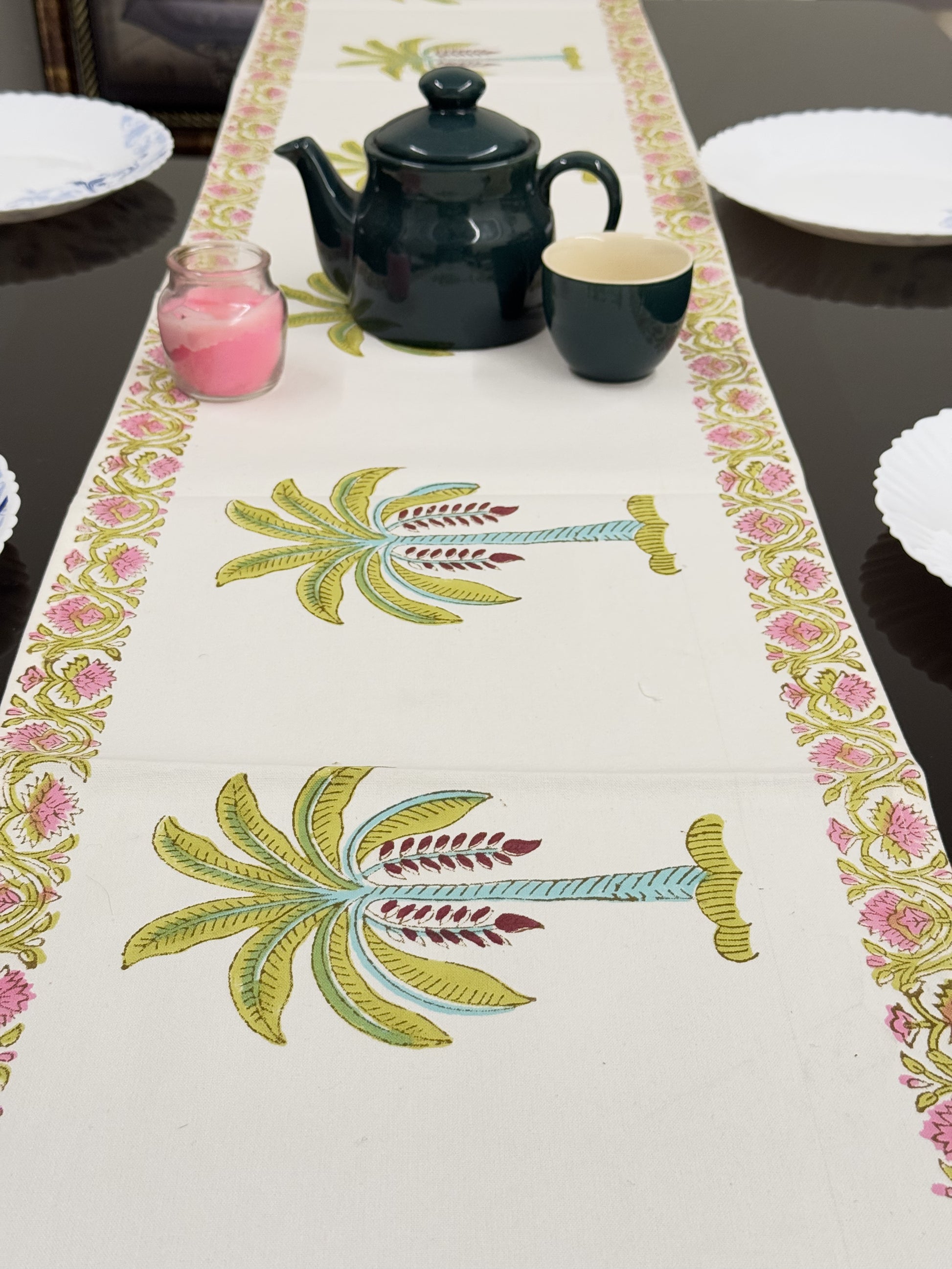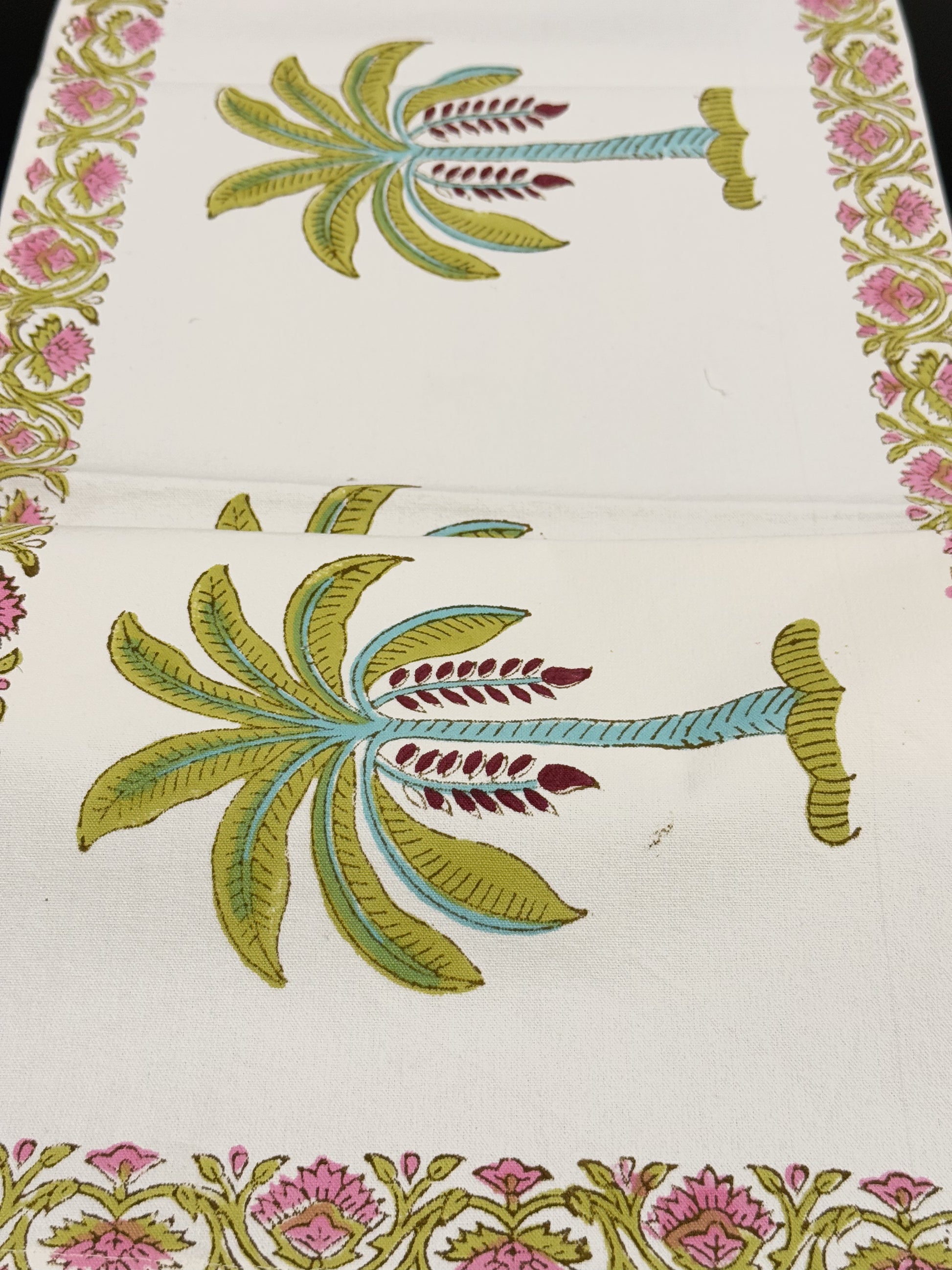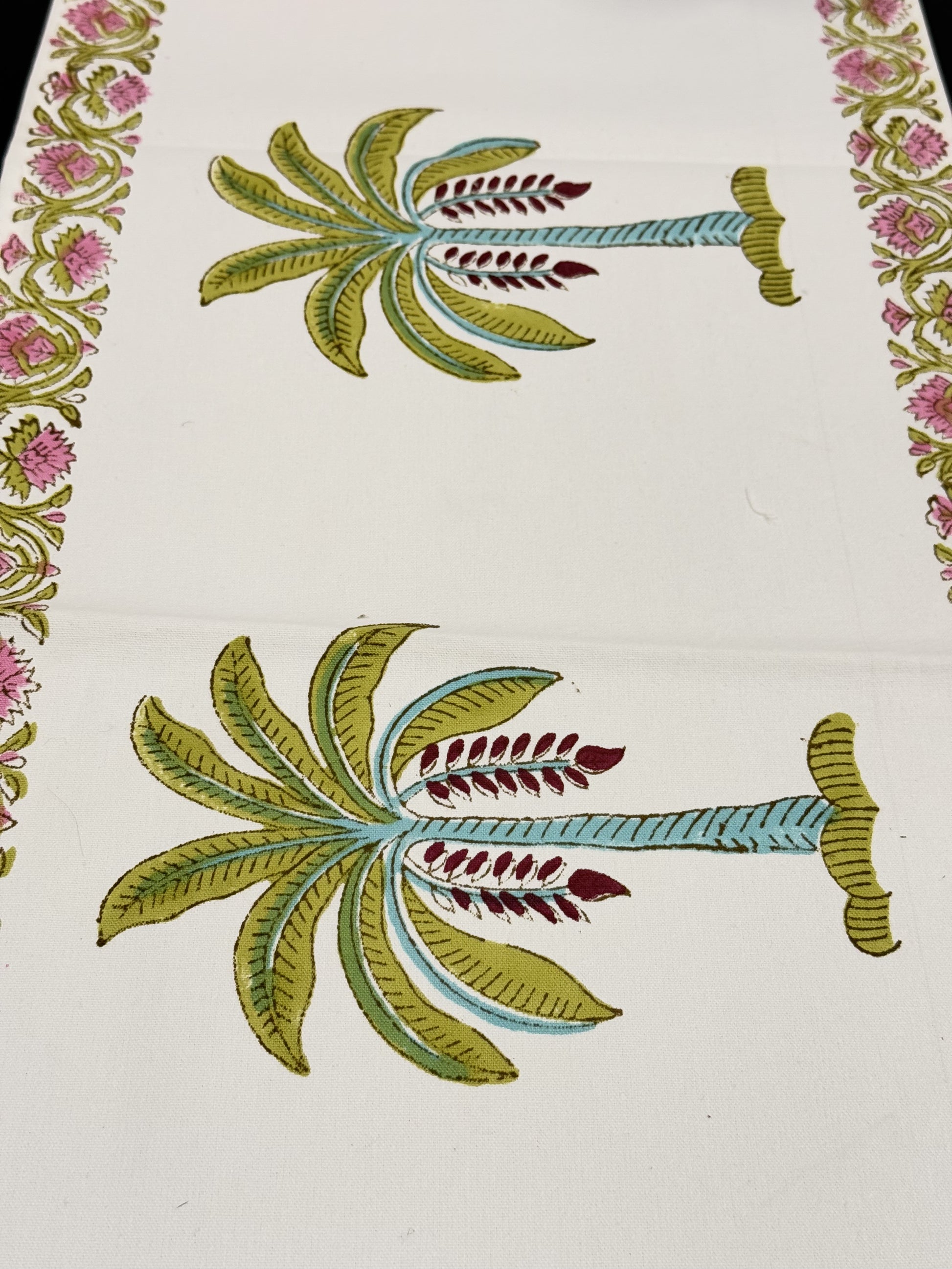 Green Palm Tree Cotton Rajasthani Handblock Table Runner