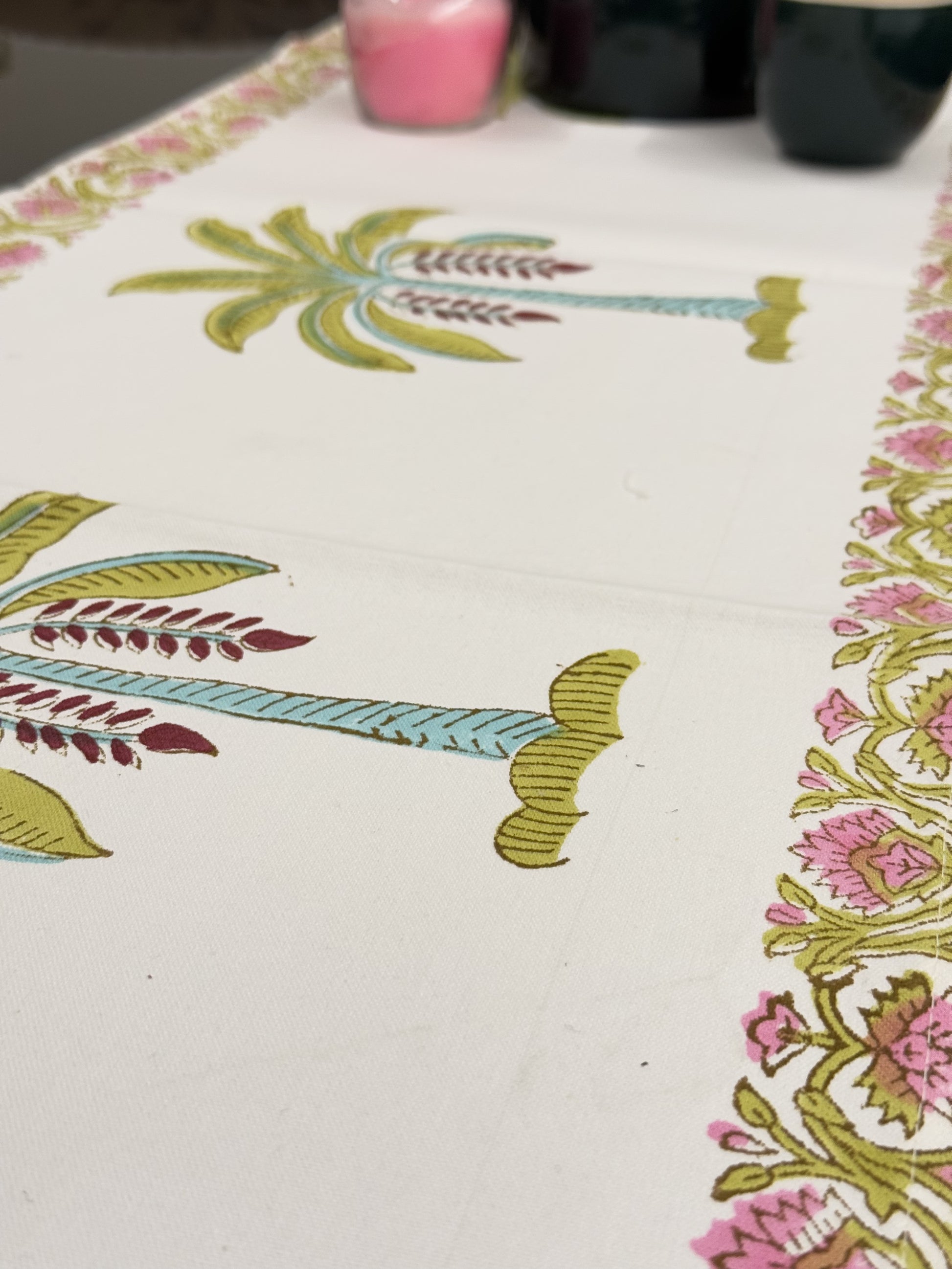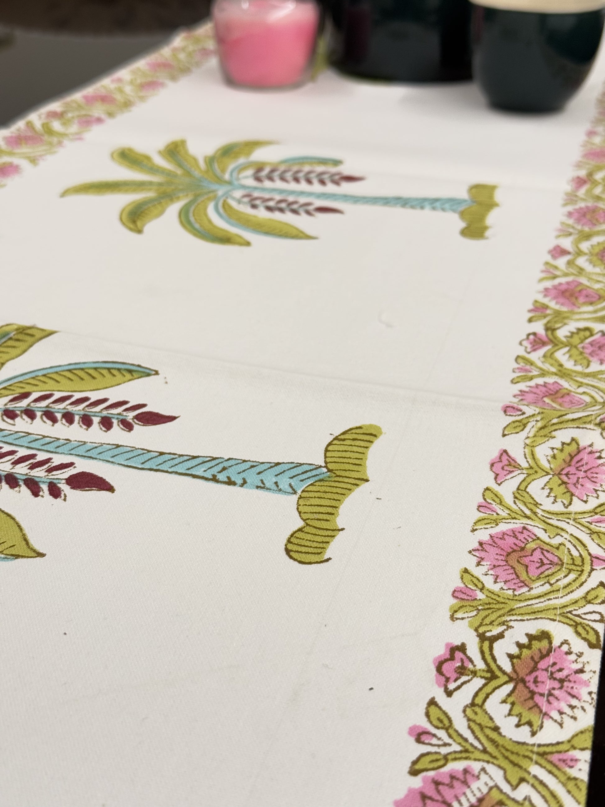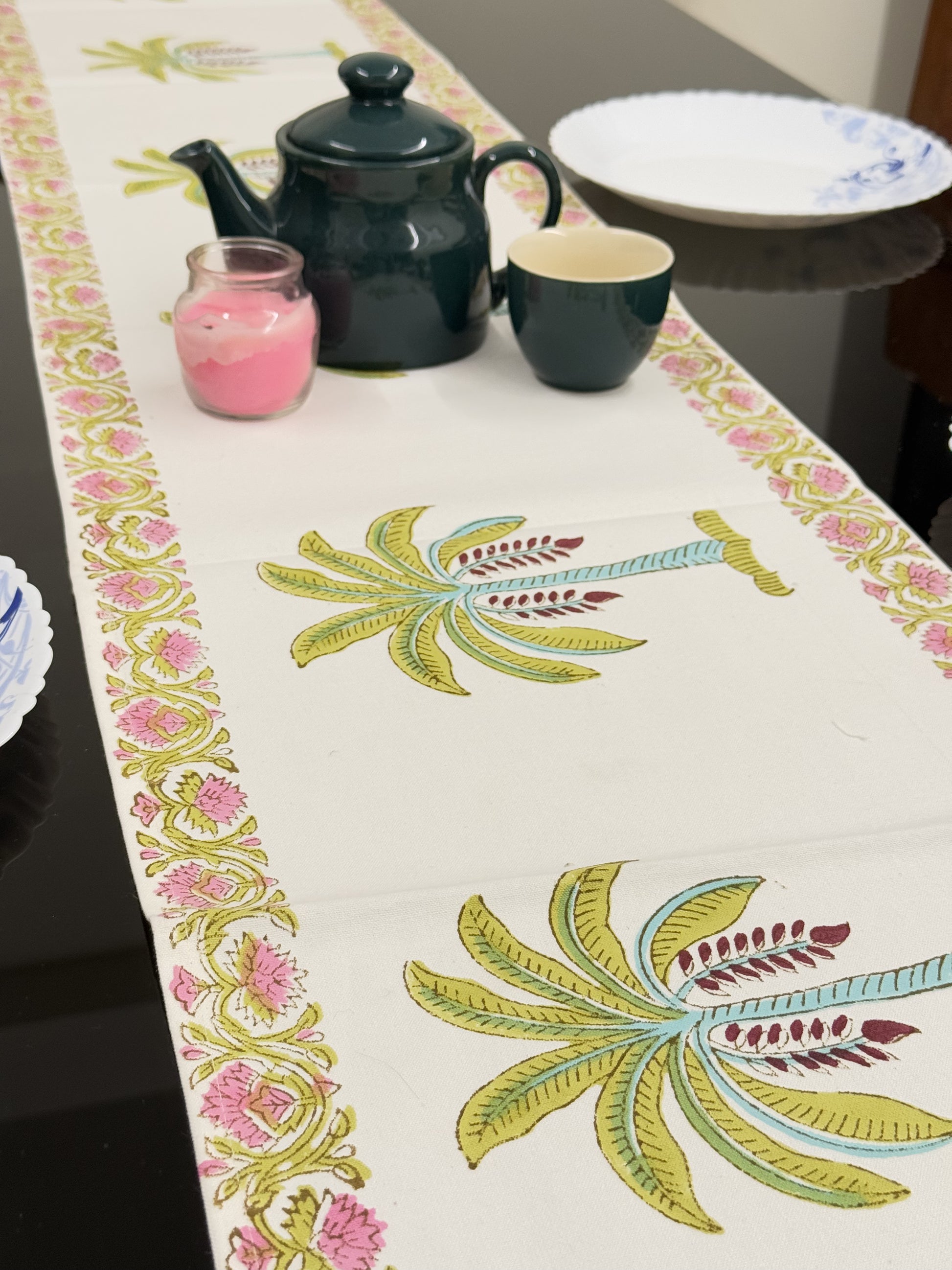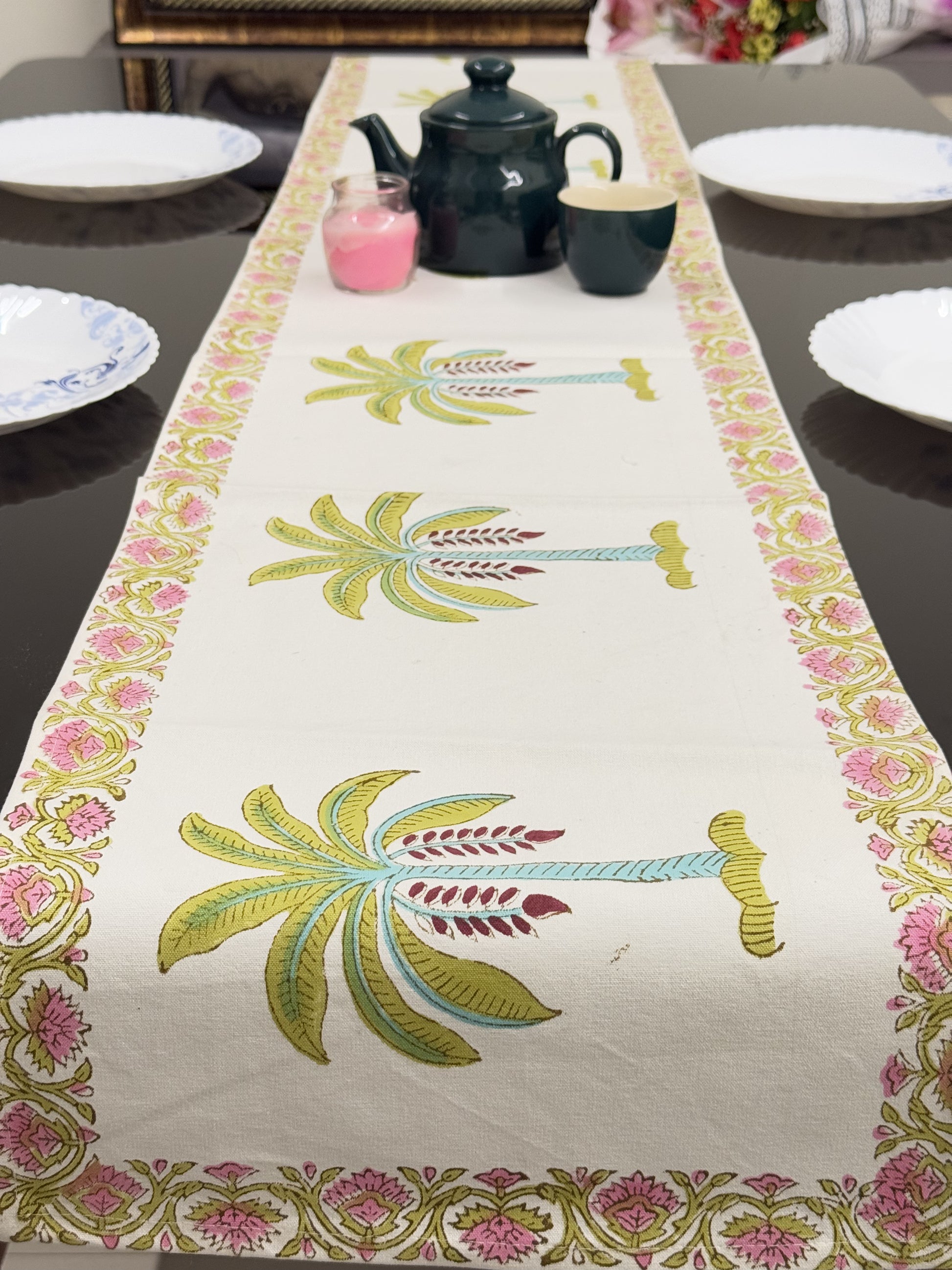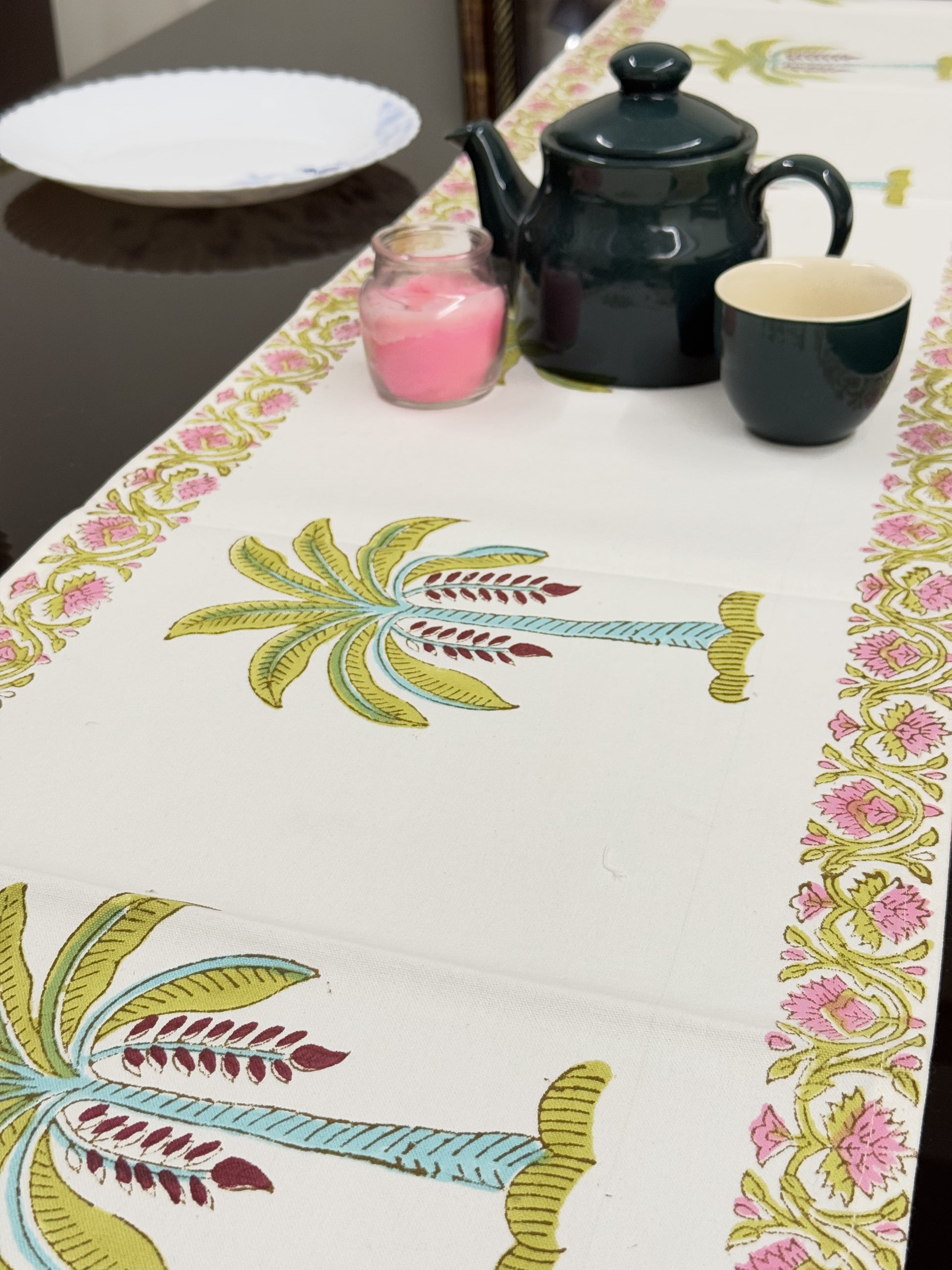 Green Palm Tree Cotton Rajasthani Handblock Table Runner