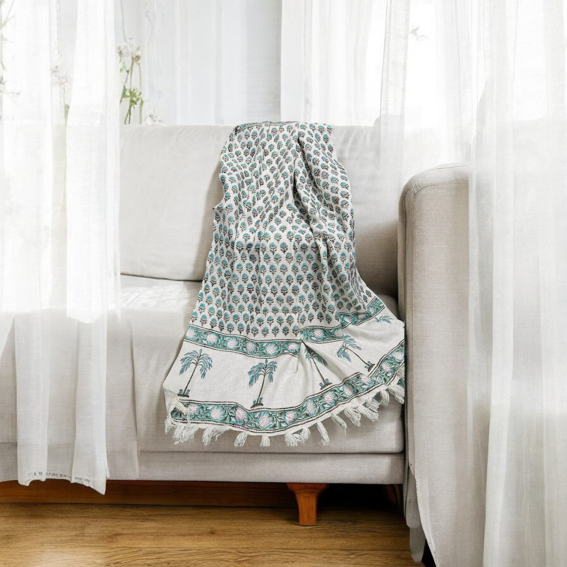 Green Palm Tree White Color Premium Handblock TNT Throws