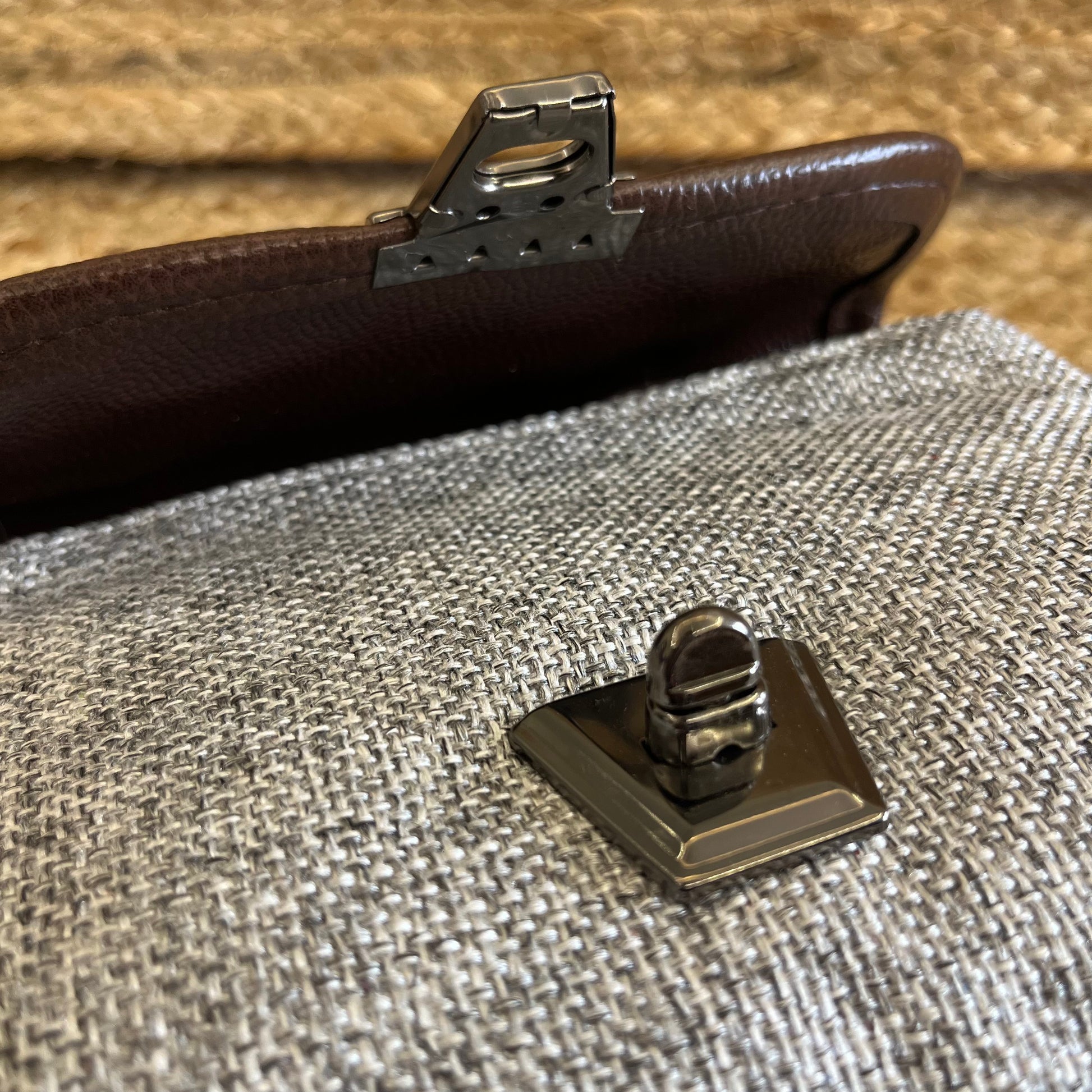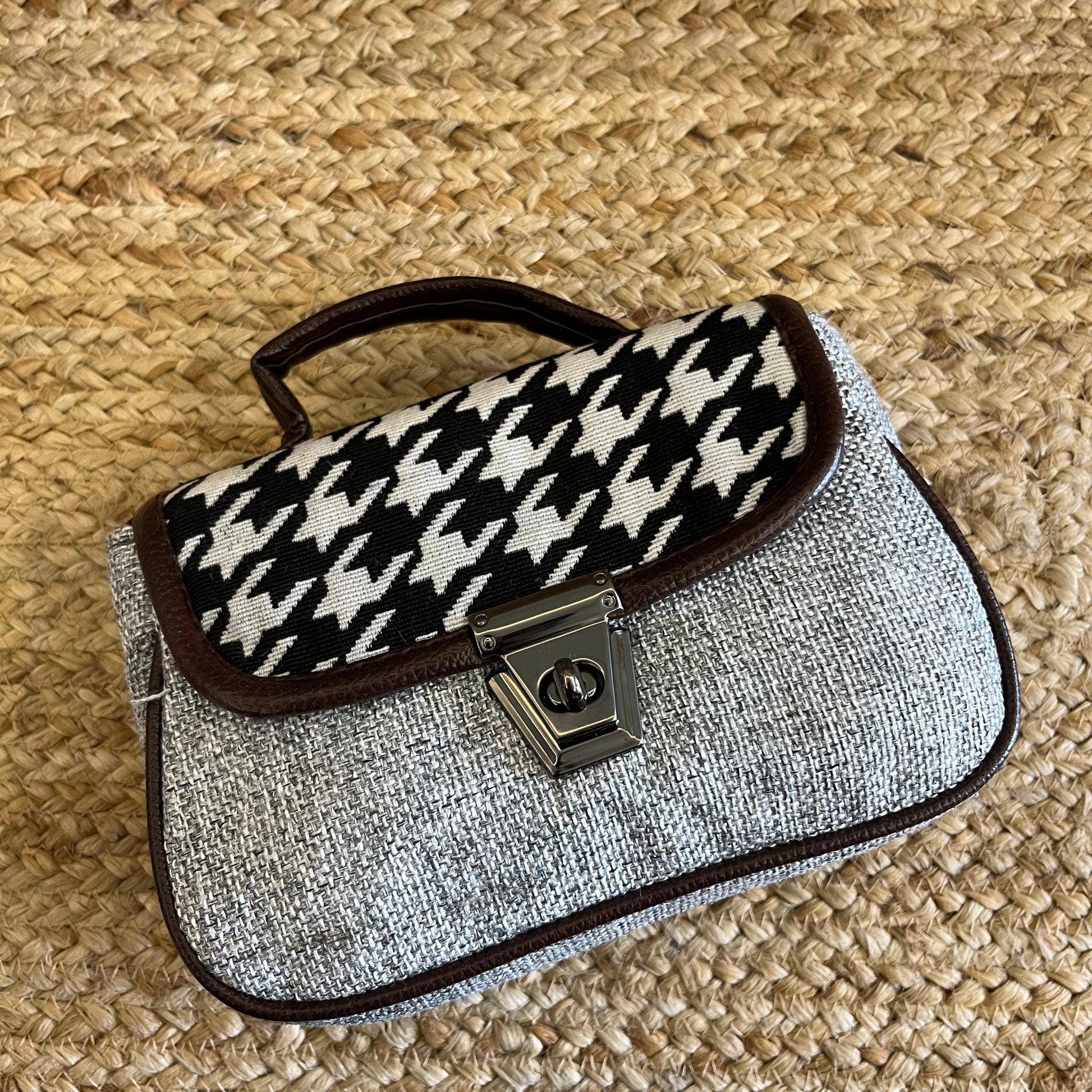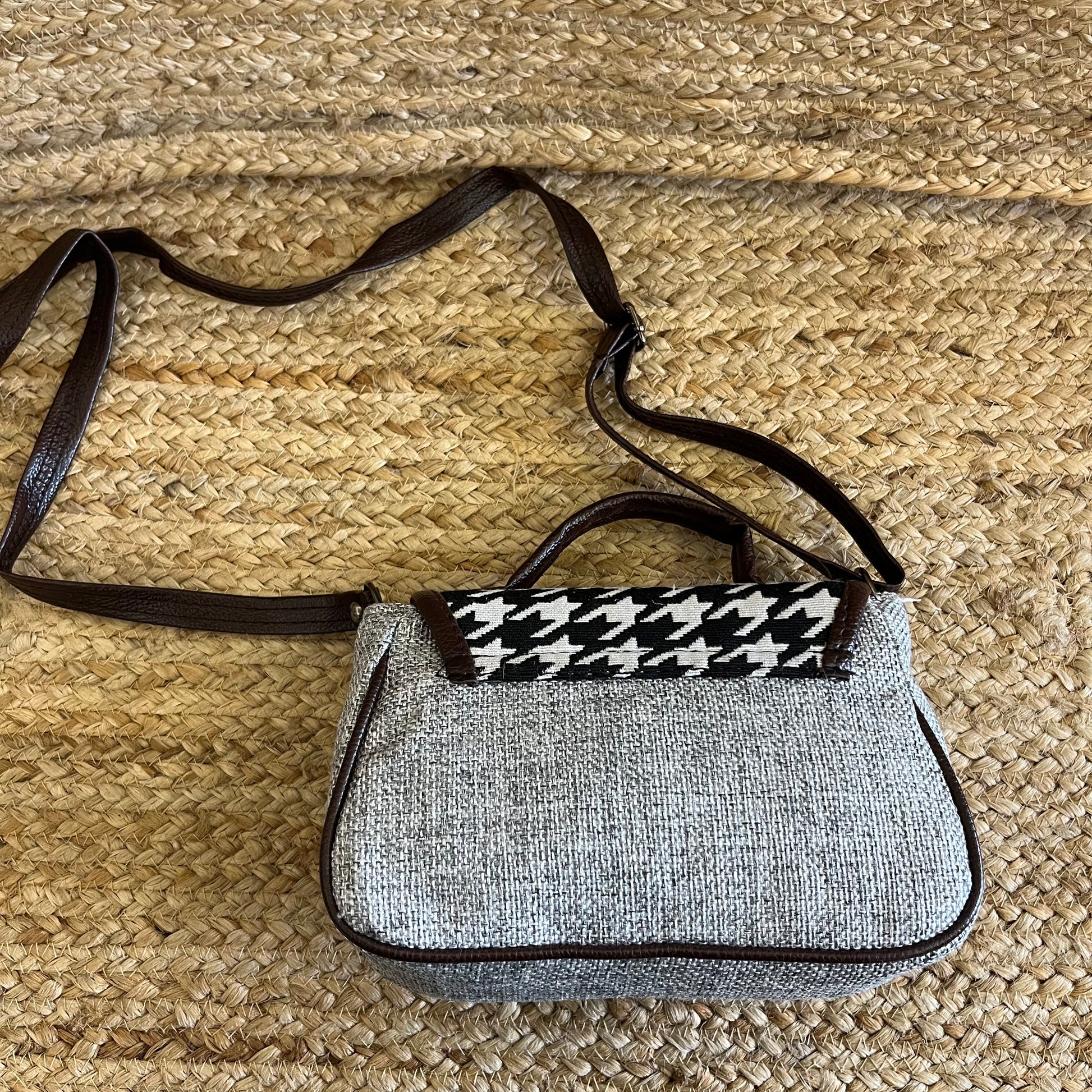 Grey Black Handblock Printed Vegan Leather Sling Bag