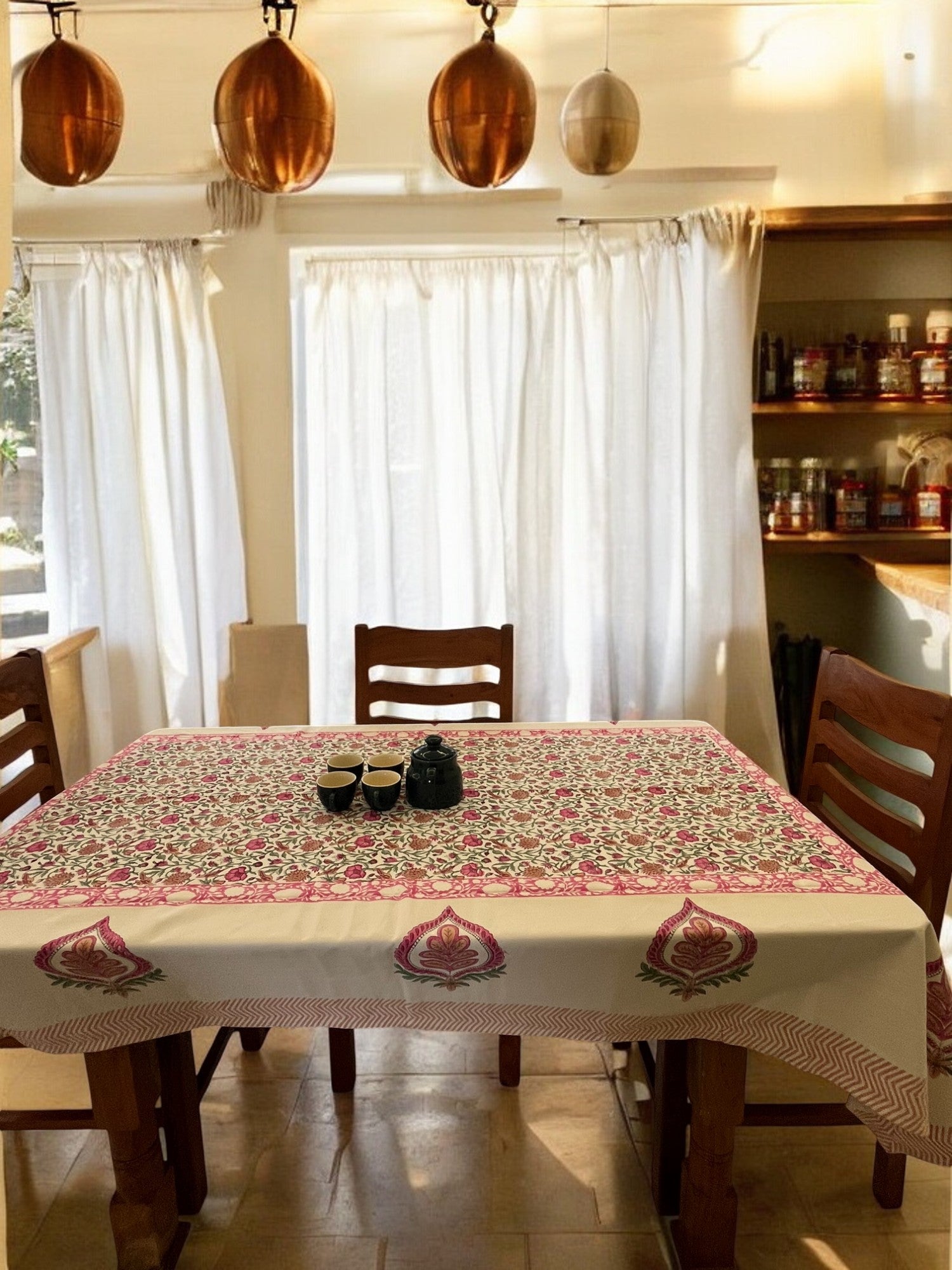 Enhance your dining experience with our Table Cover. Hand-blocked for a unique design, these high-quality pieces bring practicality and style to your dining table.