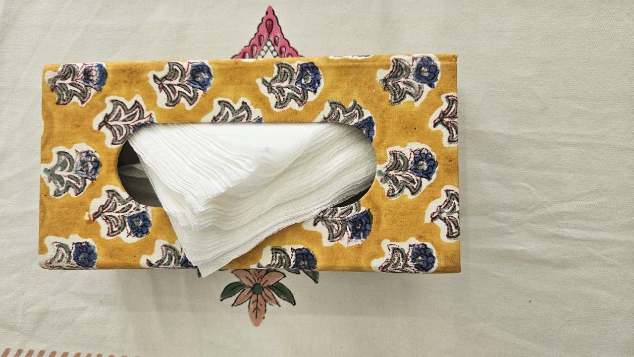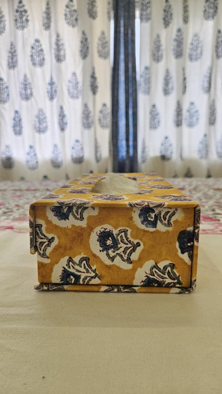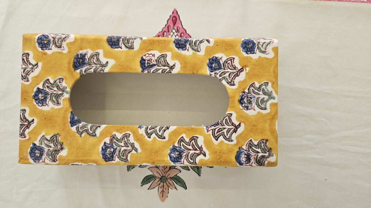 Yellow Floral Handblock Tissue Box