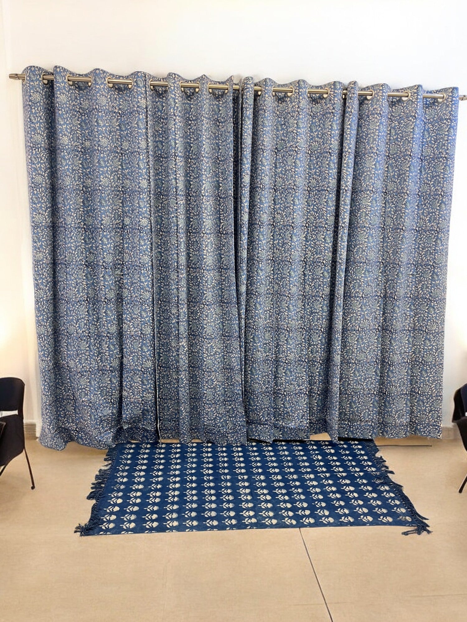 Stylish Handblock Blue Curtain Set to renovate your living space. Beautifully crafted from the high quality of fabric and meticulously handblock printed, these blue curtains add a touch of poise and style to any room. In this set, you will receive 2 curtains with 7 feet for sufficient window coverage. Up your home decor today.