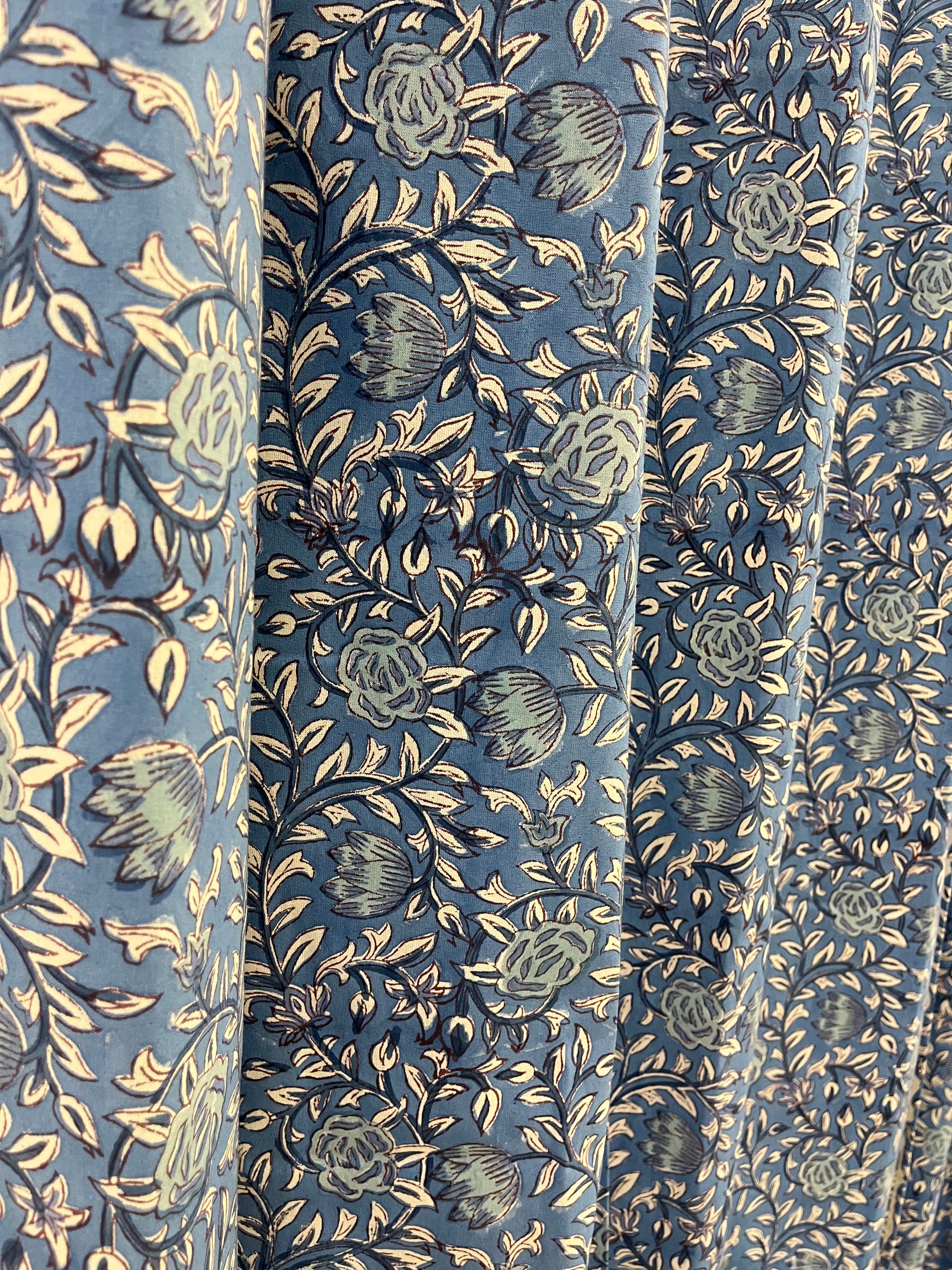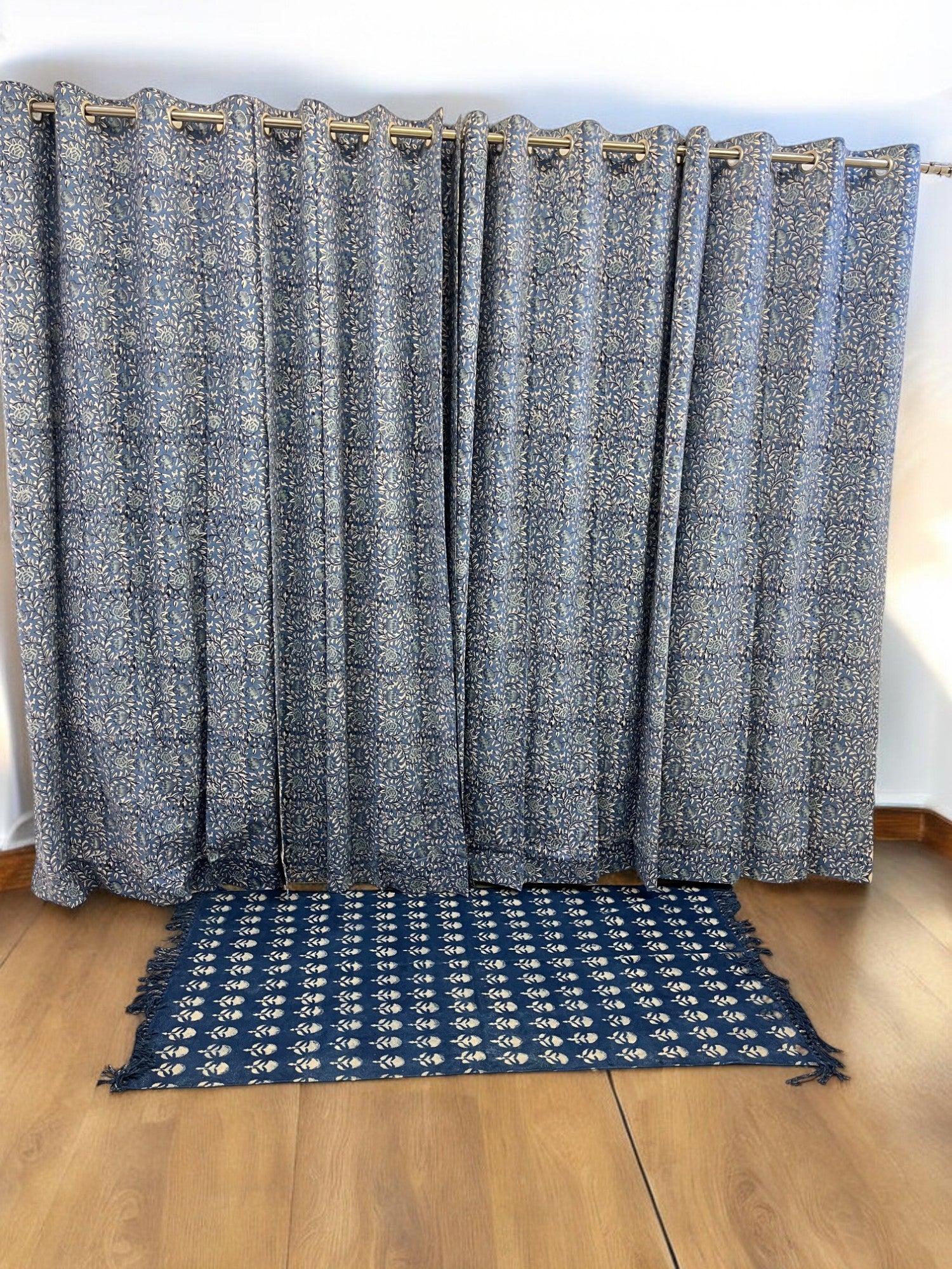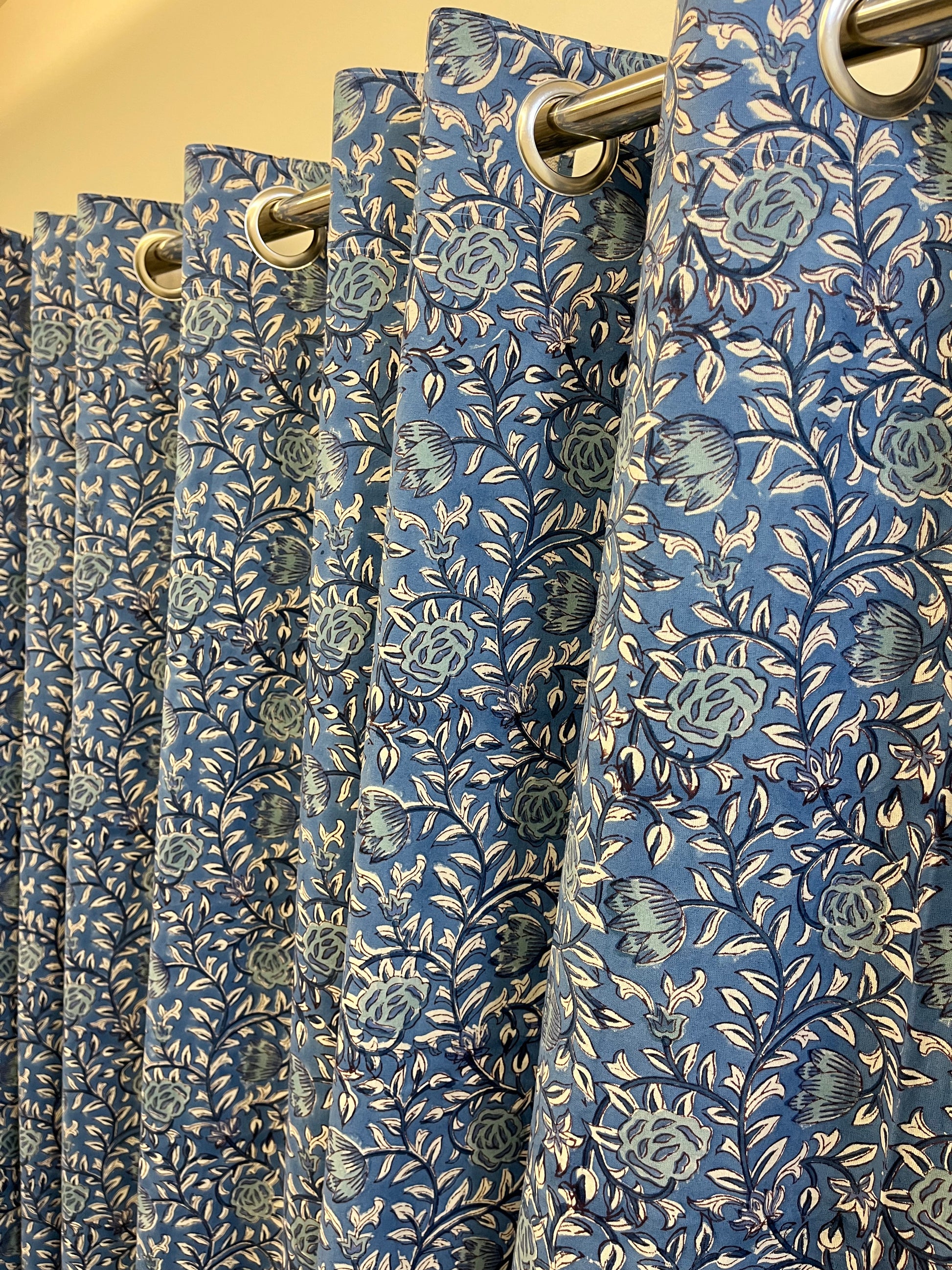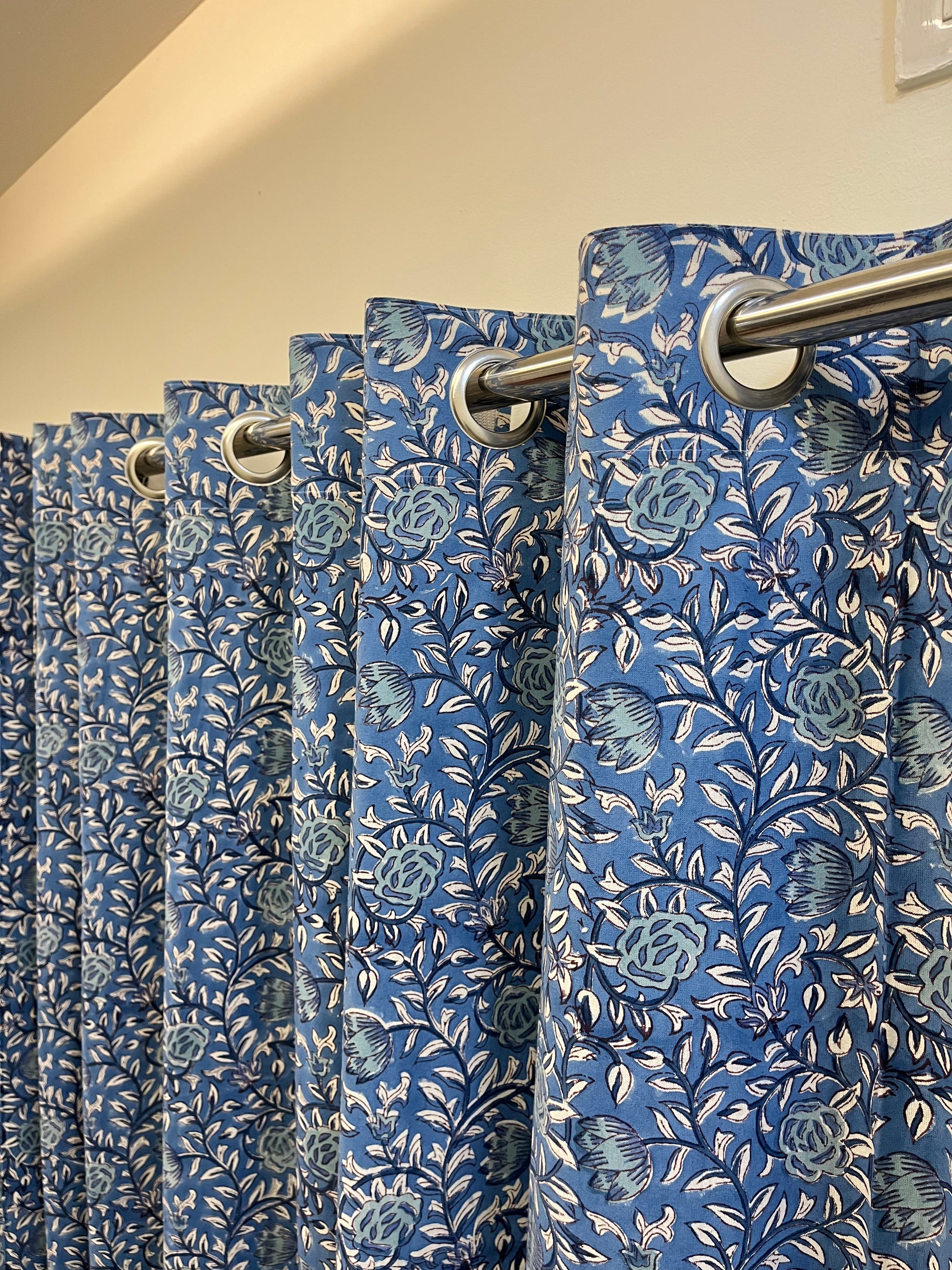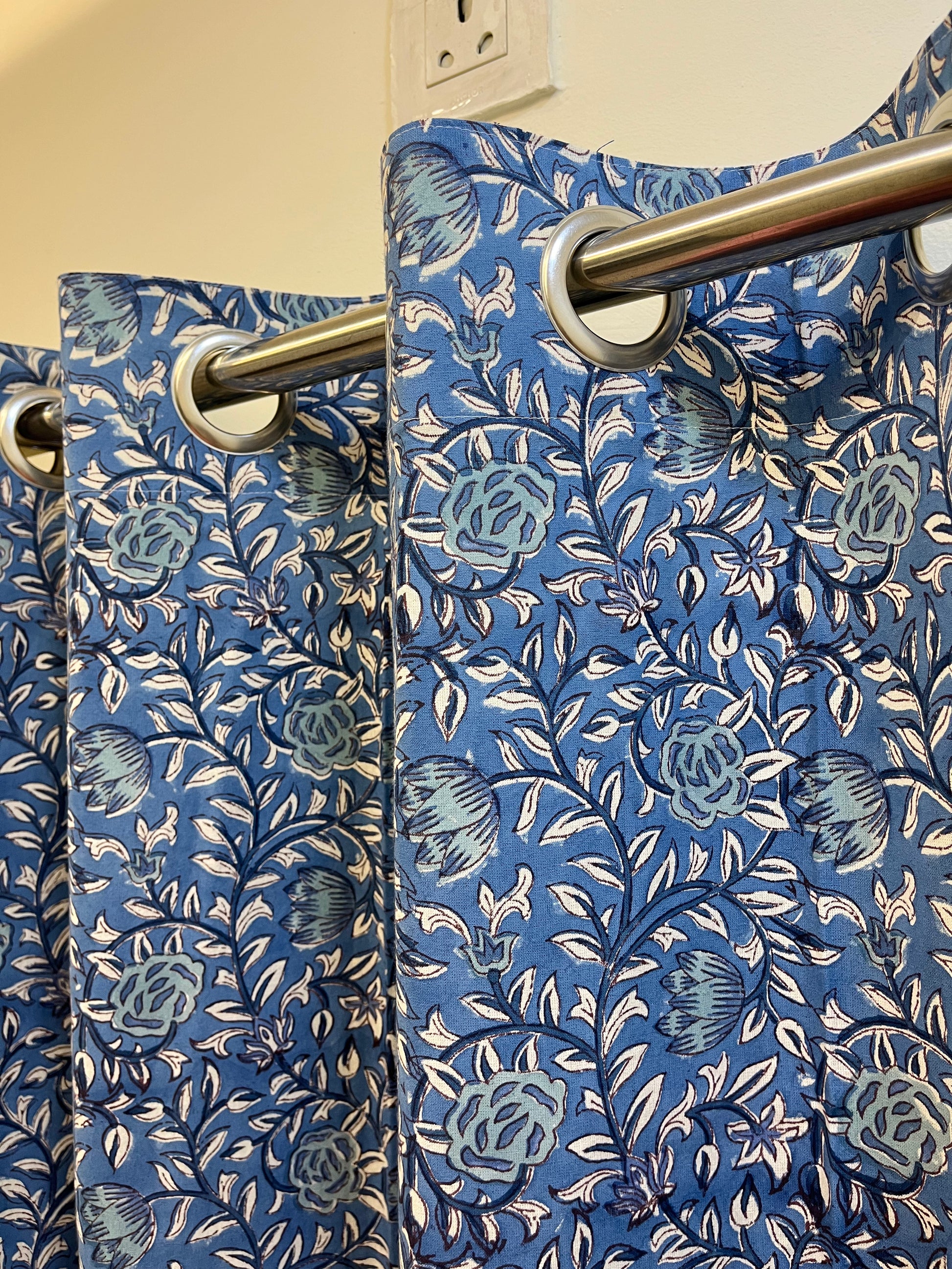- White and Blue Floral Handblock Curtain