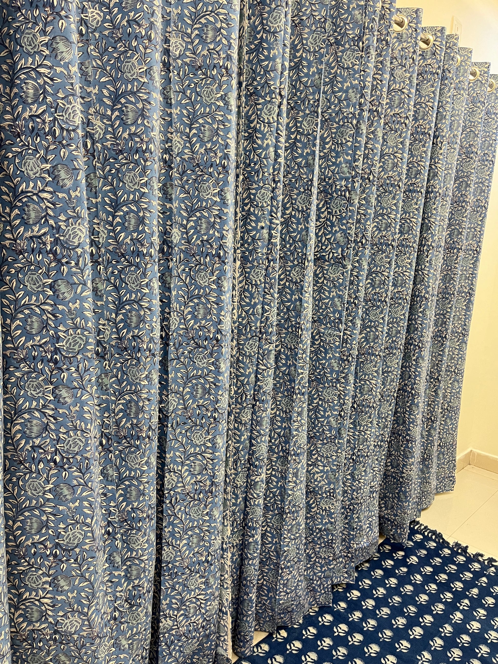 Handblock Blue Curtain Set of 2 (7 Feet)