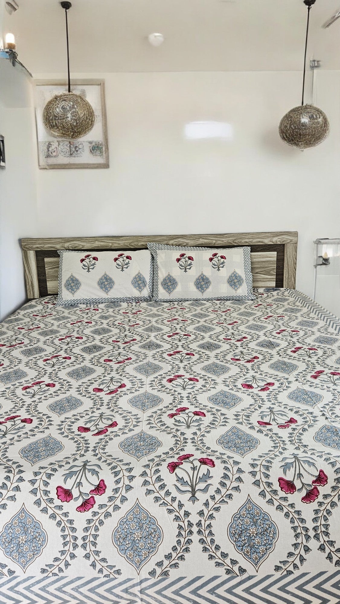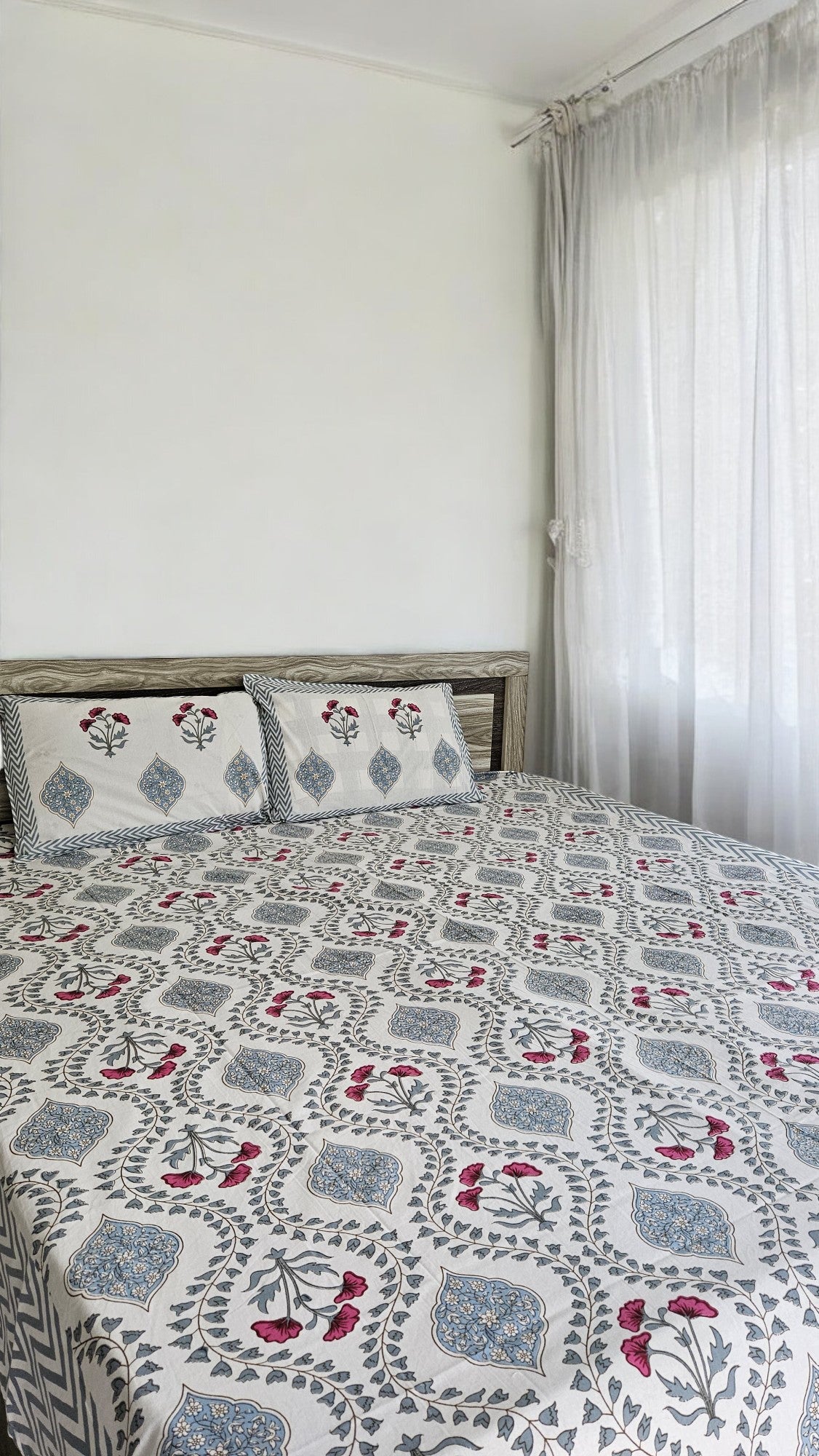 Elevate your bedroom decor with the Red and Blue Floral Handblock Double Bedsheet. Crafted from 100% premium cotton, this eco-friendly bedsheet features an exquisite floral design in vibrant red and blue shades, printed using traditional Indian handblock techniques. Tailored for double beds, it offers luxurious comfort, durability, and timeless style. Perfect for daily use or special occasions, this handcrafted bedsheet adds a beautiful blend of tradition and elegance to your space.
