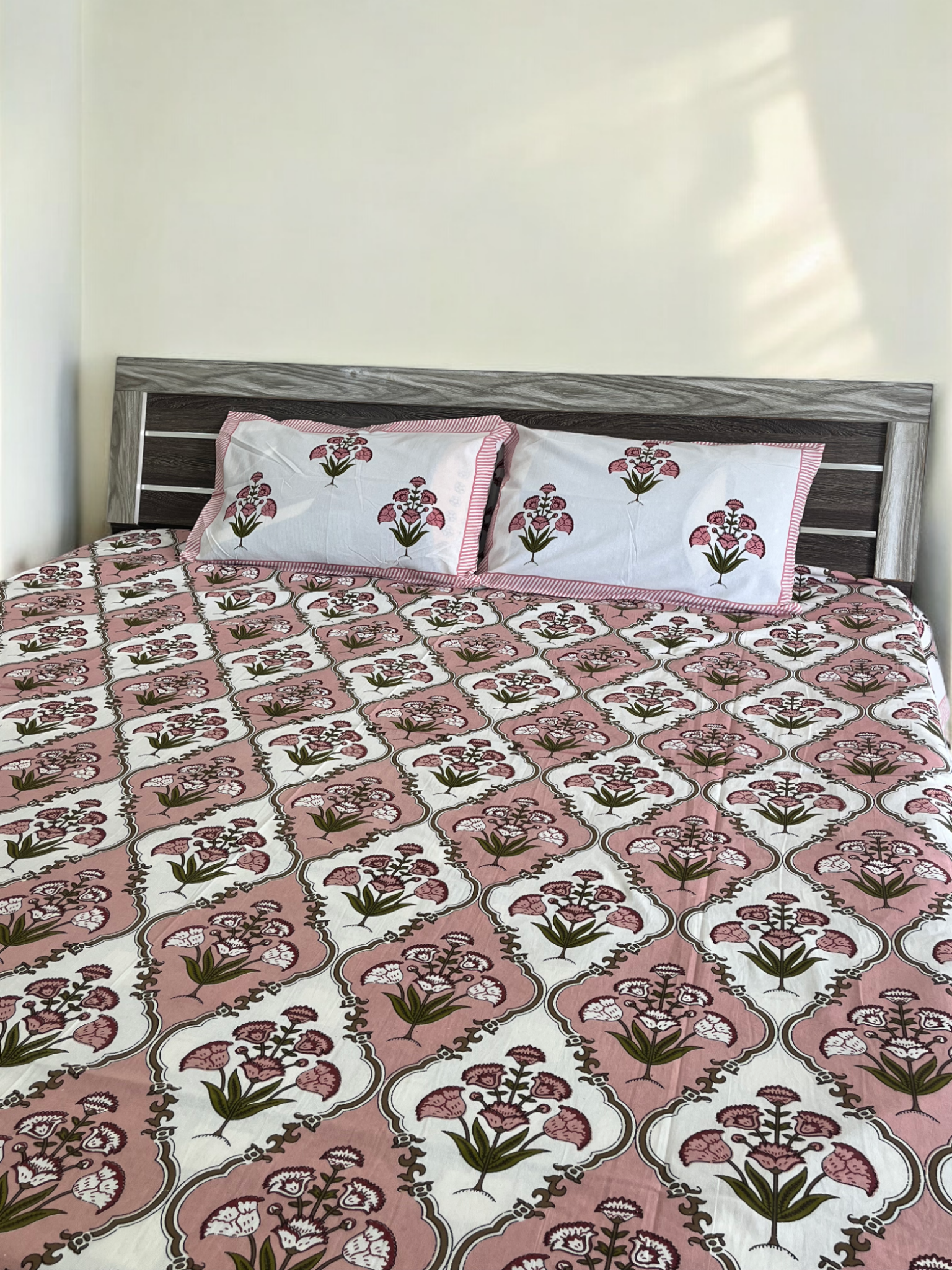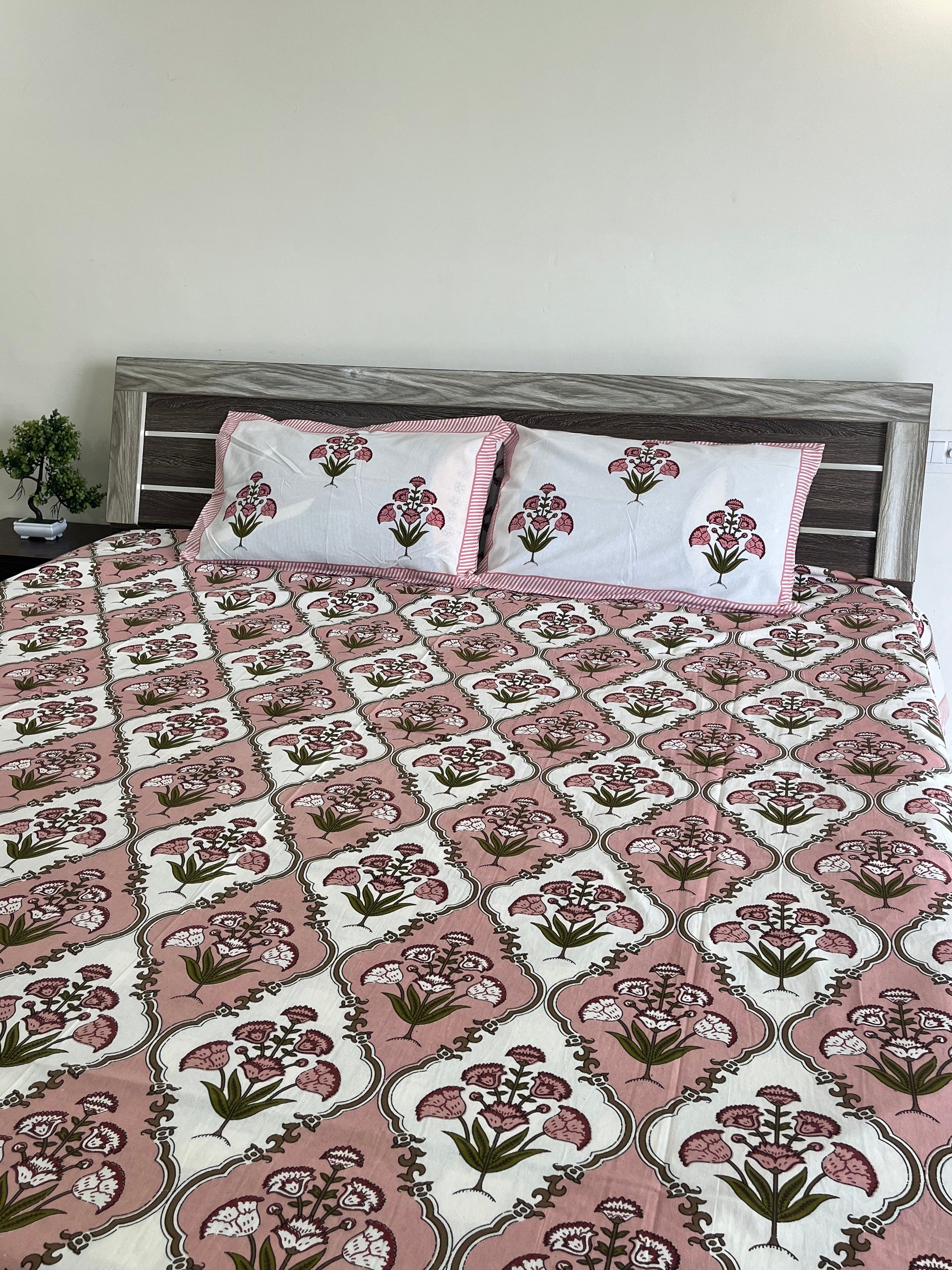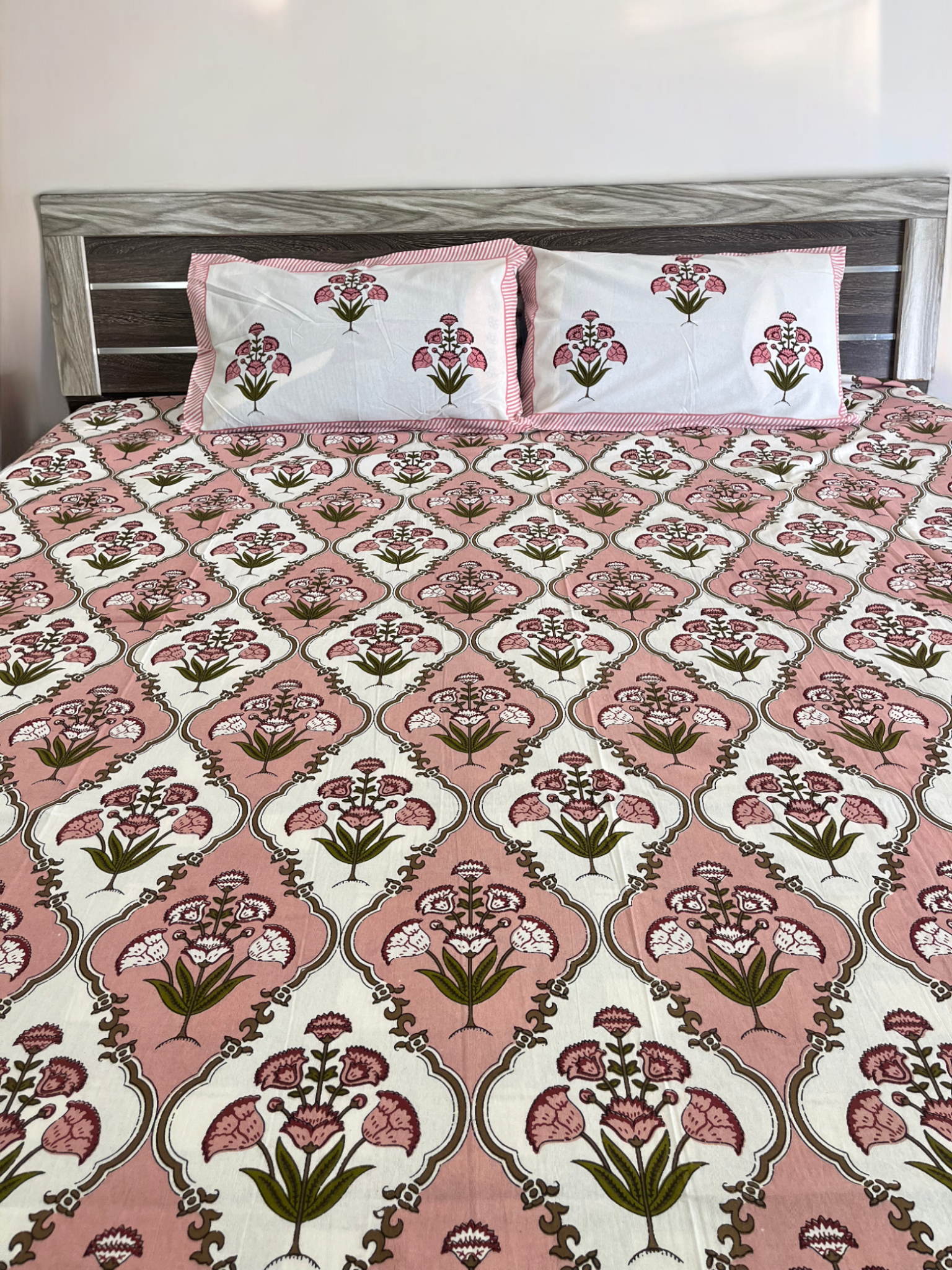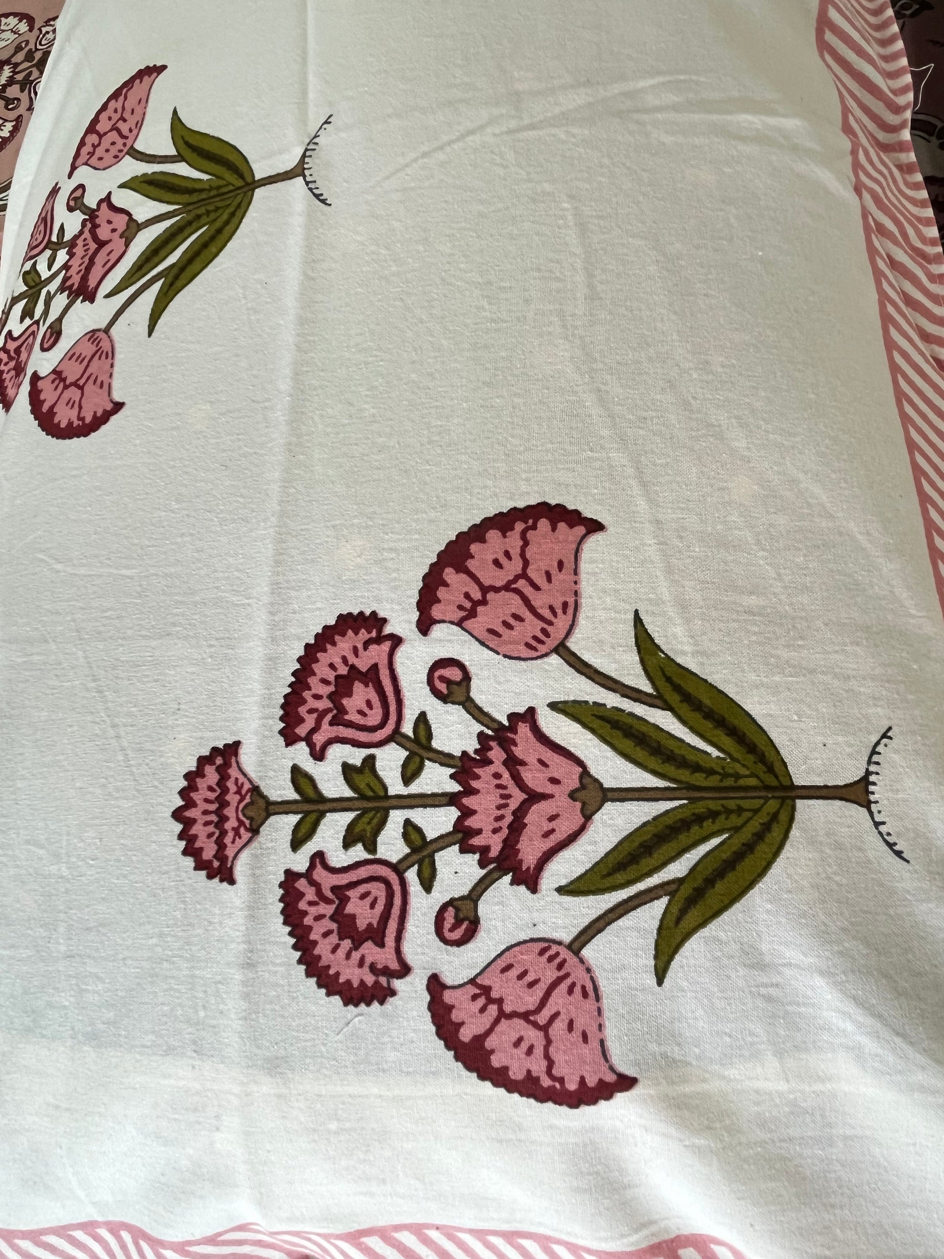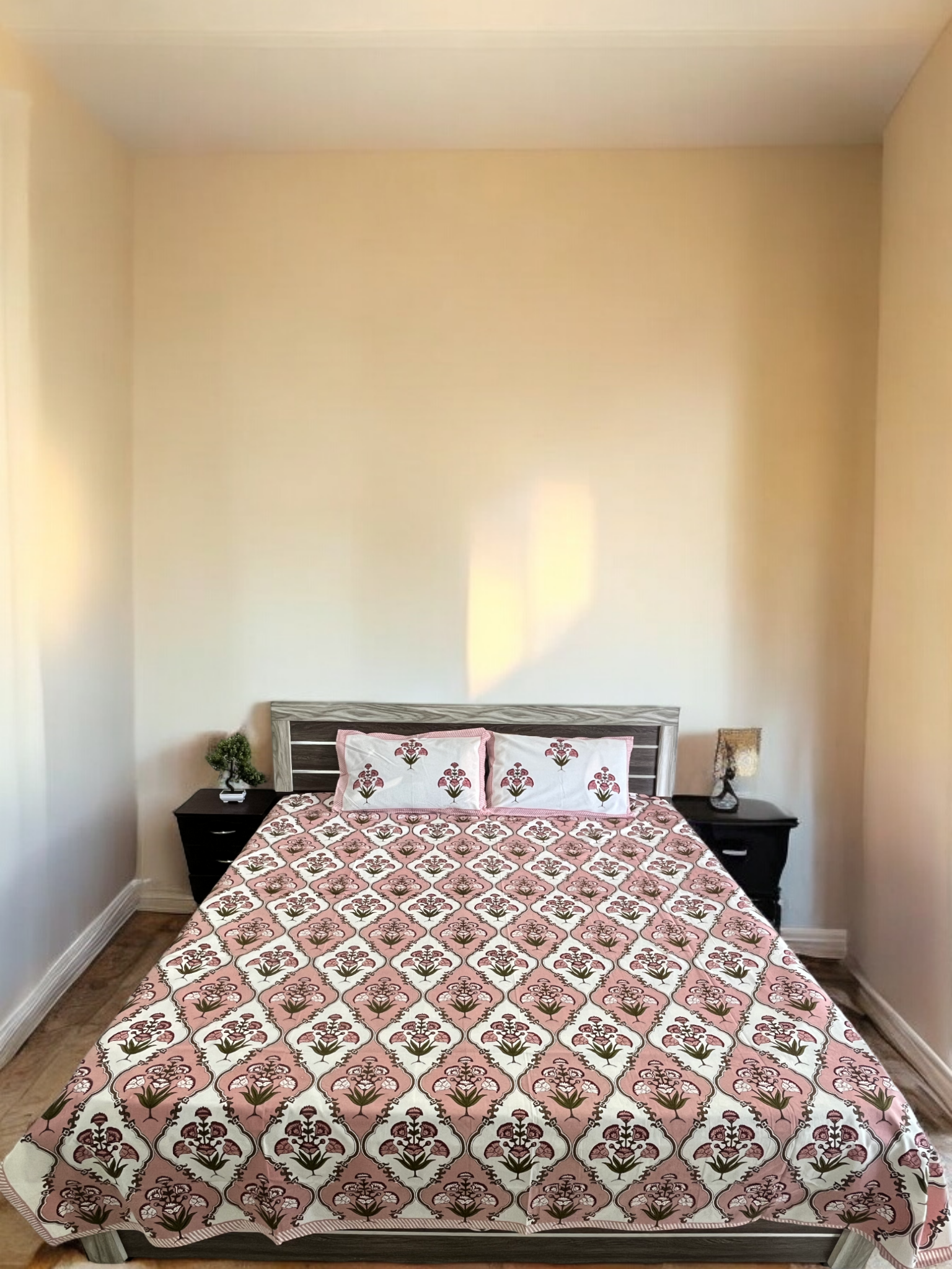 Add a touch of elegance and charm to your bedroom with the Handblock Peach Floral Double Bedsheet. Made from 100% premium cotton, this eco-friendly bedsheet features a beautiful peach floral design, handprinted using traditional Indian Handblock techniques. Designed for double beds, it offers both comfort and style, transforming your space with vibrant artistry and sophistication. Ideal for everyday use or special occasions, this Handblock floral bedsheet brings timeless beauty and a peaceful atmosphere to your home decor. Shop now for a blend of comfort, tradition, and elegance!