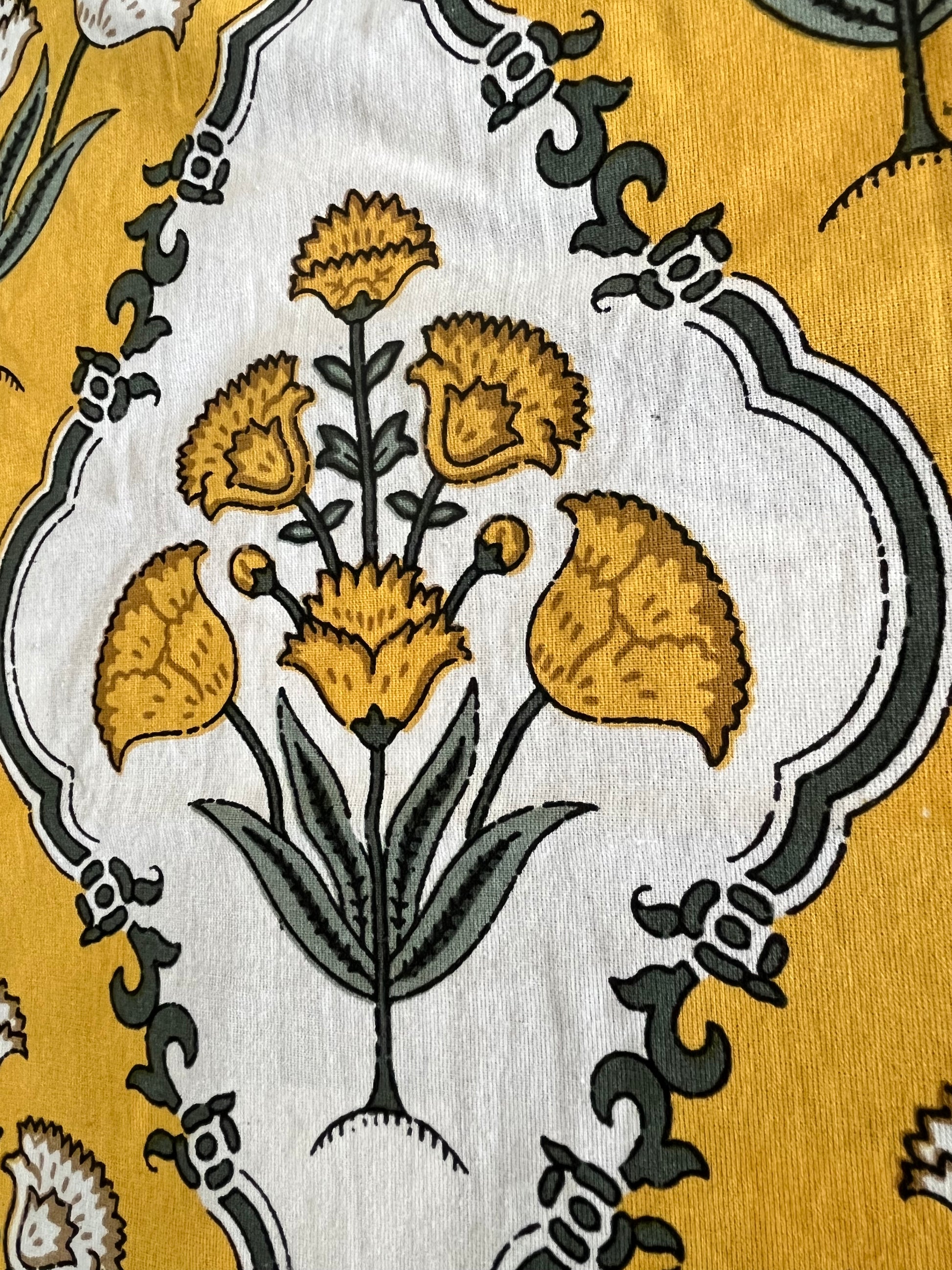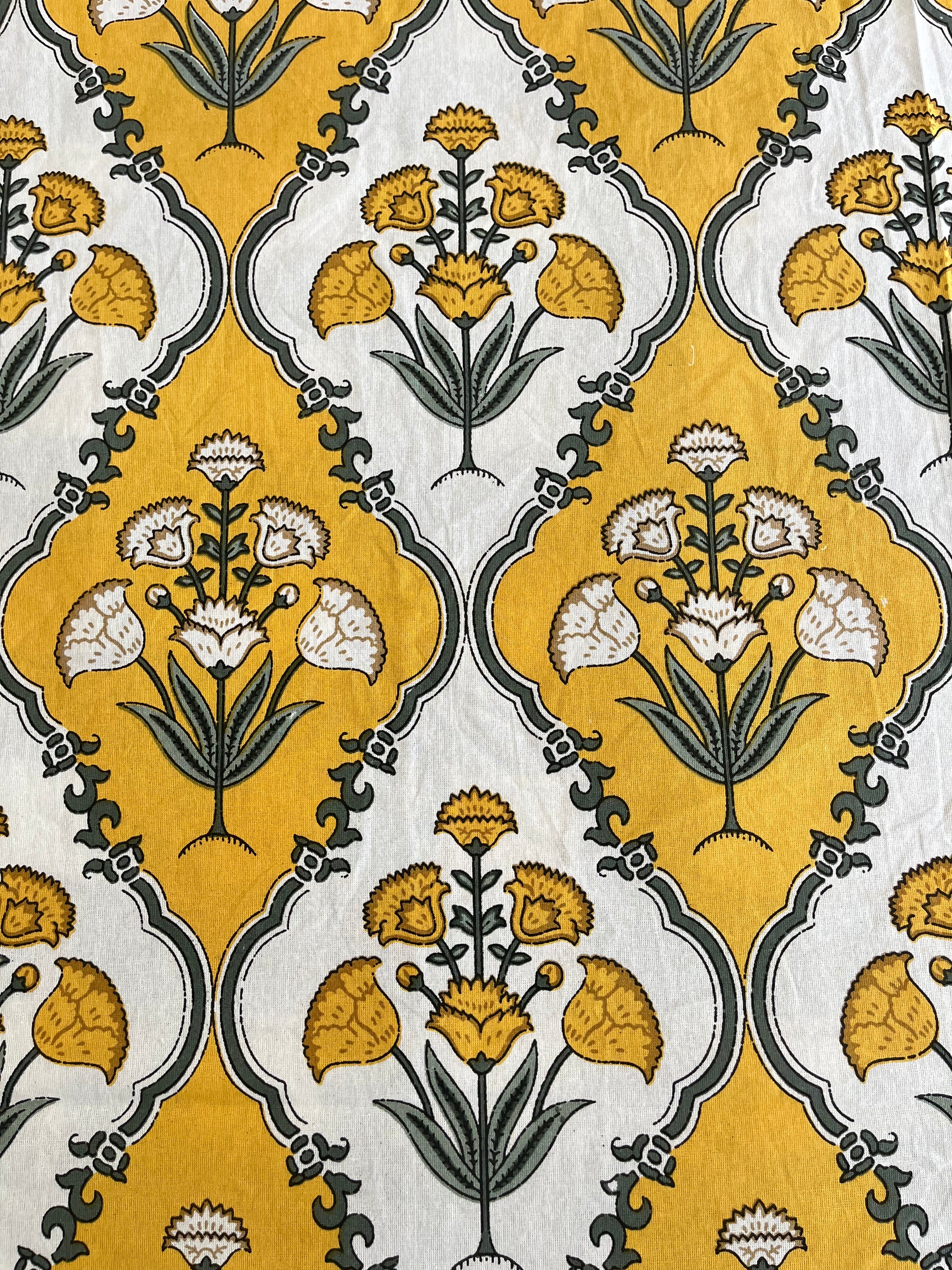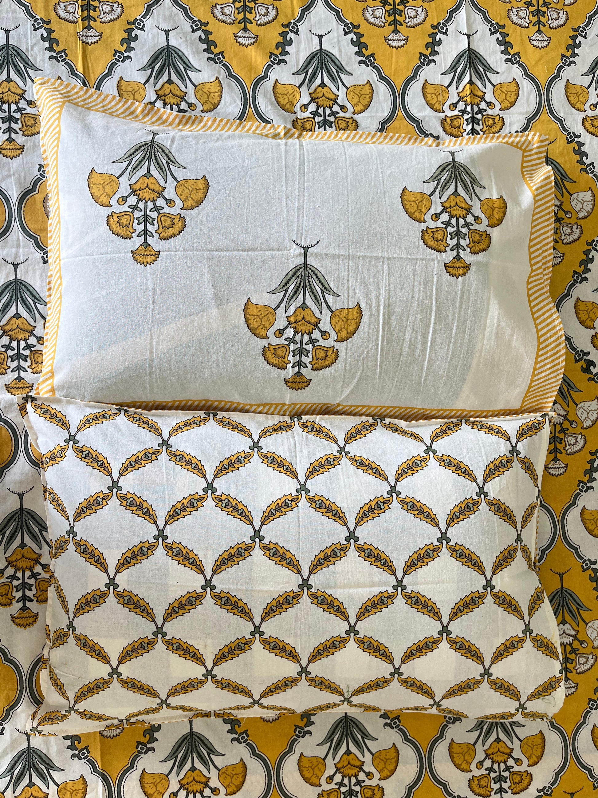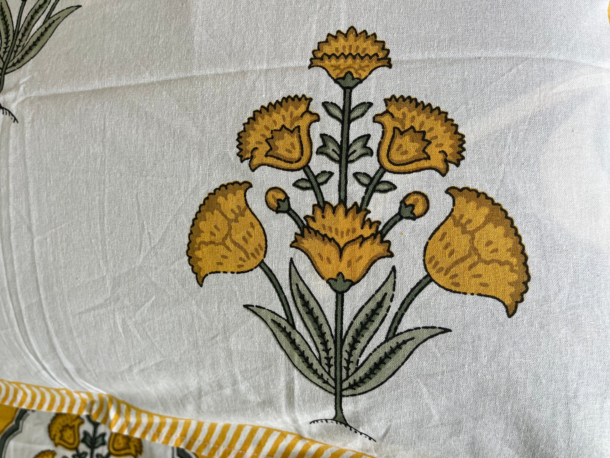 Brighten up your bedroom with the Yellow and White Patchwork Handblock Cotton Double Bedsheet. Made from 100% premium cotton, this bedsheet features an elegant patchwork design in soothing yellow and white tones, crafted using traditional Indian handblock printing techniques. Soft, breathable, and durable, it fits perfectly on double beds, offering ultimate comfort and timeless charm. Whether for everyday use or special occasions, this handcrafted bedsheet adds warmth and artistic beauty to your home decor.