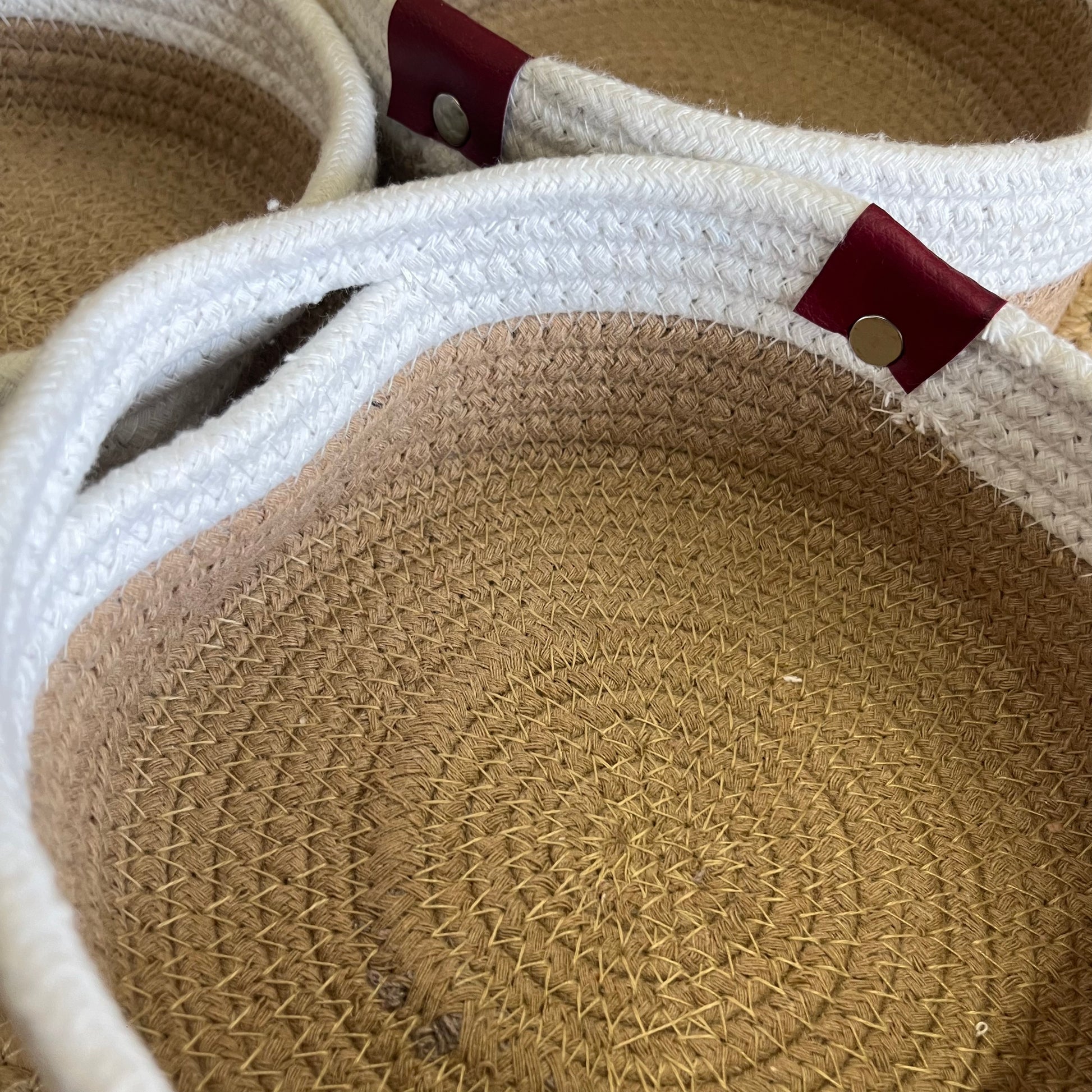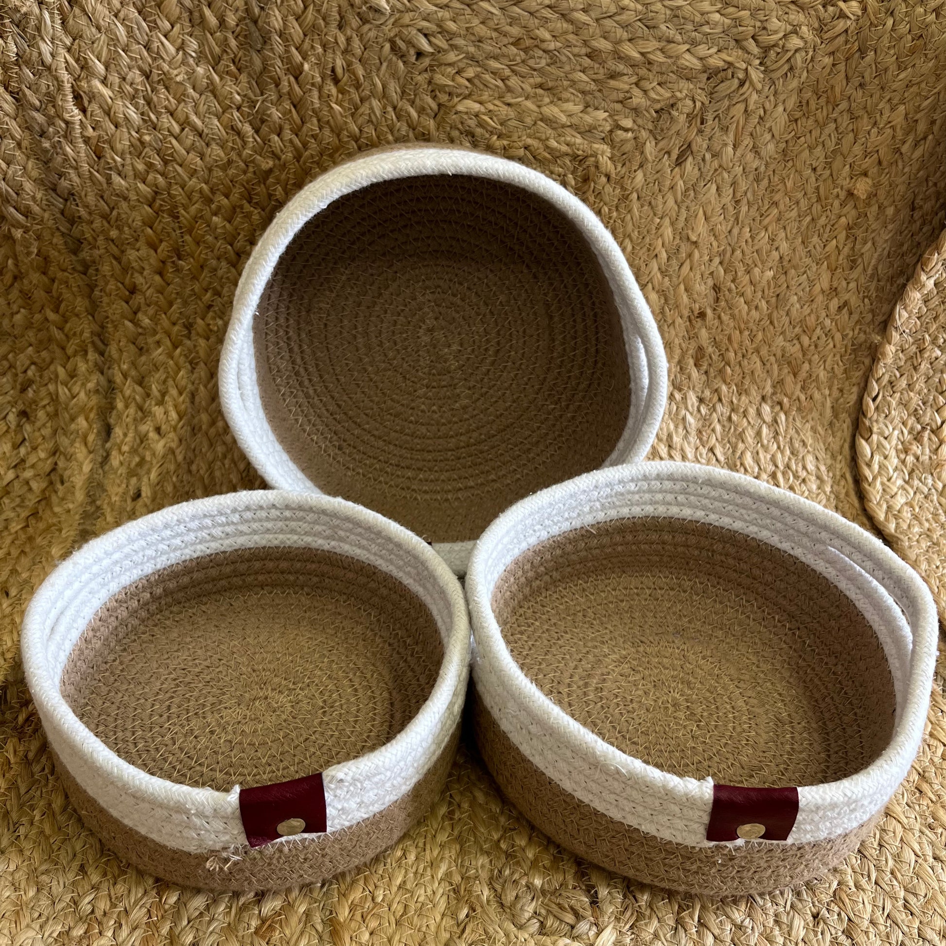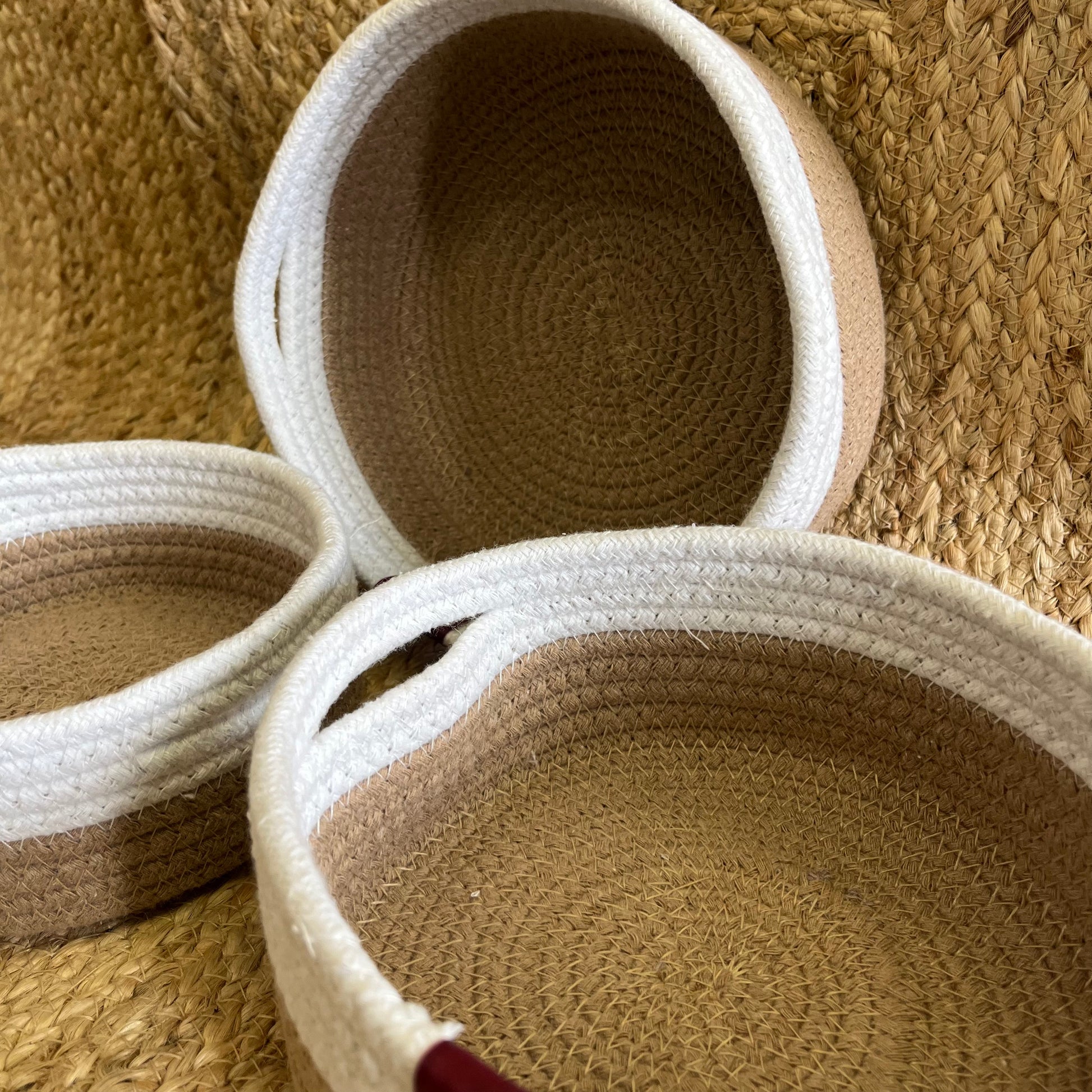 Jute Storage Baskets Multi-Purpose Organizer – Dual Tone Jute & White with Handles (Set of 3: Small, Medium, Large)