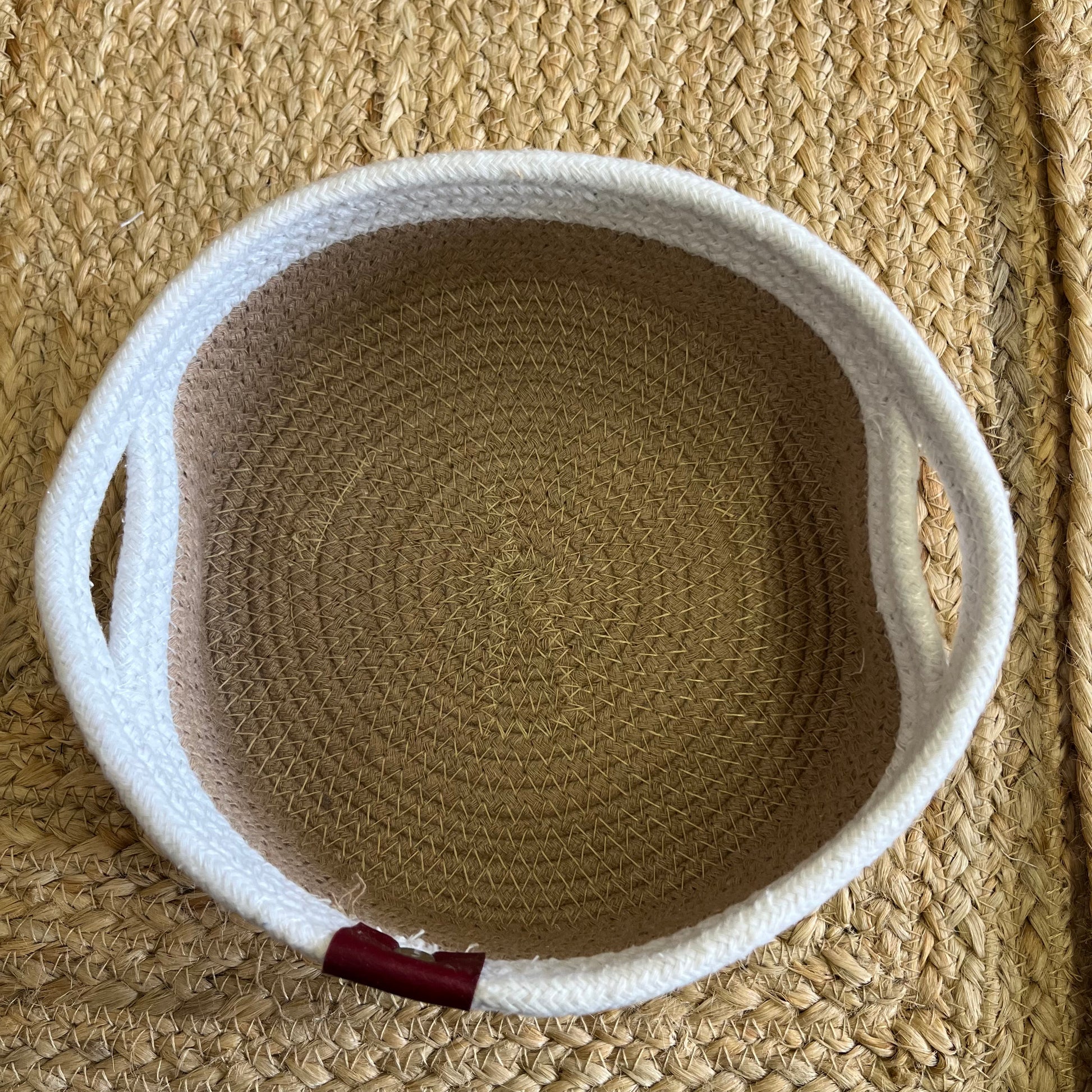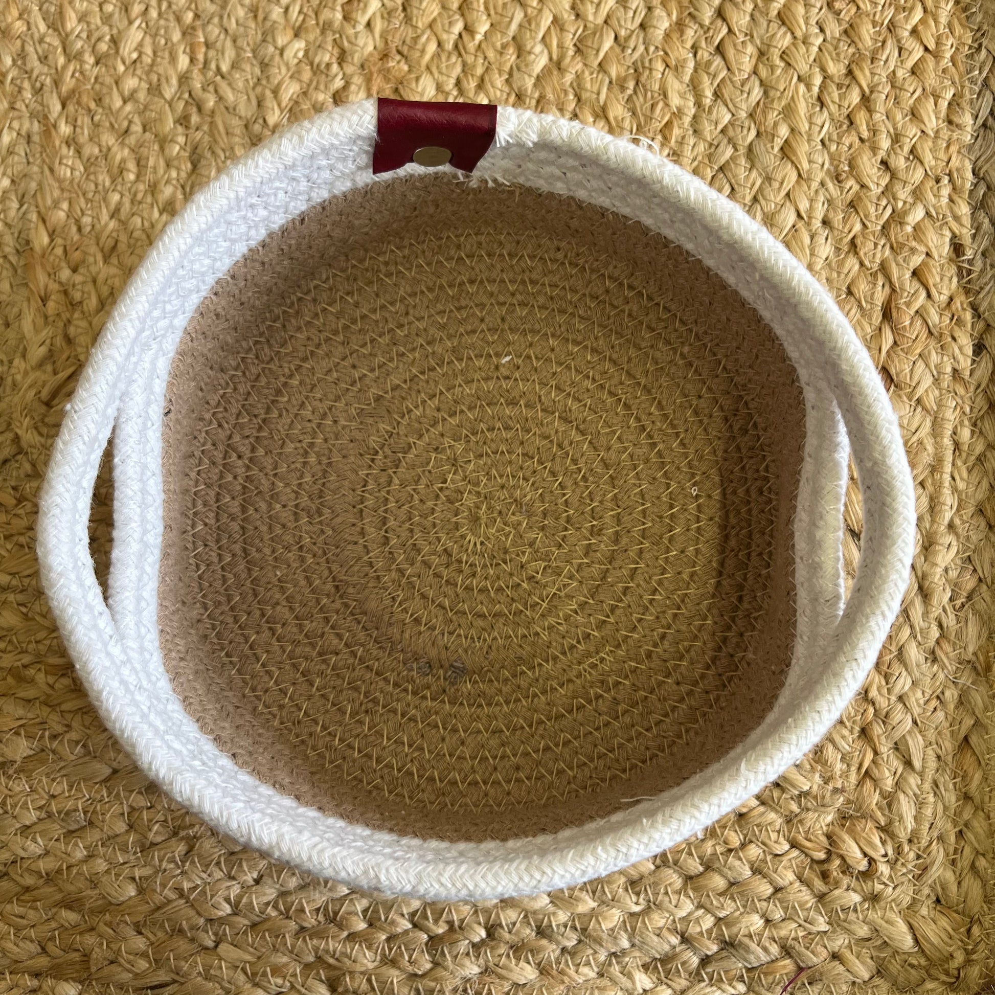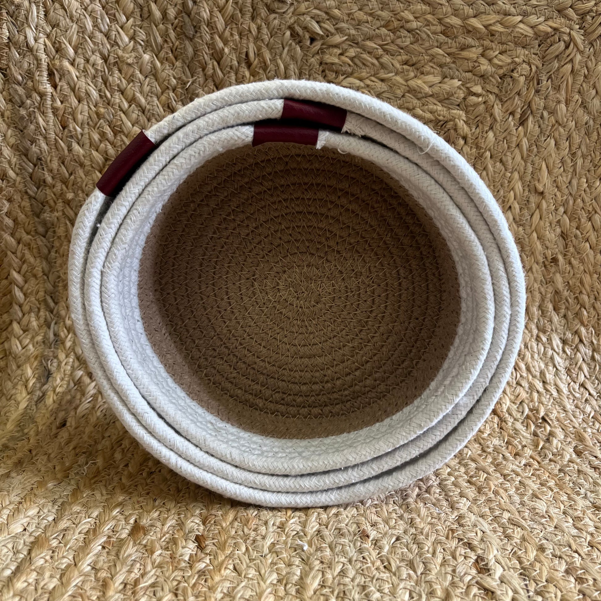 Jute Storage Baskets Multi-Purpose Organizer – Dual Tone Jute & White with Handles (Set of 3: Small, Medium, Large)