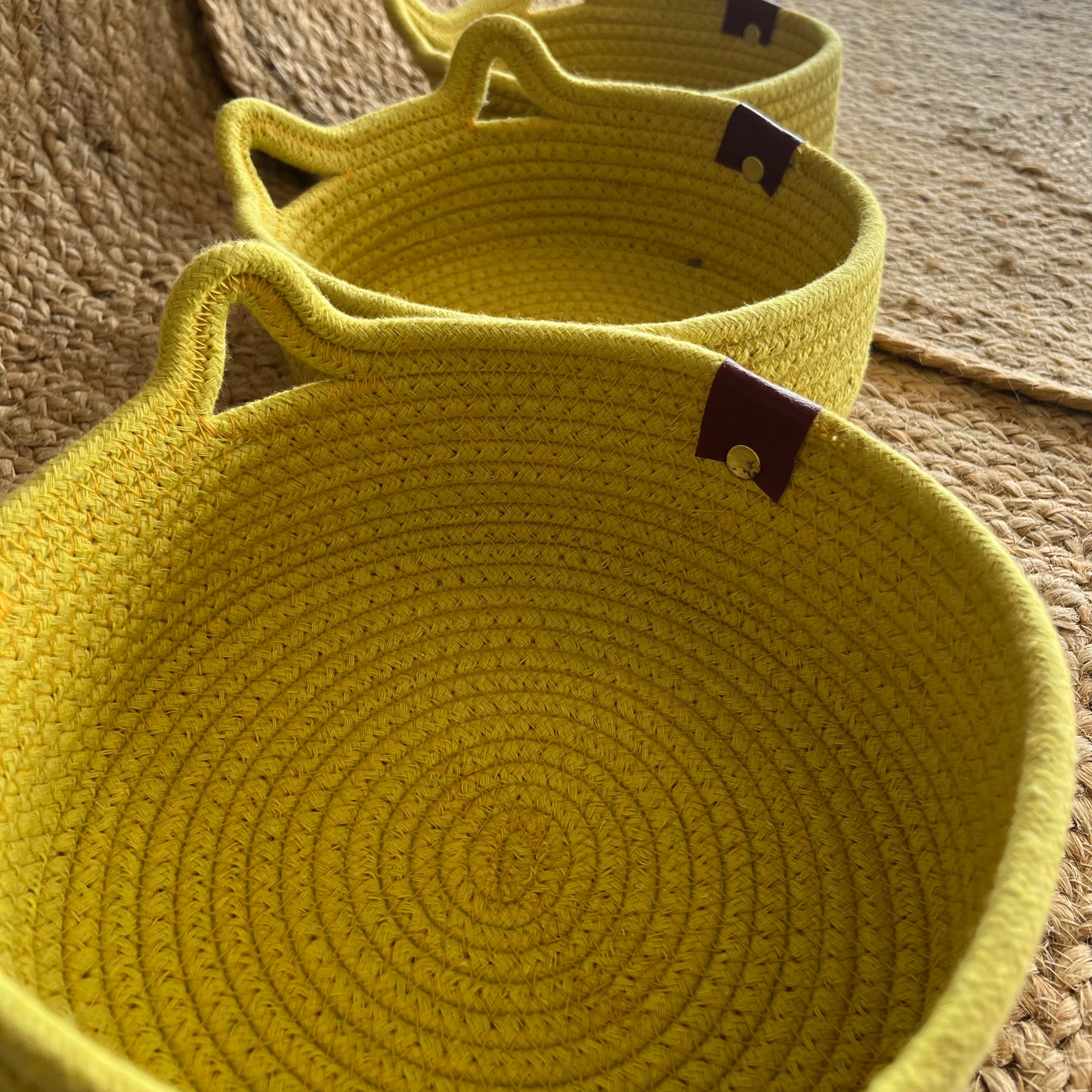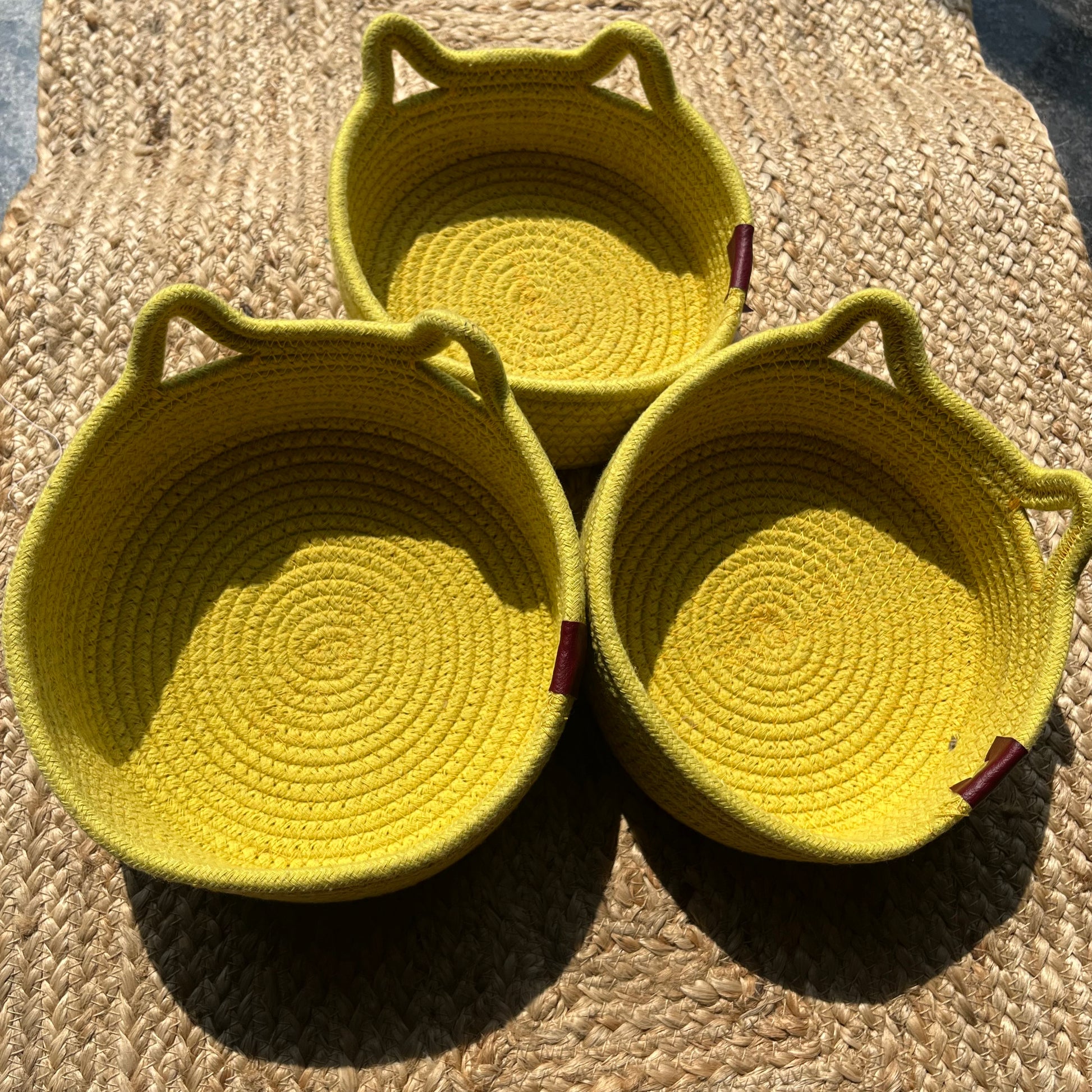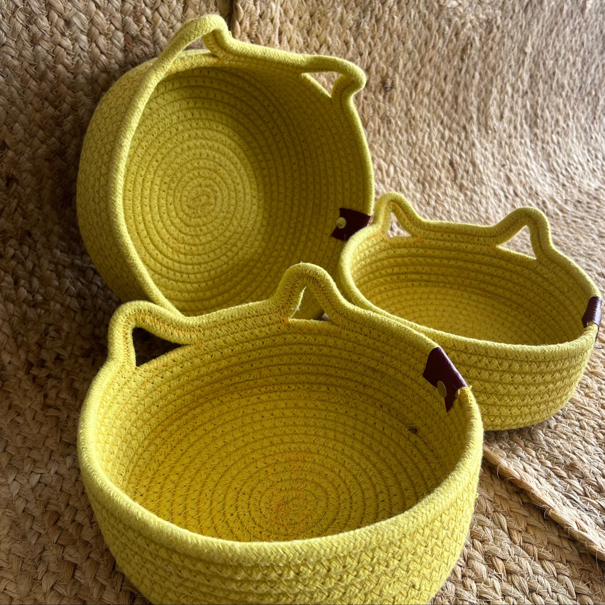 Jute Storage Baskets Multi-Purpose Organizer - YELLOW SET OF 3 (SMALL, MEDIUM, LARGE)