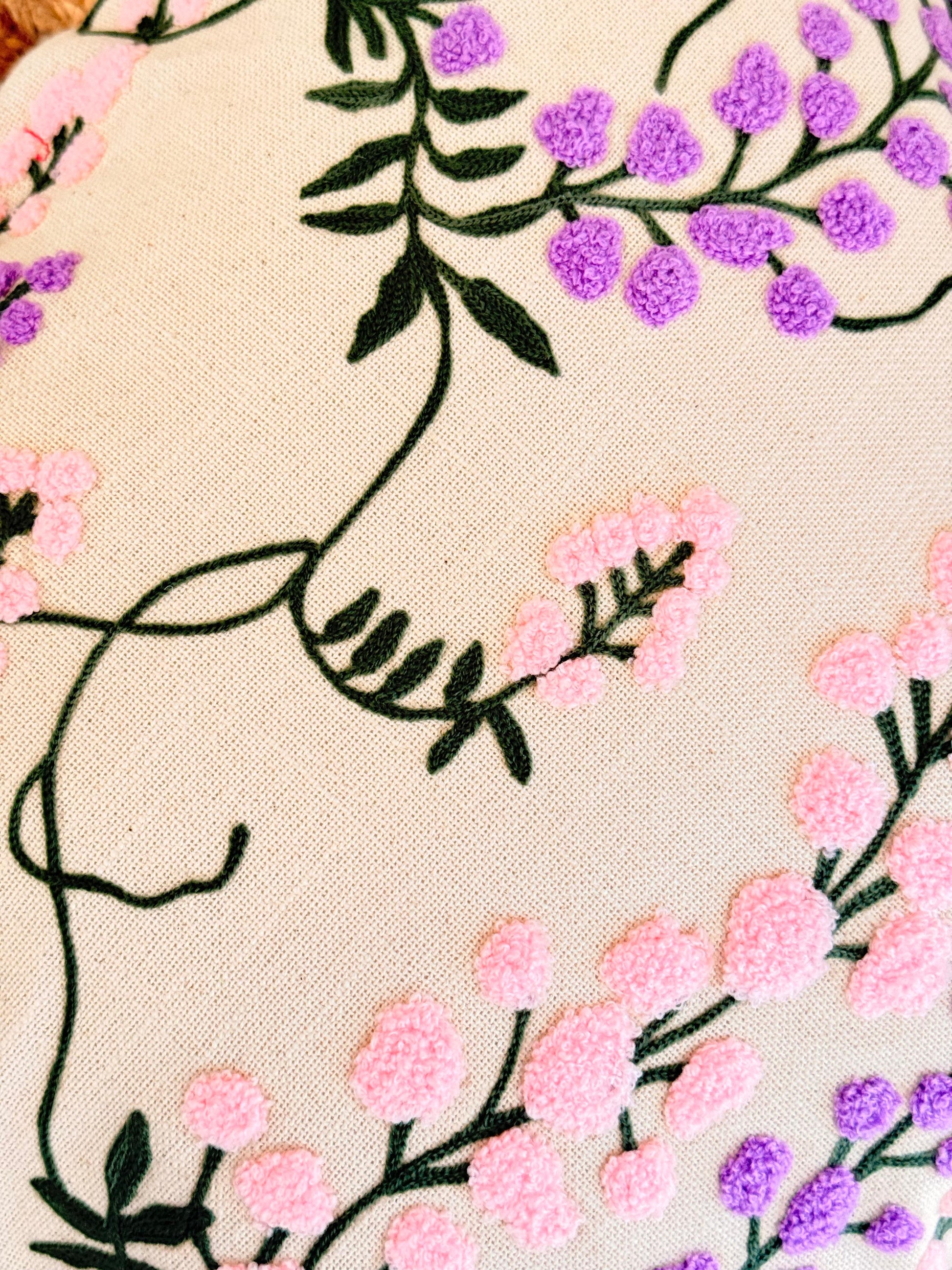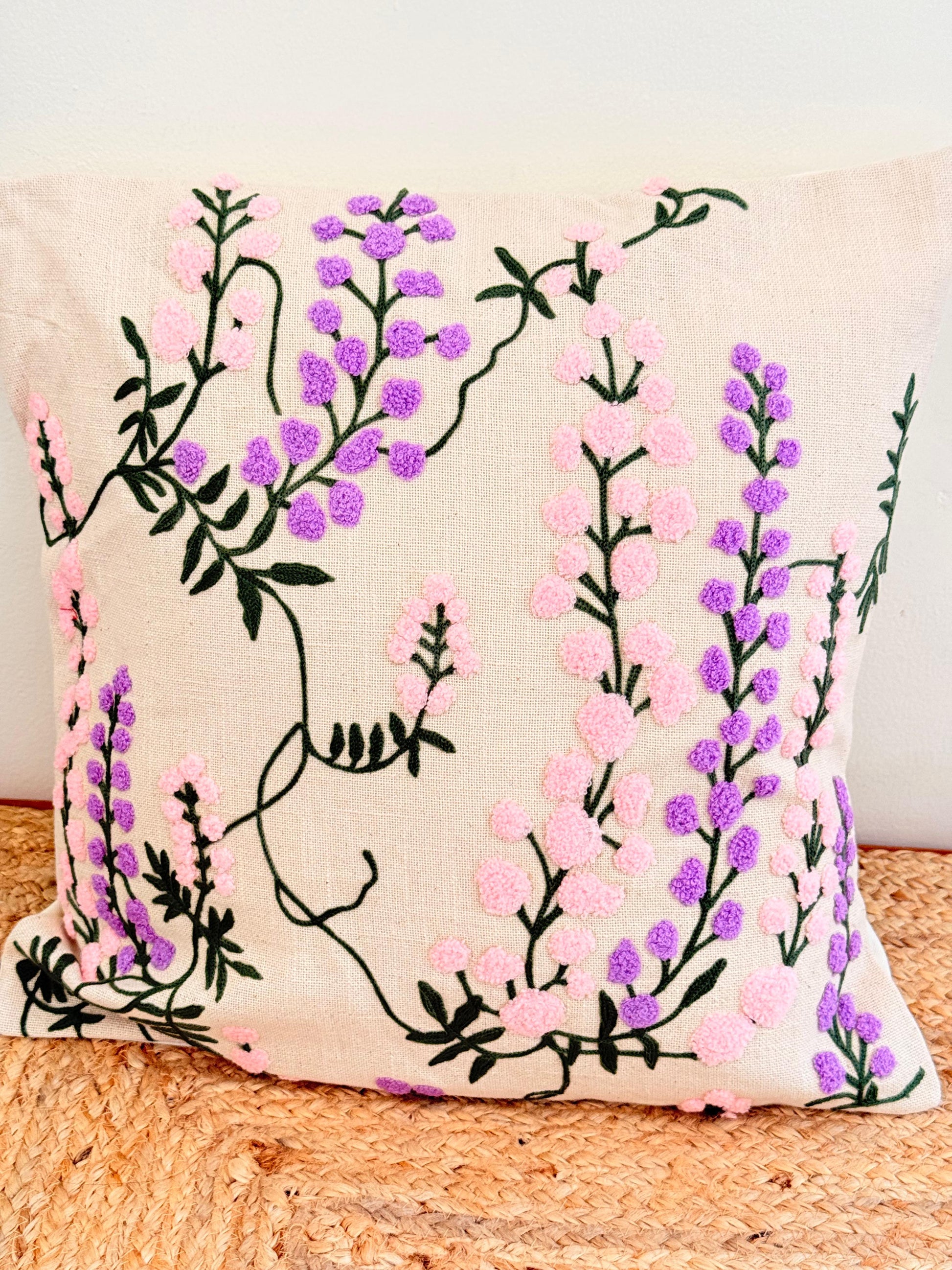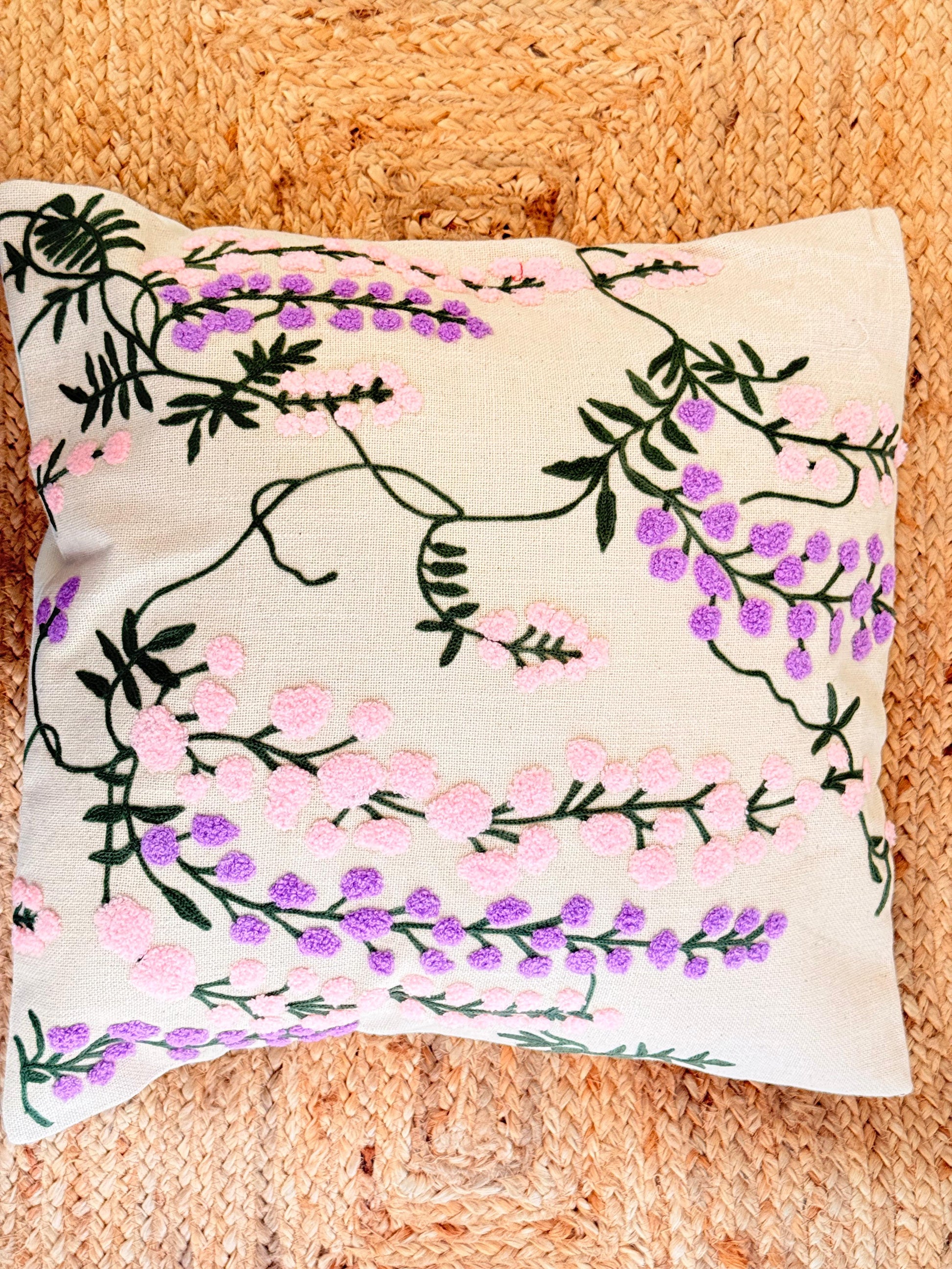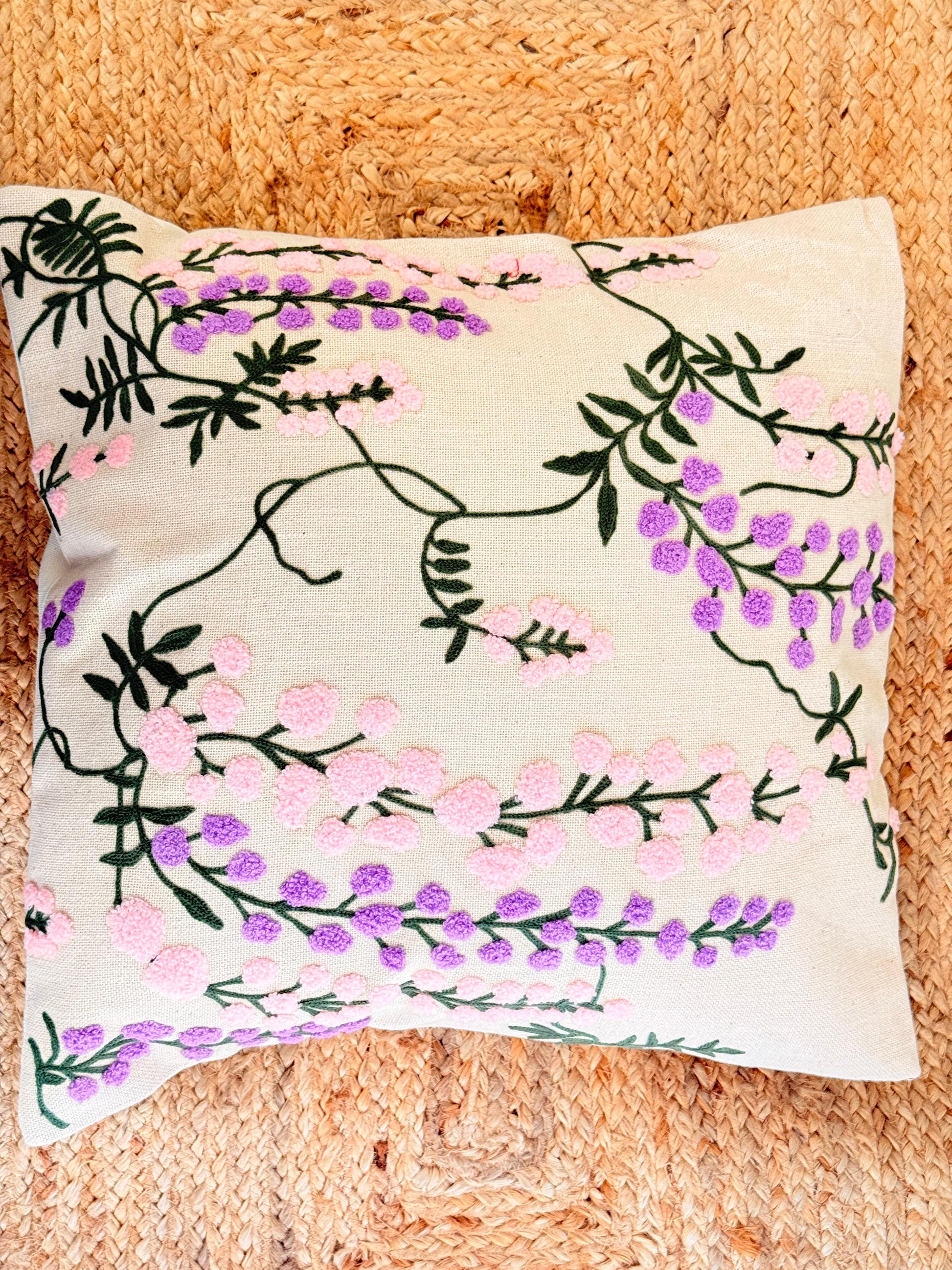 Pastel Purple Pink Embroidered Cushion Cover – Elegant Handcrafted Home Décor