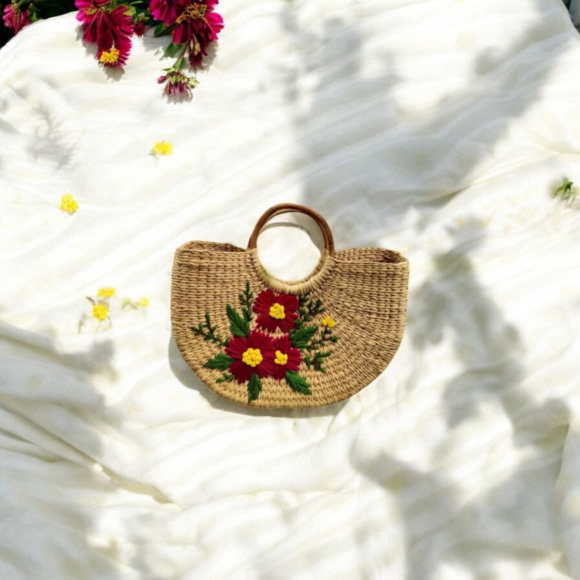 Add a kaleidoscope of color to your wardrobe with the Kauna Knitted Embroidery Red Floral Handbag. This exquisite accessory is beautifully crafted using high-quality kauna fibers and features stunning knitted embroidery with a bold red floral design. A true statement piece, this handbag is perfect for adding a touch of elegance and beauty to any outfit. Its eco-friendly construction ensures durability, while the vibrant red floral embroidery speaks to its unique craftsmanship. Whether for a casual outing or a special occasion, this handbag is the perfect choice to upgrade your style and make a lasting impression.