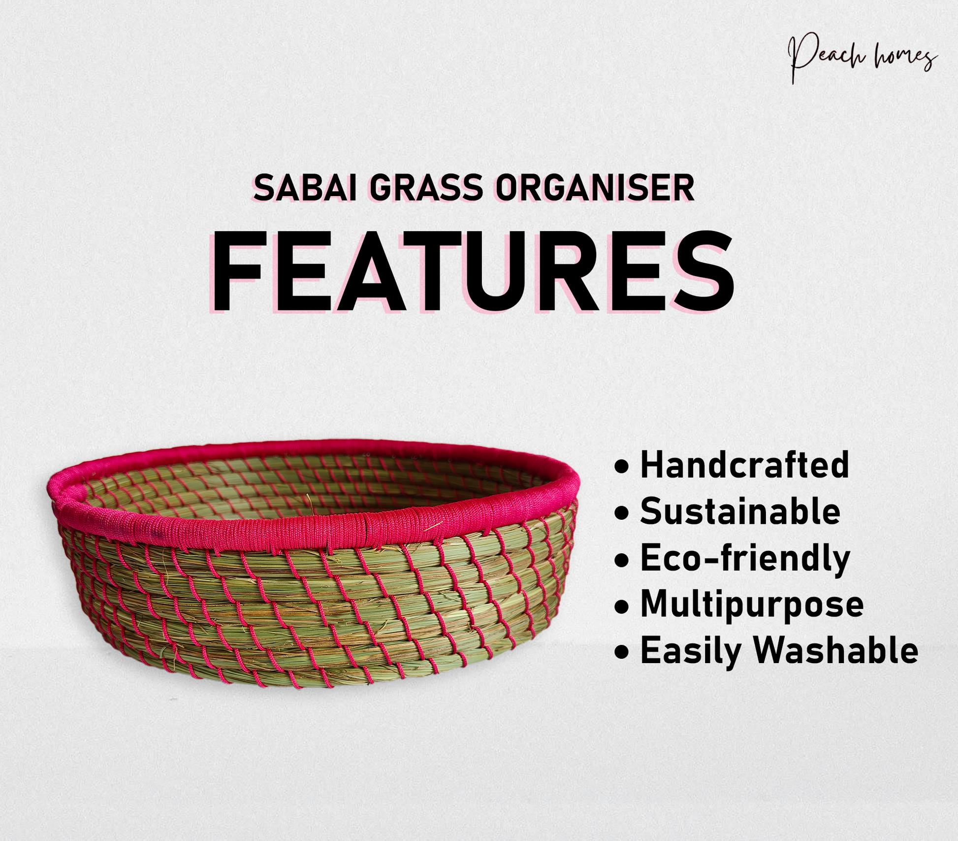 This handcrafted Sabai Grass Jute organiser is handwoven and can be used as a multipurpose storage basket.