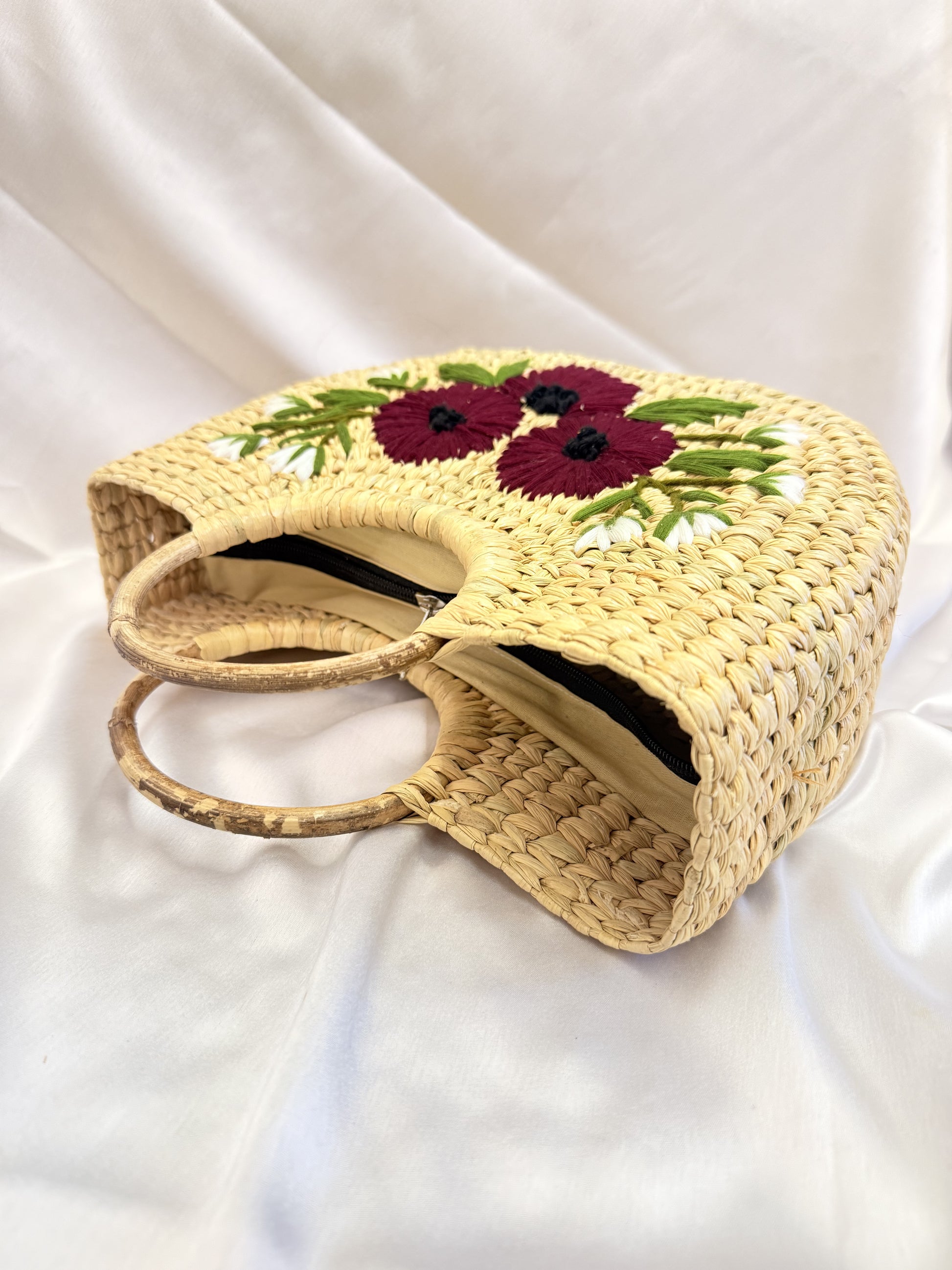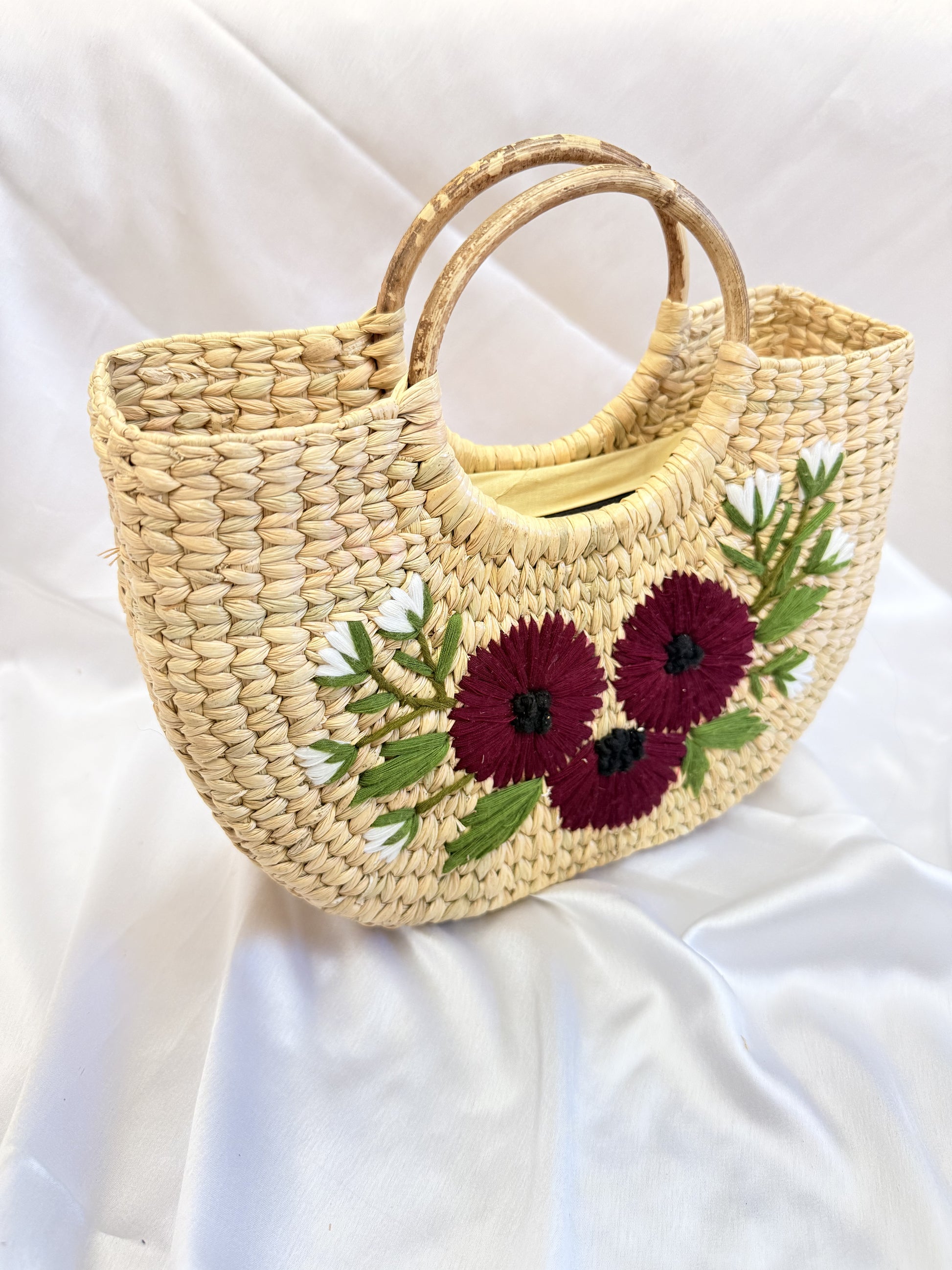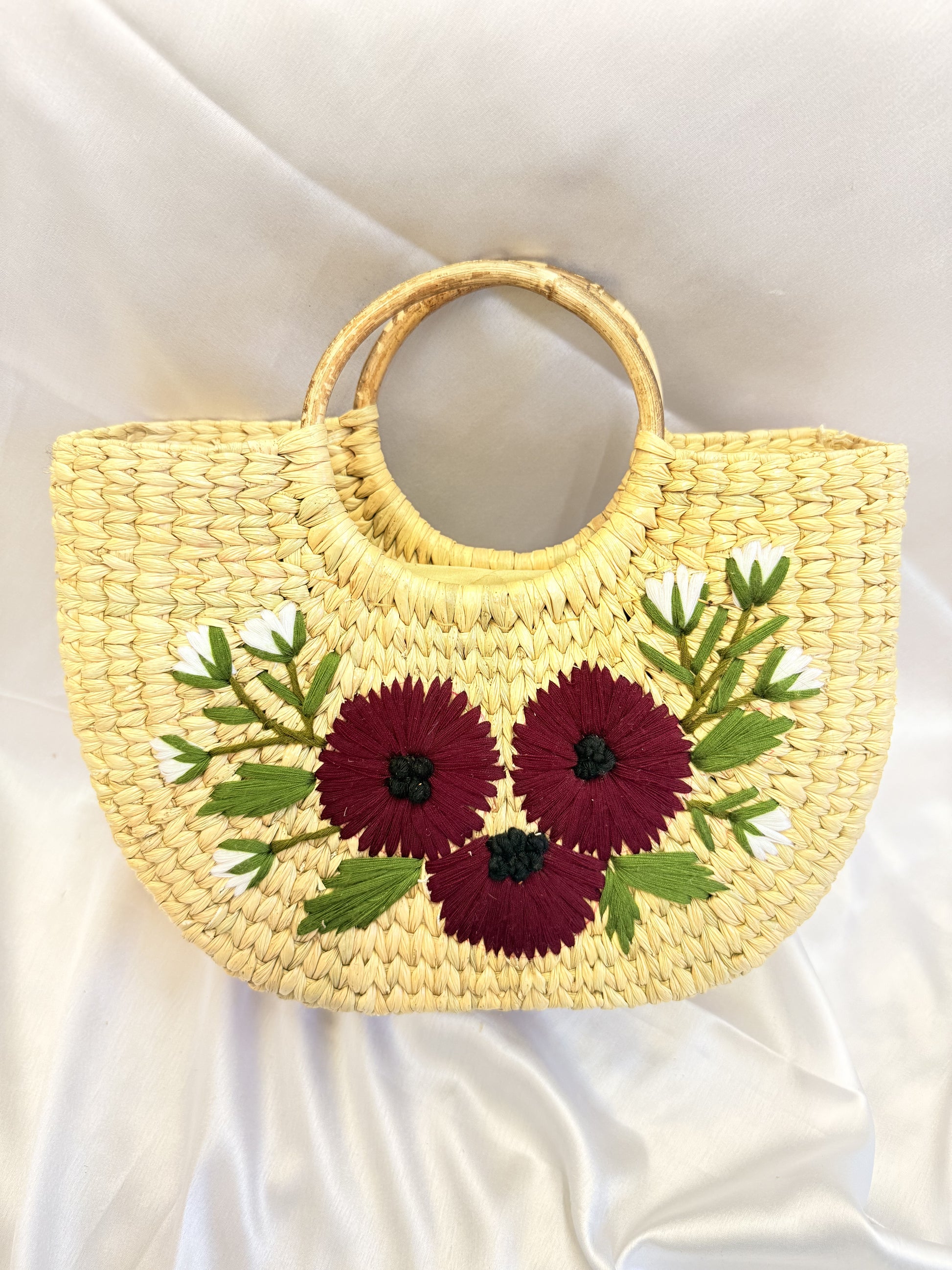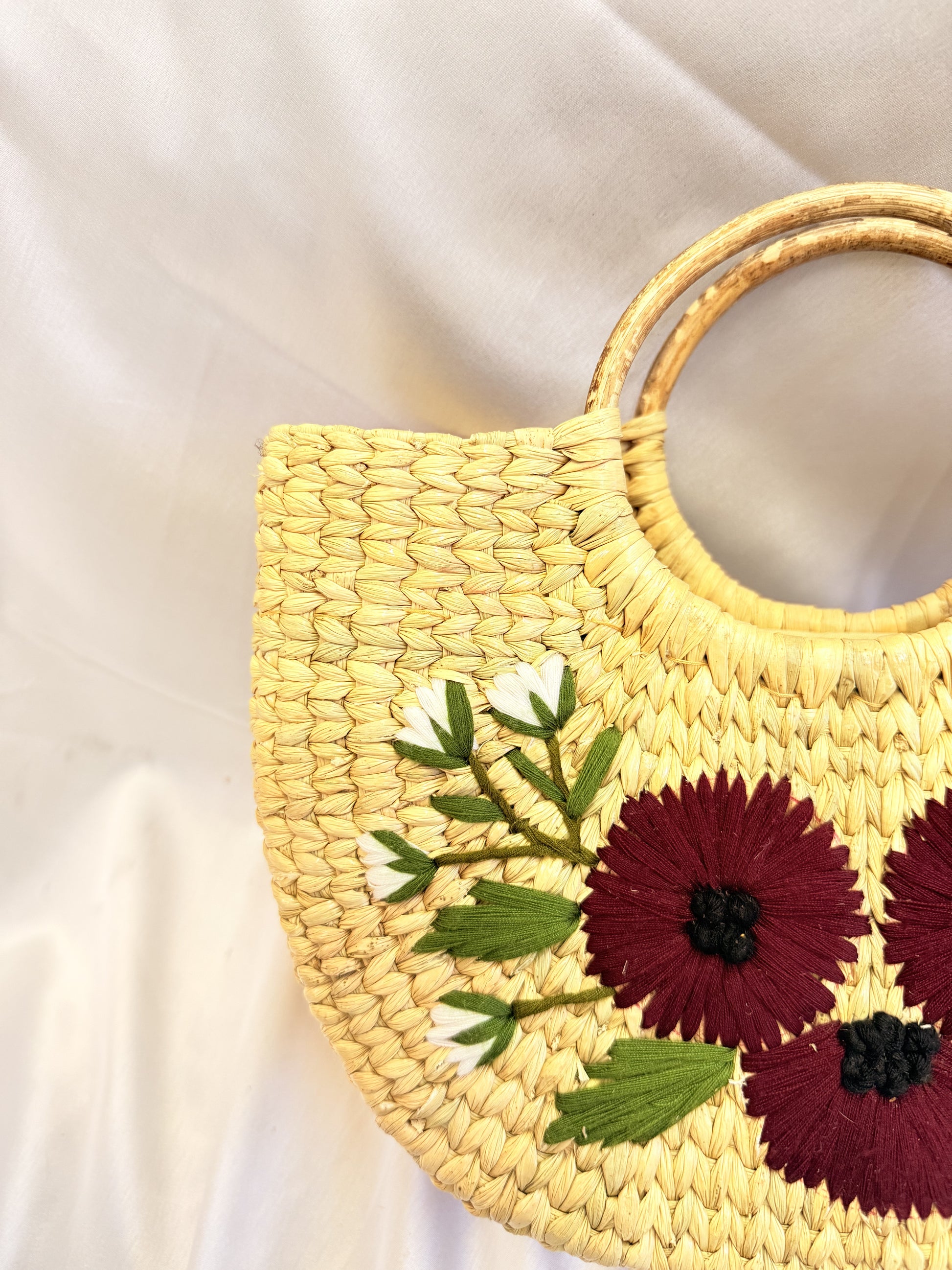 Maroon Daisy U-Shape Kauna Embroidery Bag