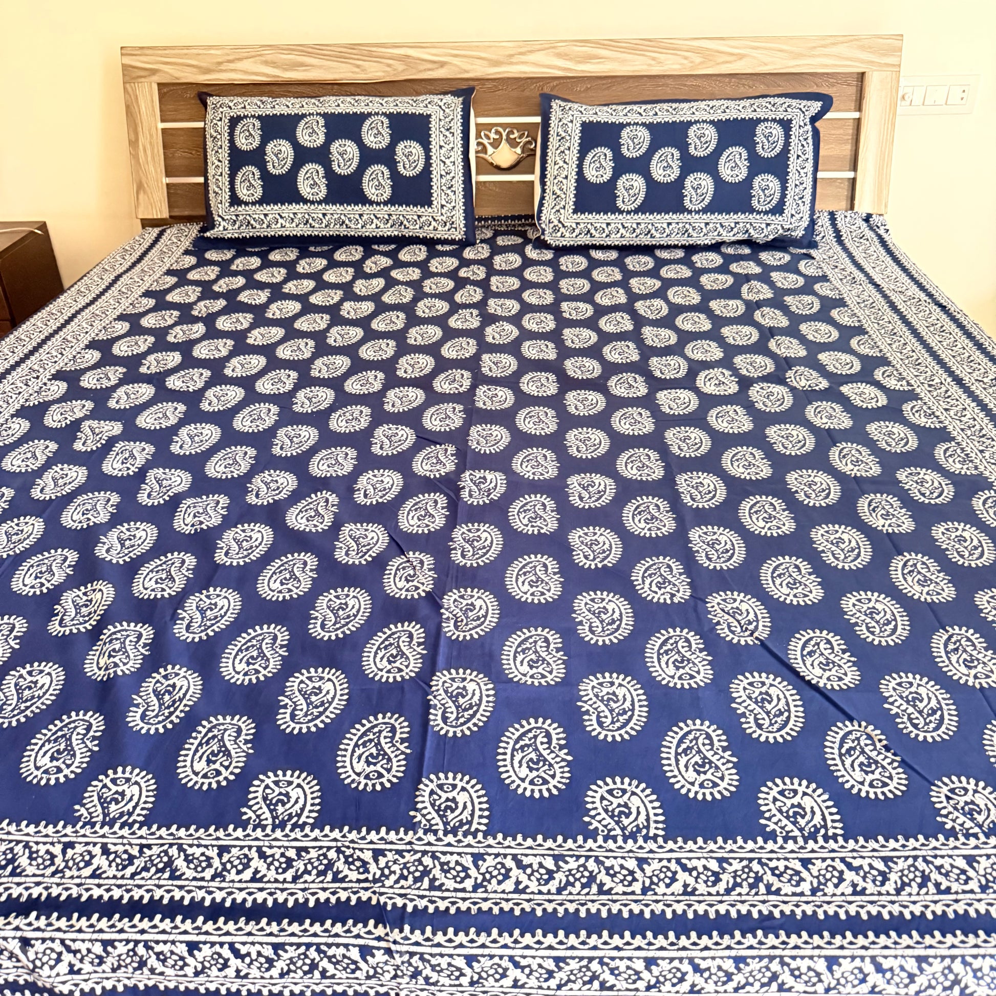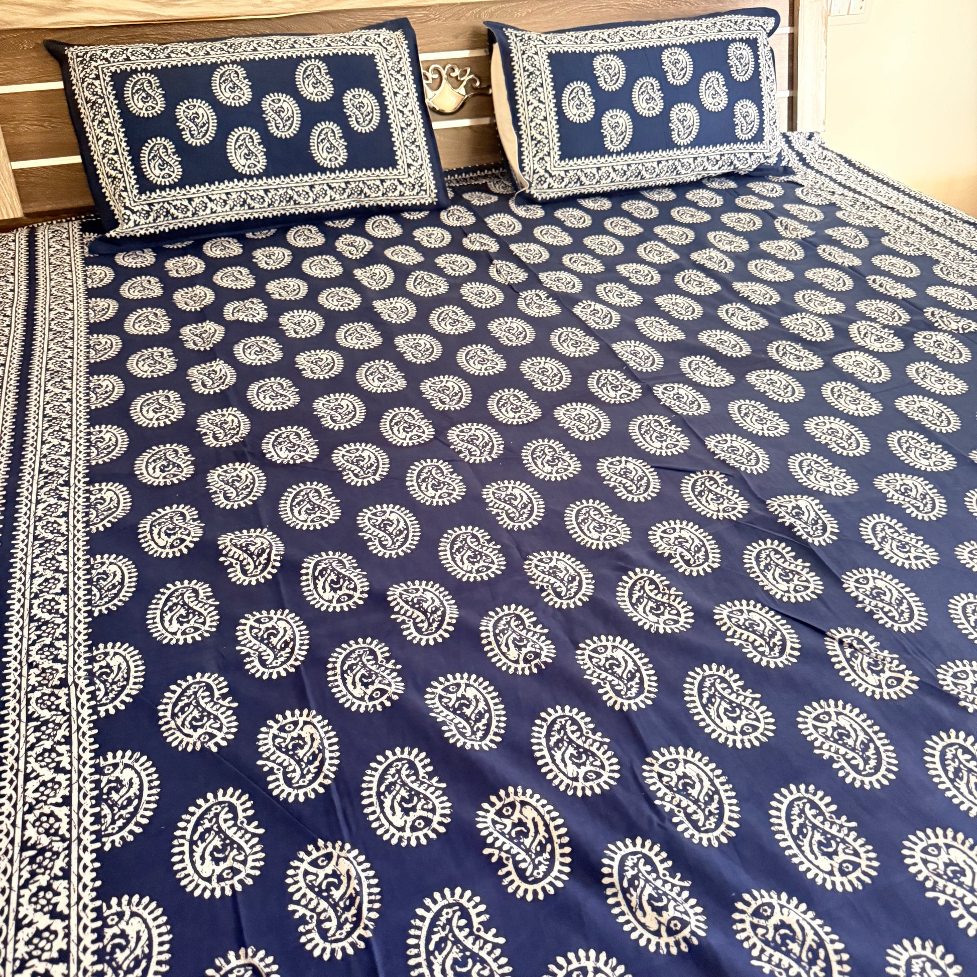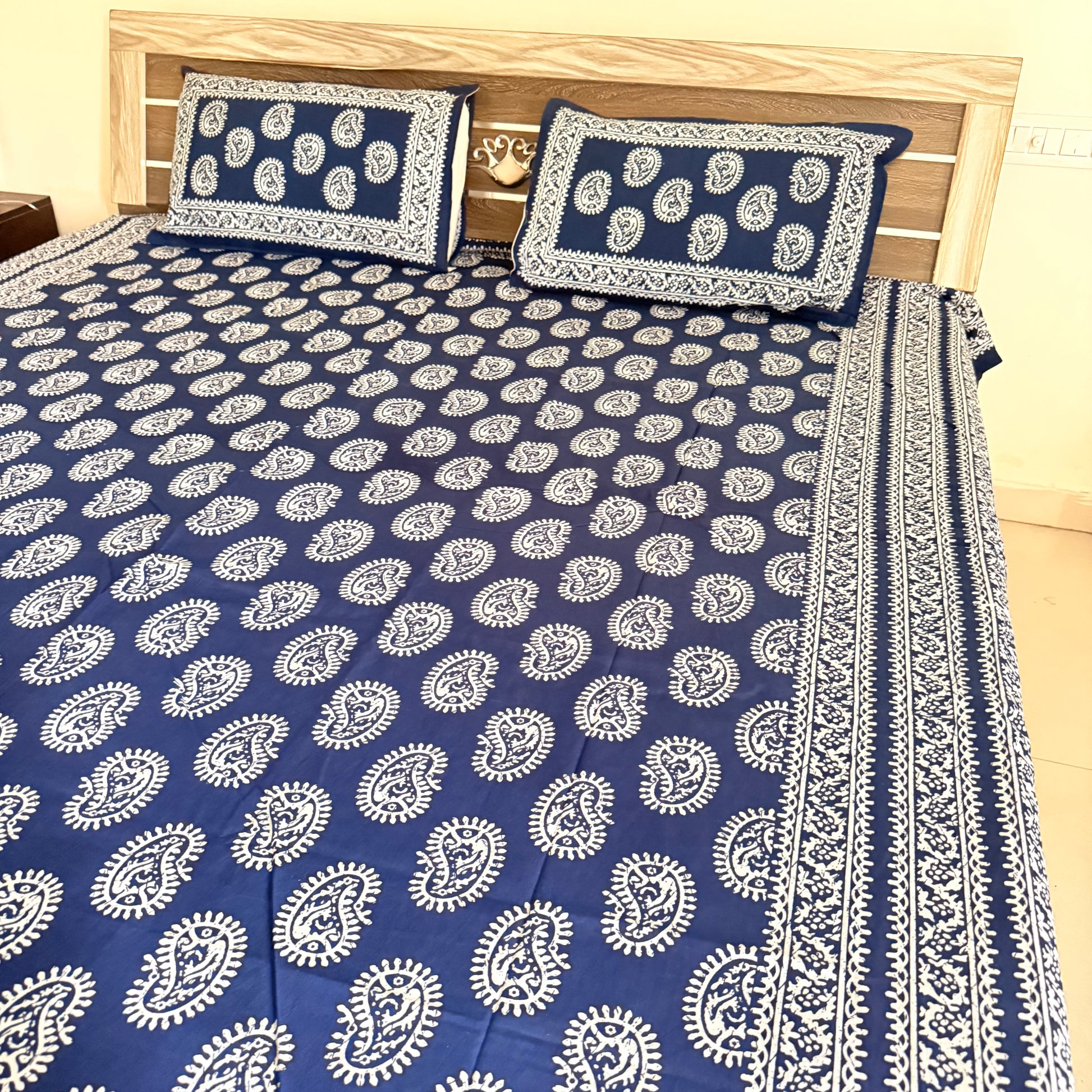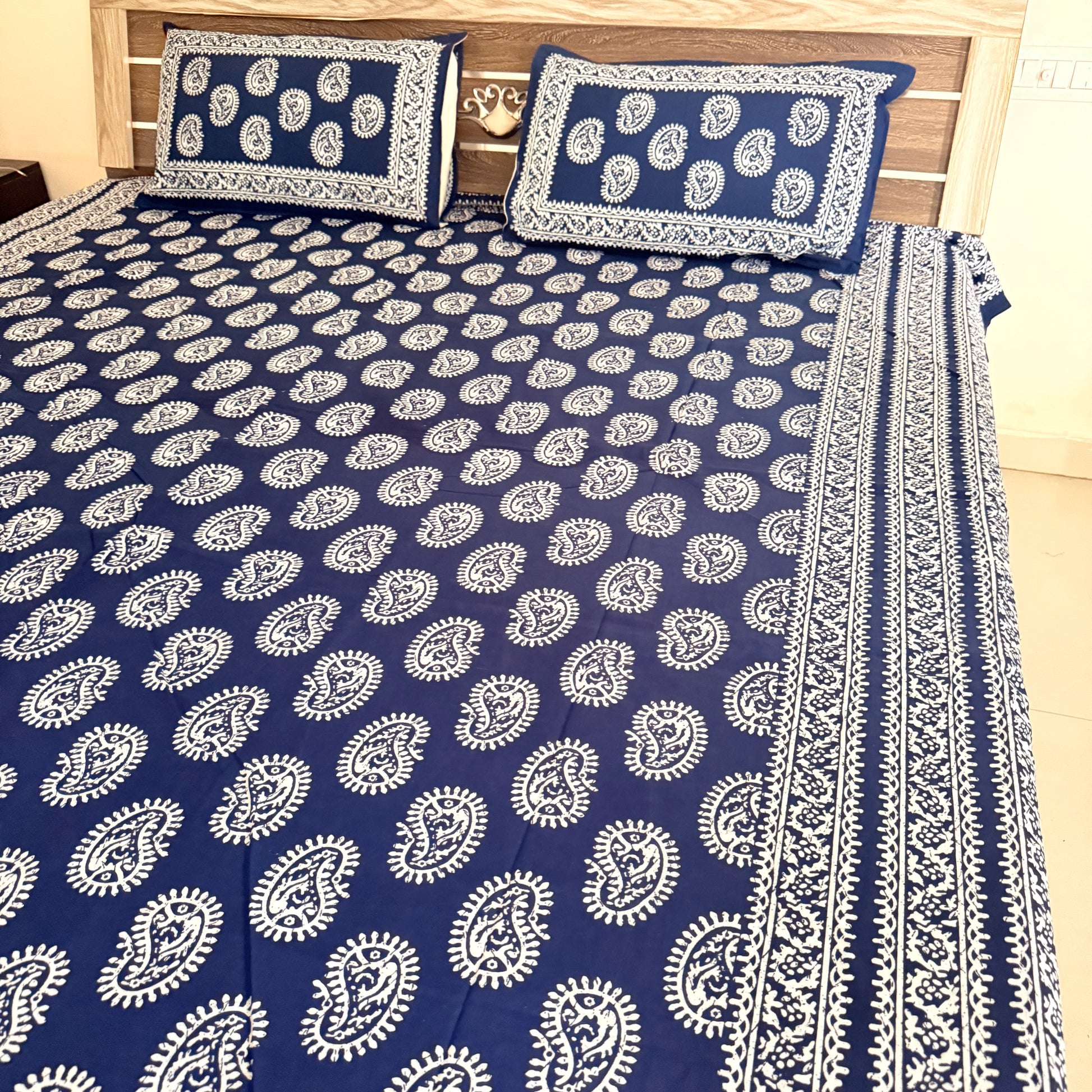 ✨ Premium Cotton Indigo Bedsheet – Elegance Meets Comfort ✨