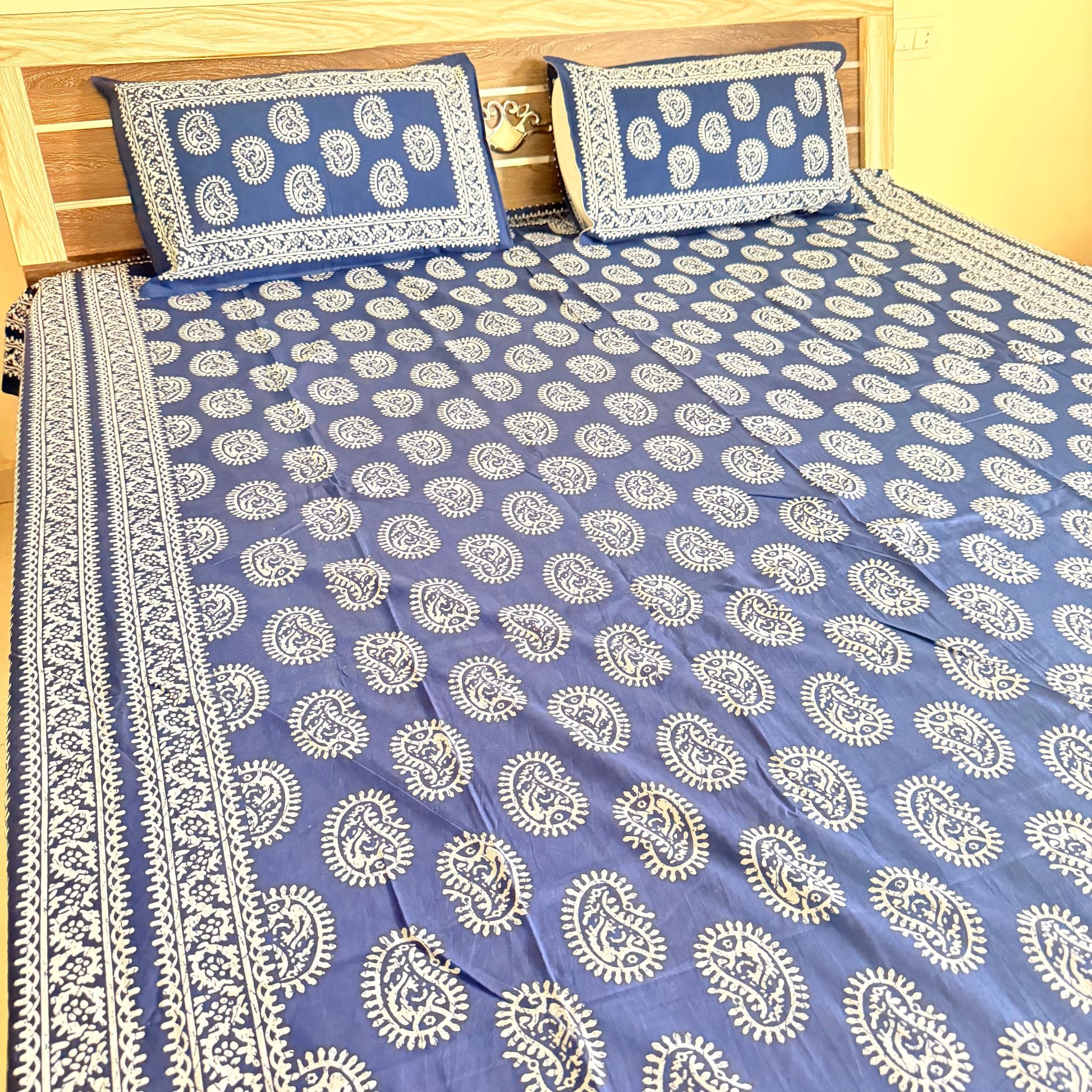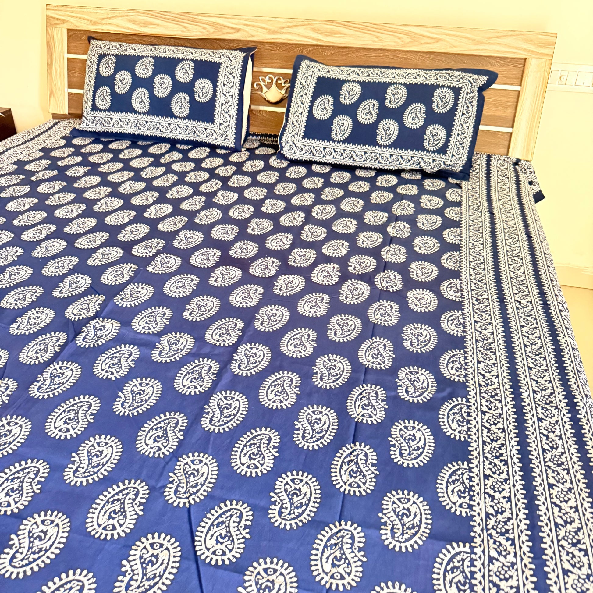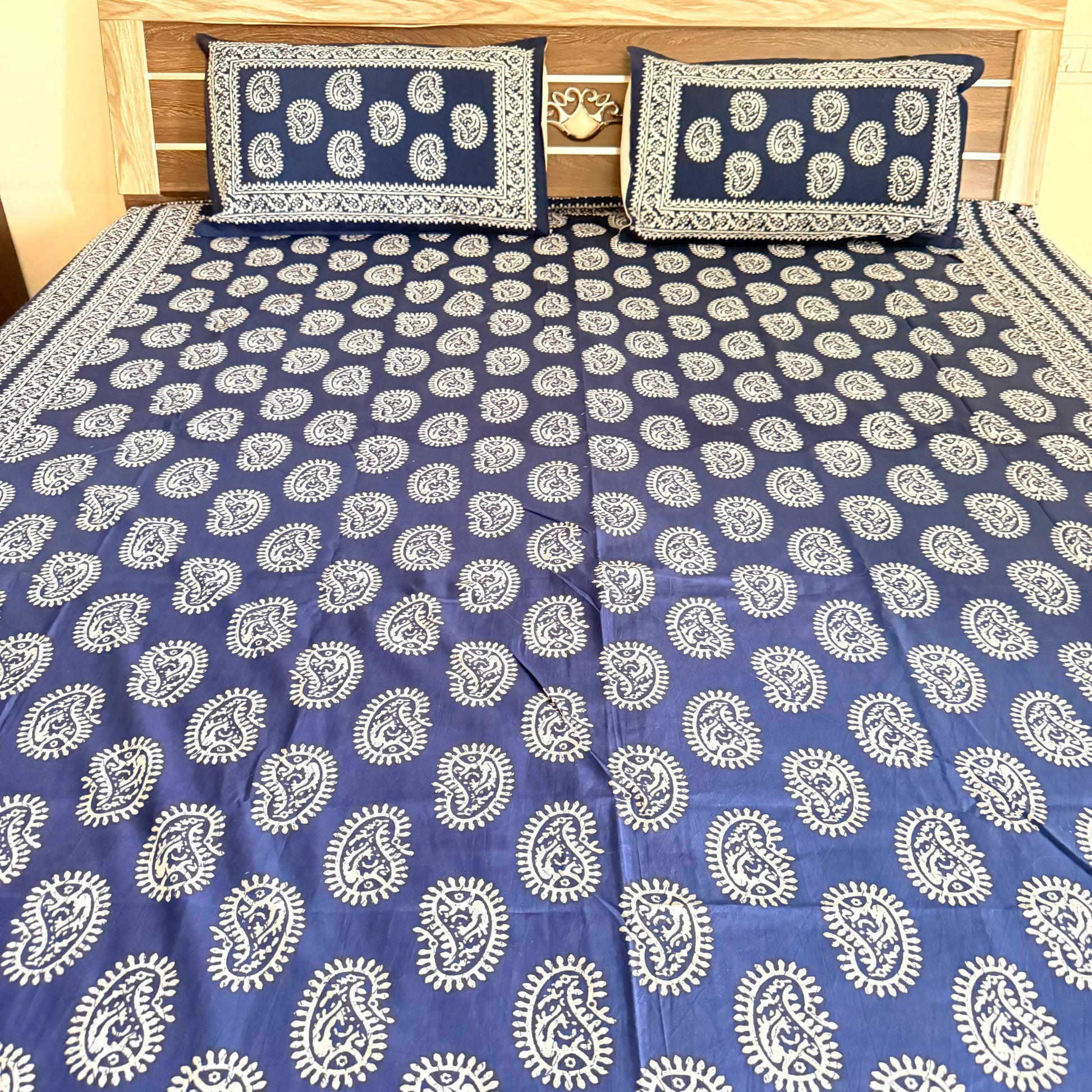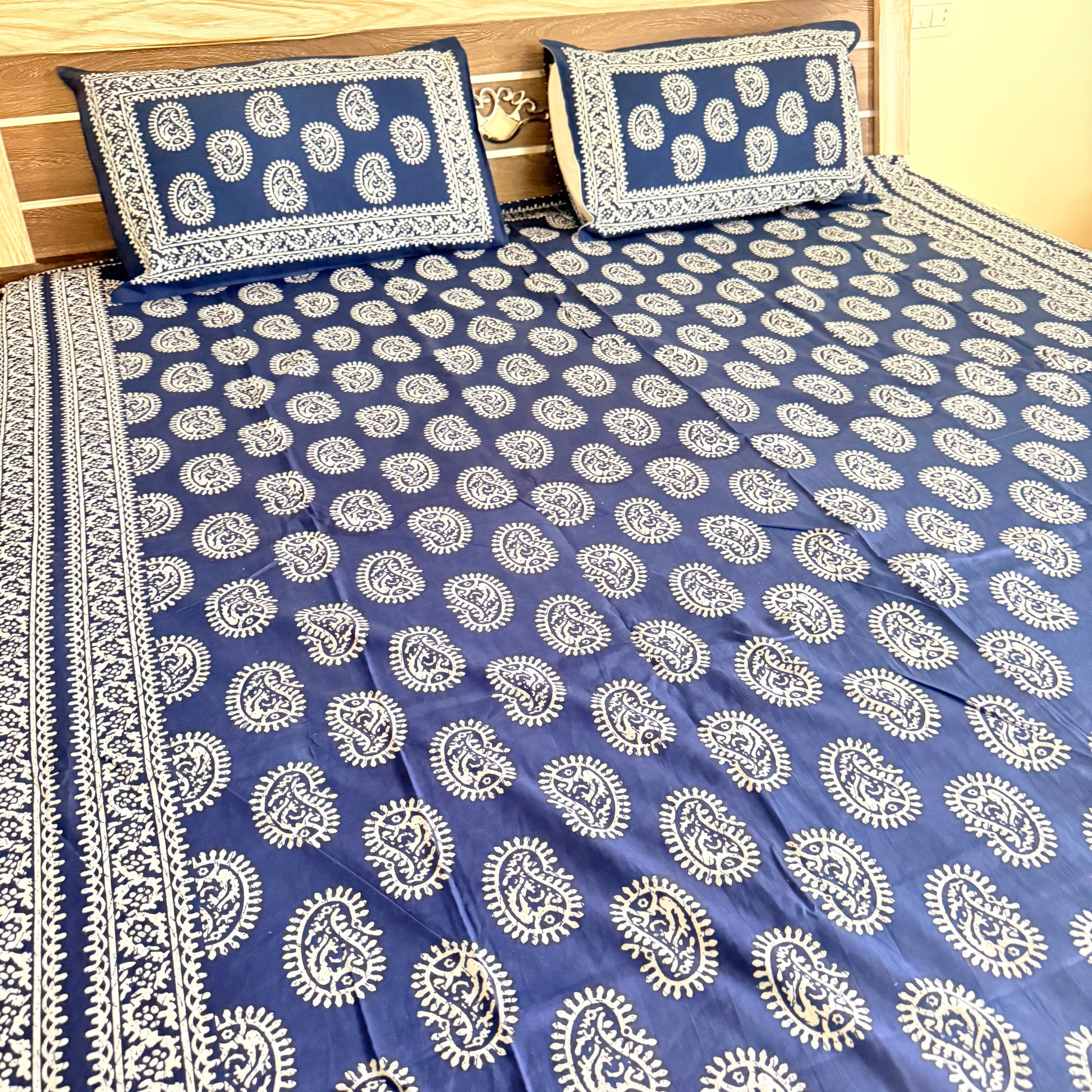 ✨ Premium Cotton Indigo Bedsheet – Elegance Meets Comfort ✨