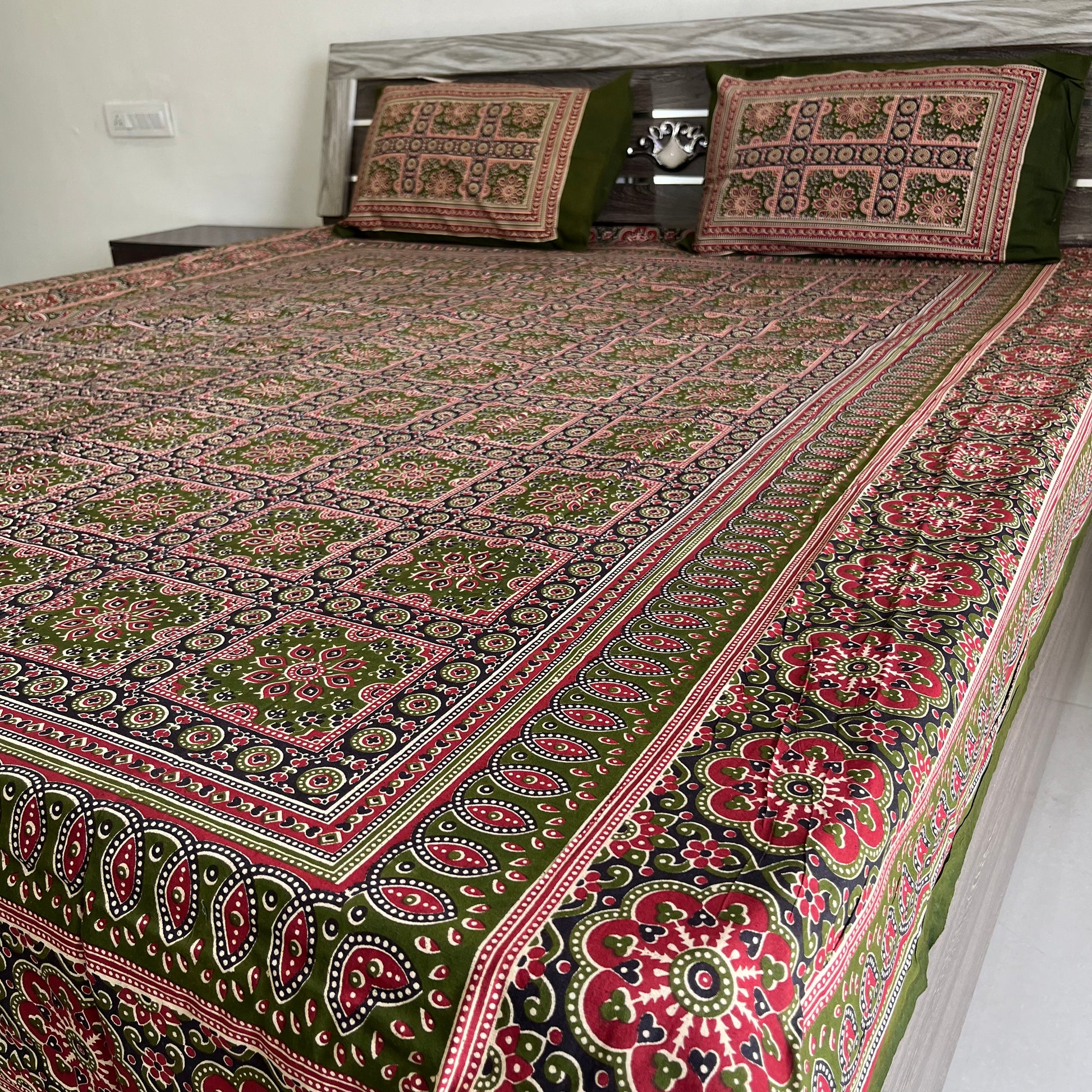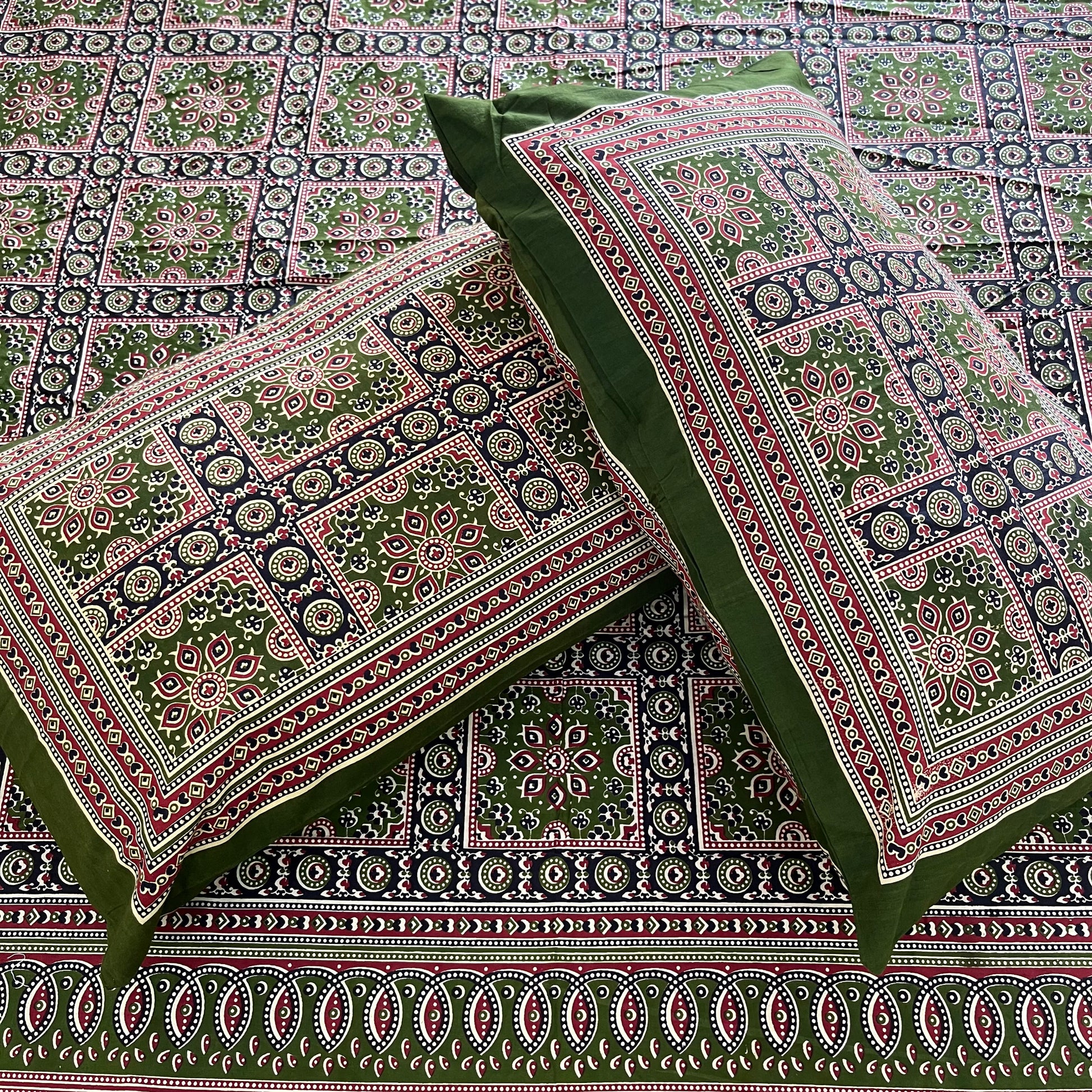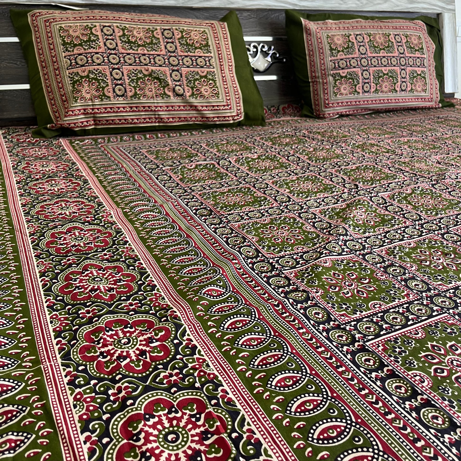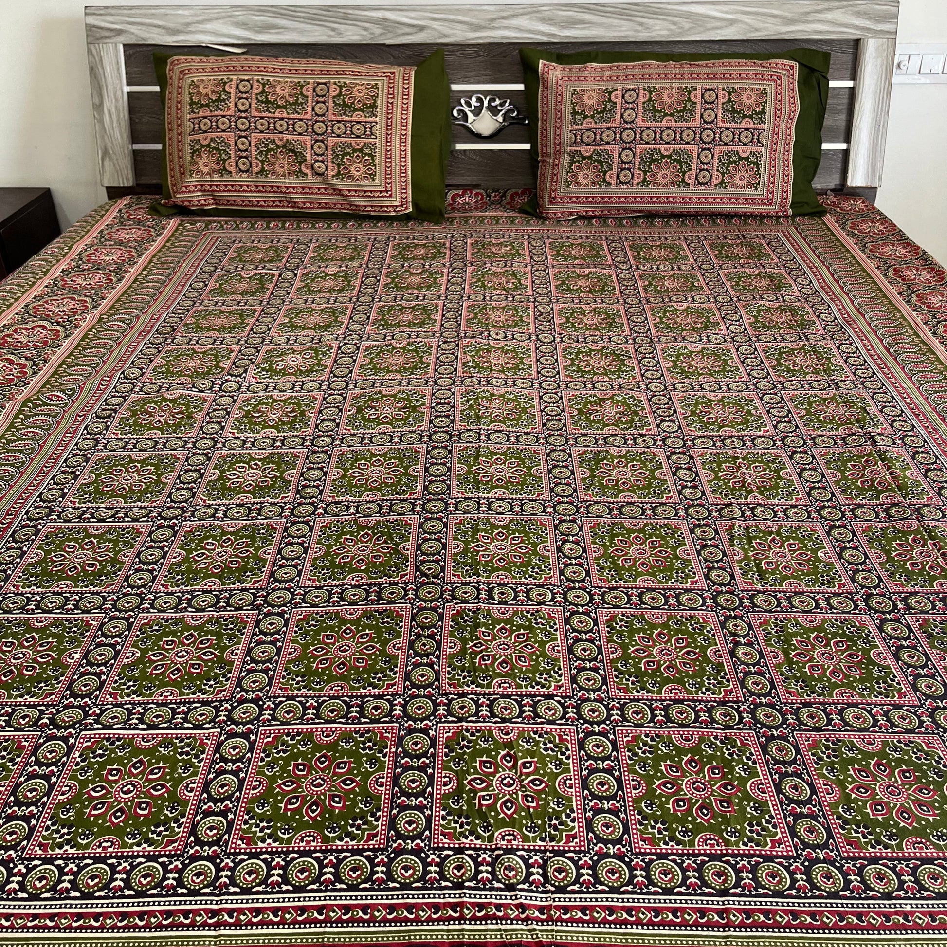 Mehendi Green Kalamkari Bedsheet with 2 Pillow covers